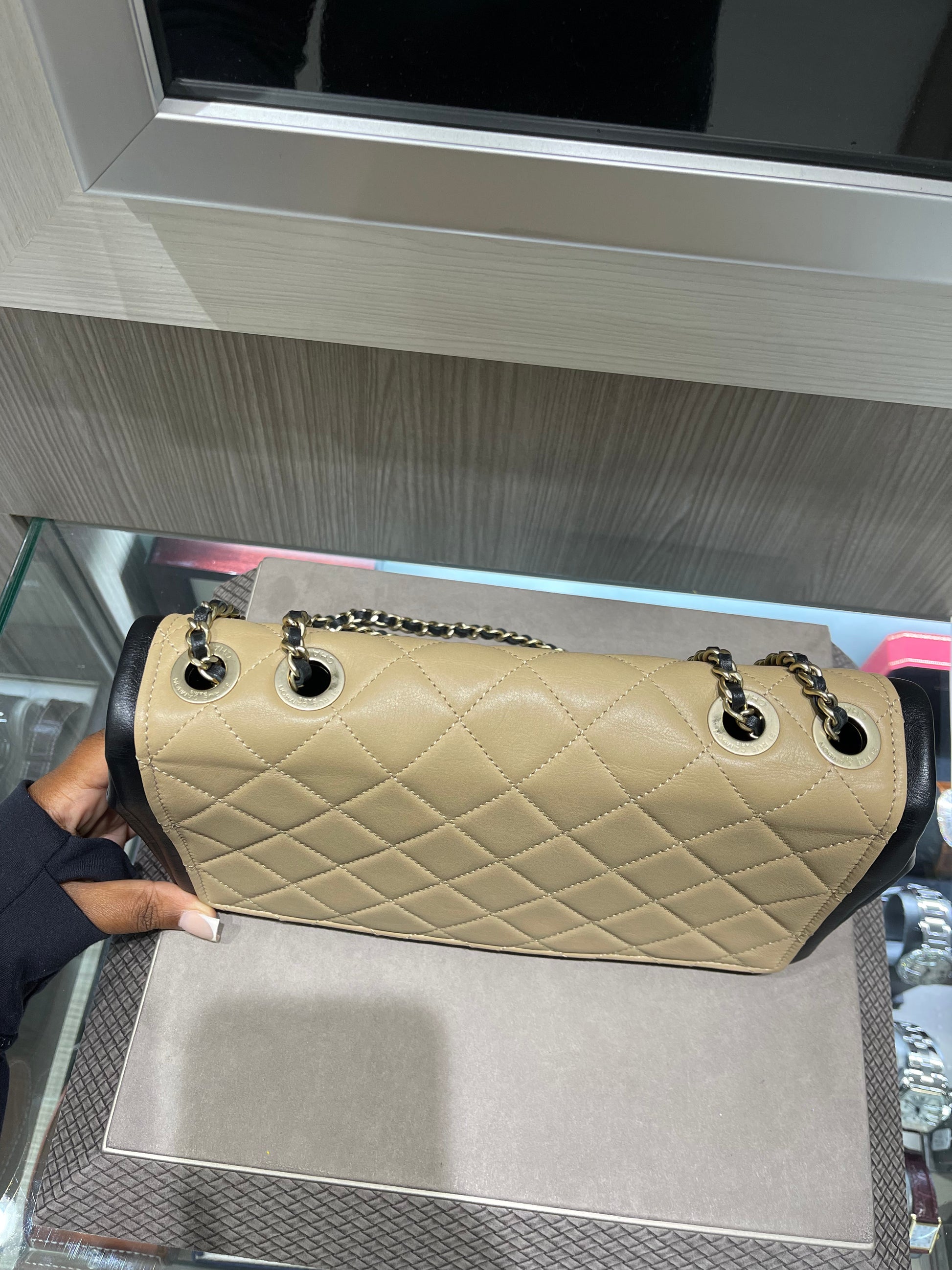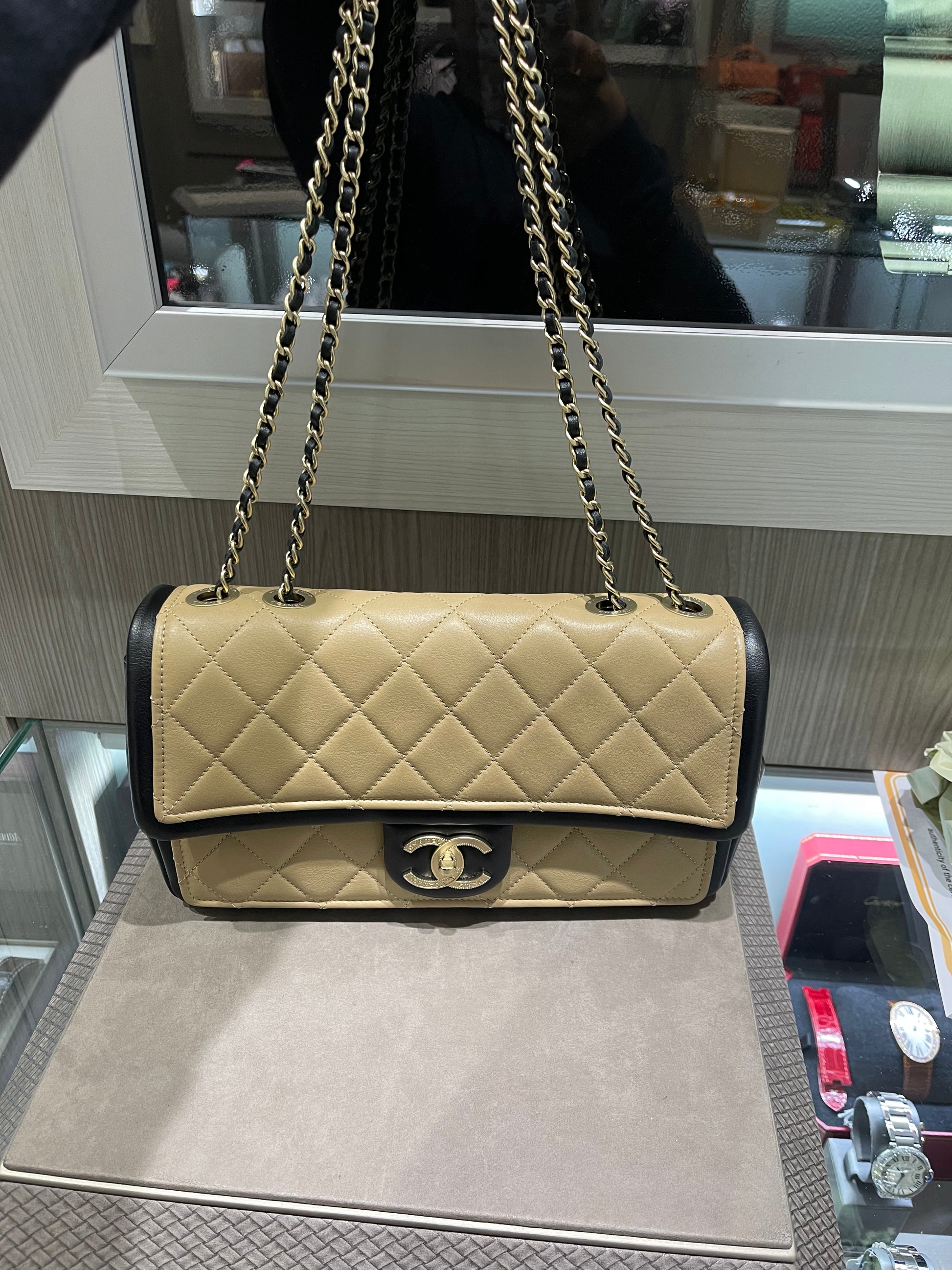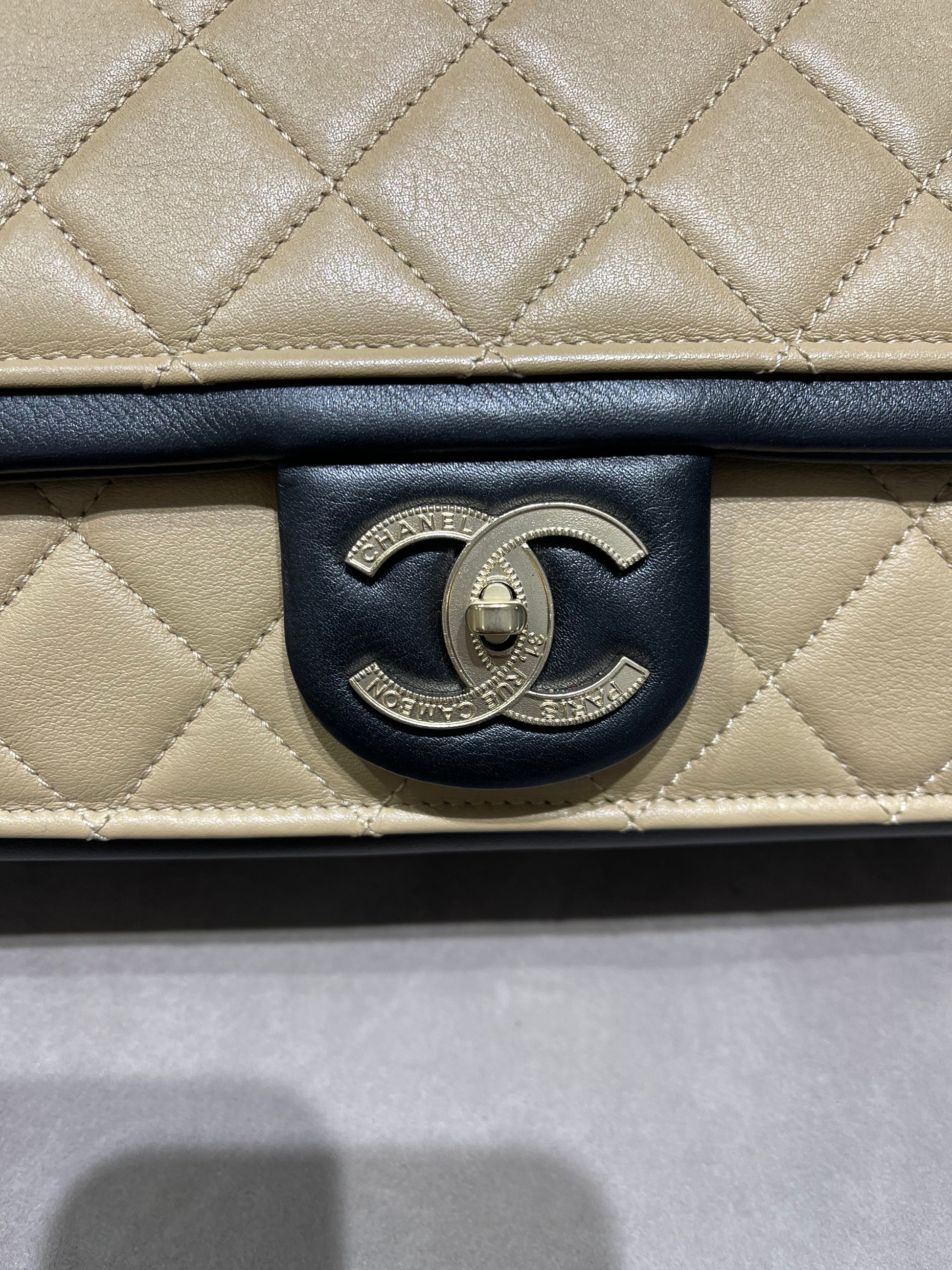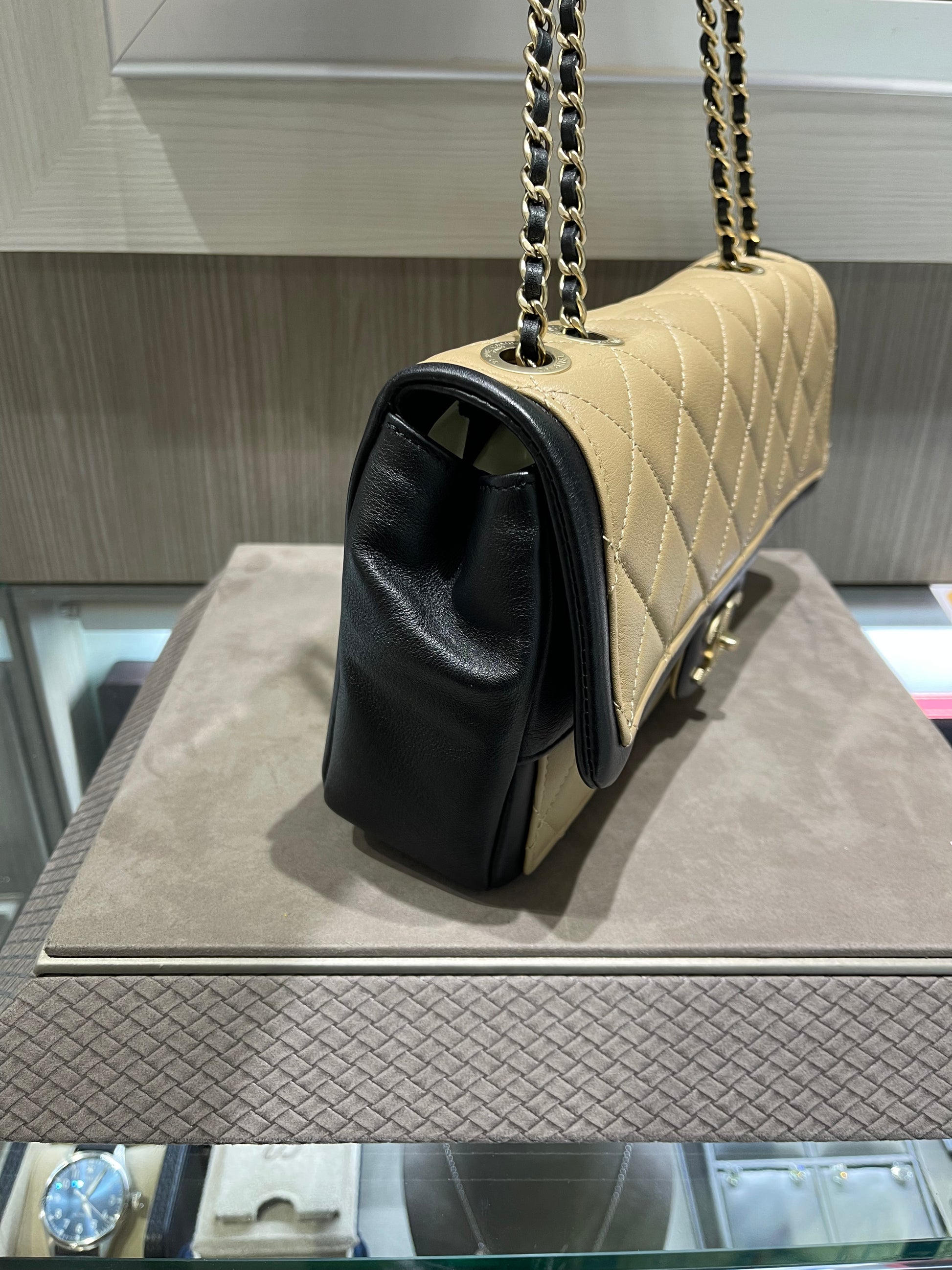 Pre-owned Chanel Medium Graphic Flap Bag in Crème and Black