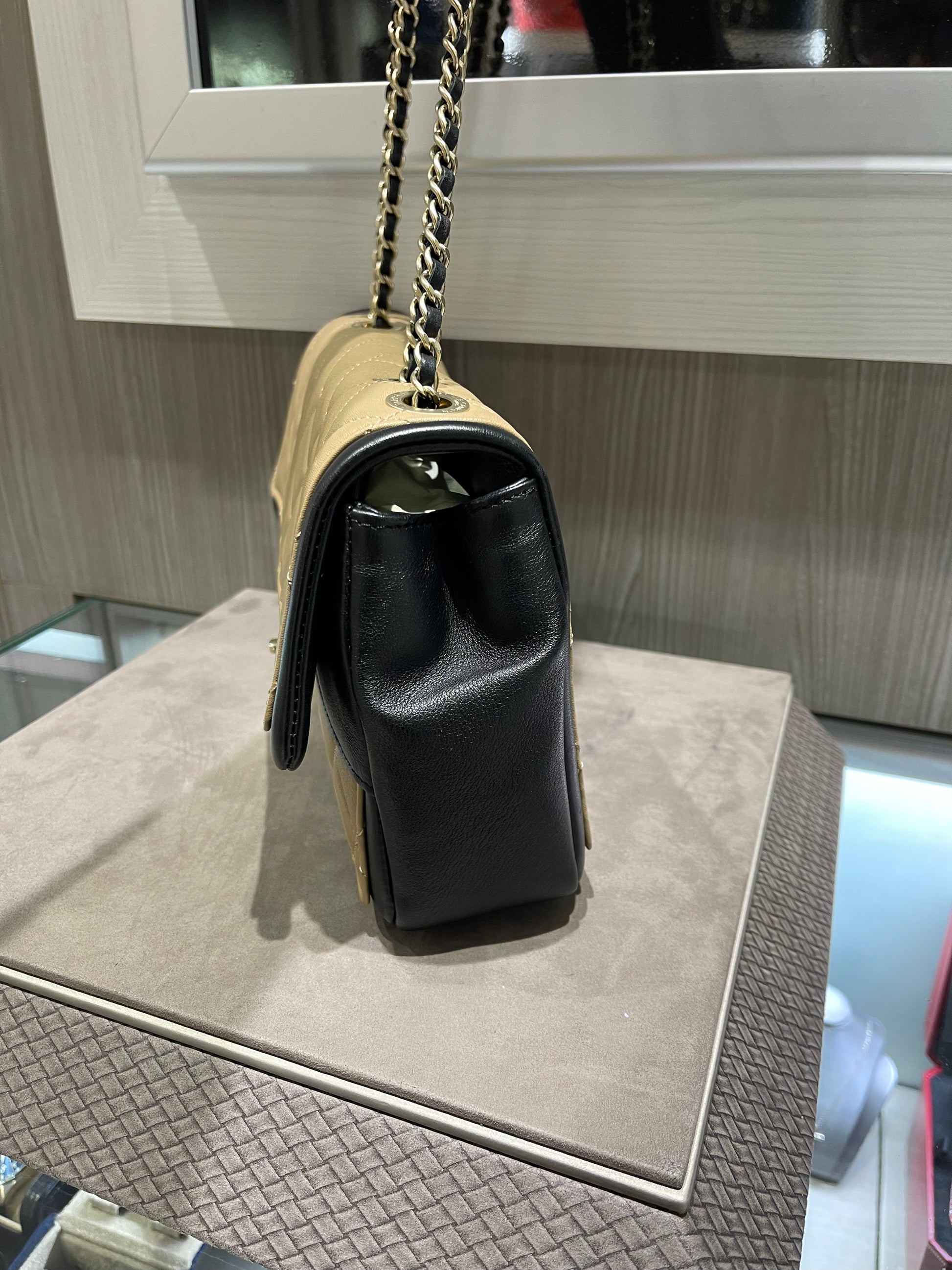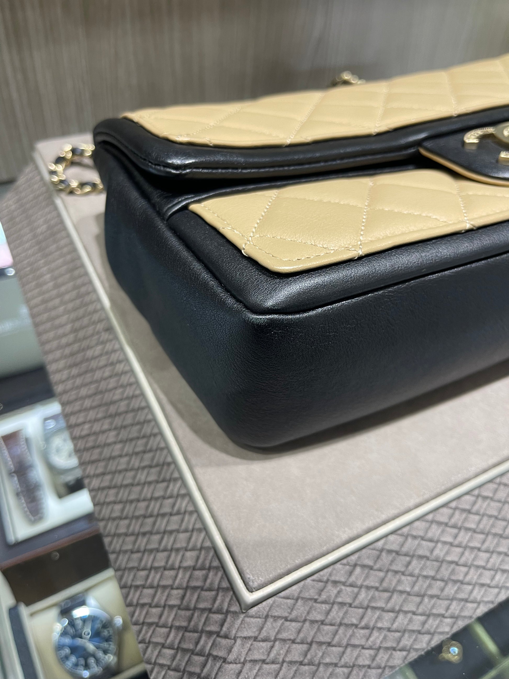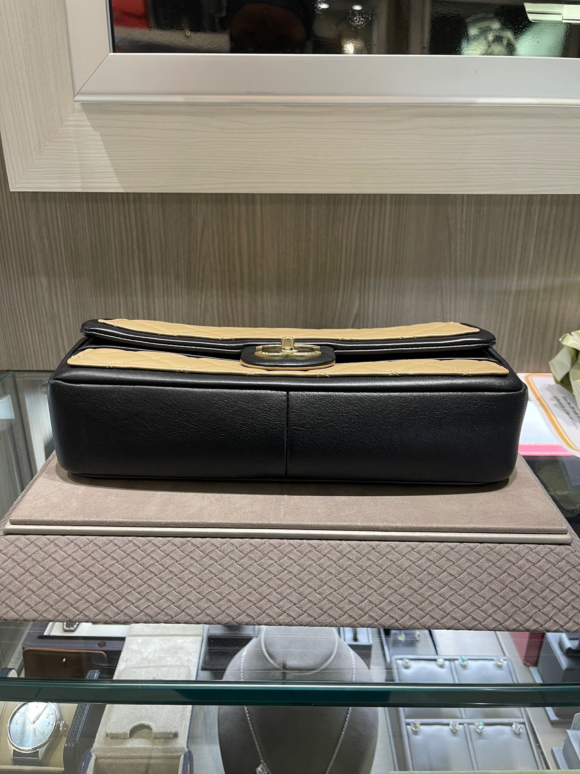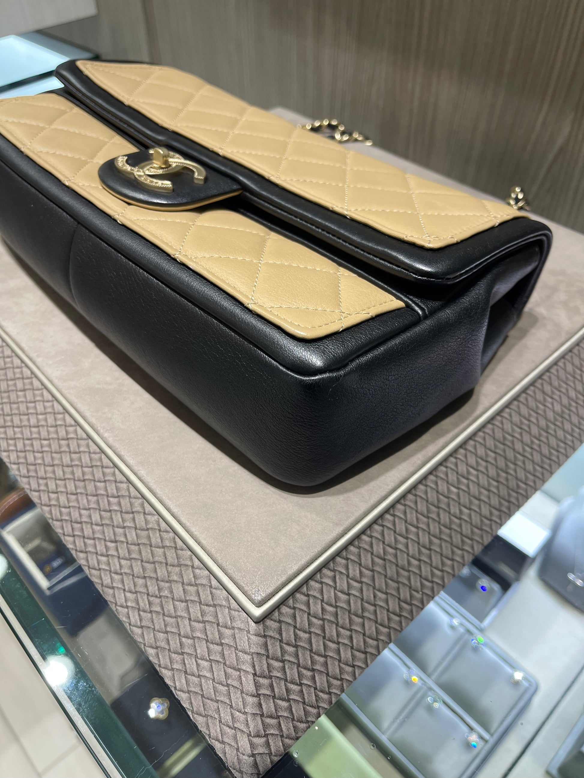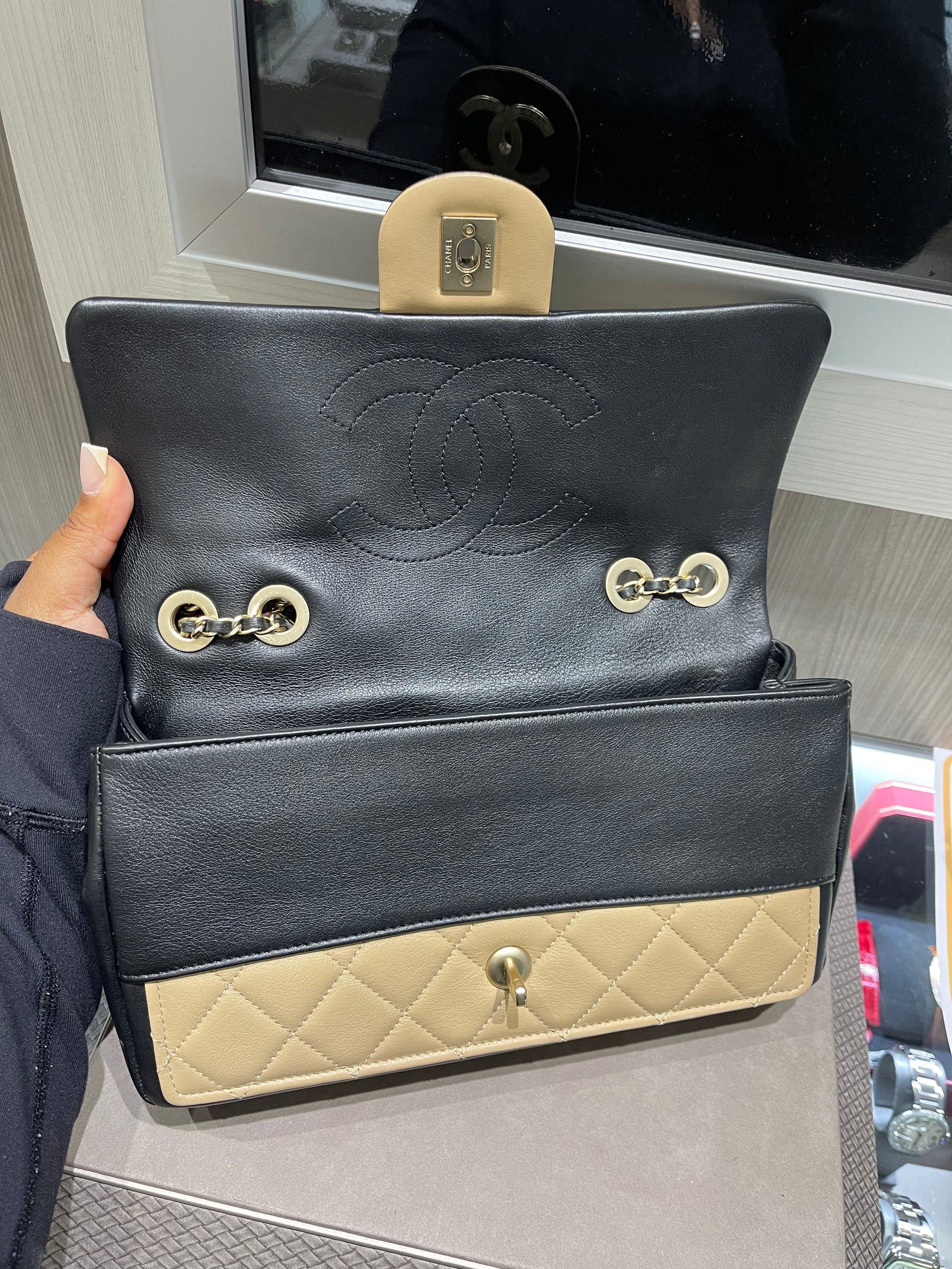 Pre-owned Chanel Medium Graphic Flap Bag in Crème and Black