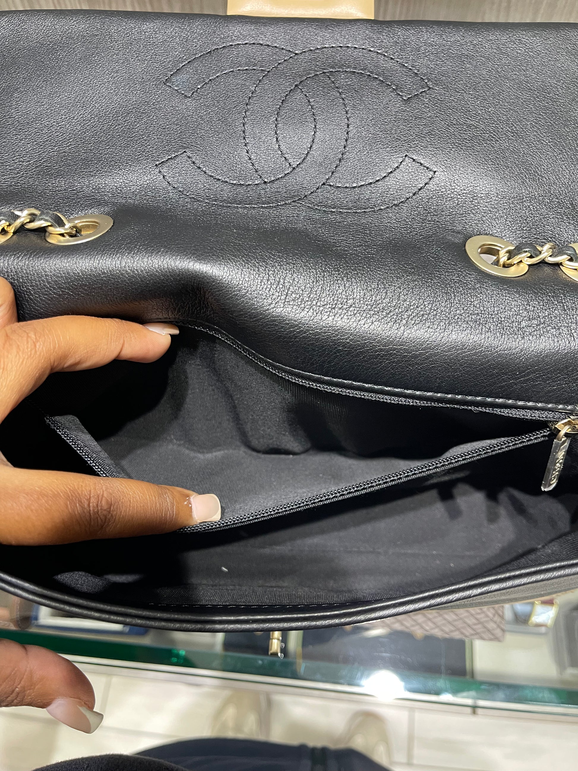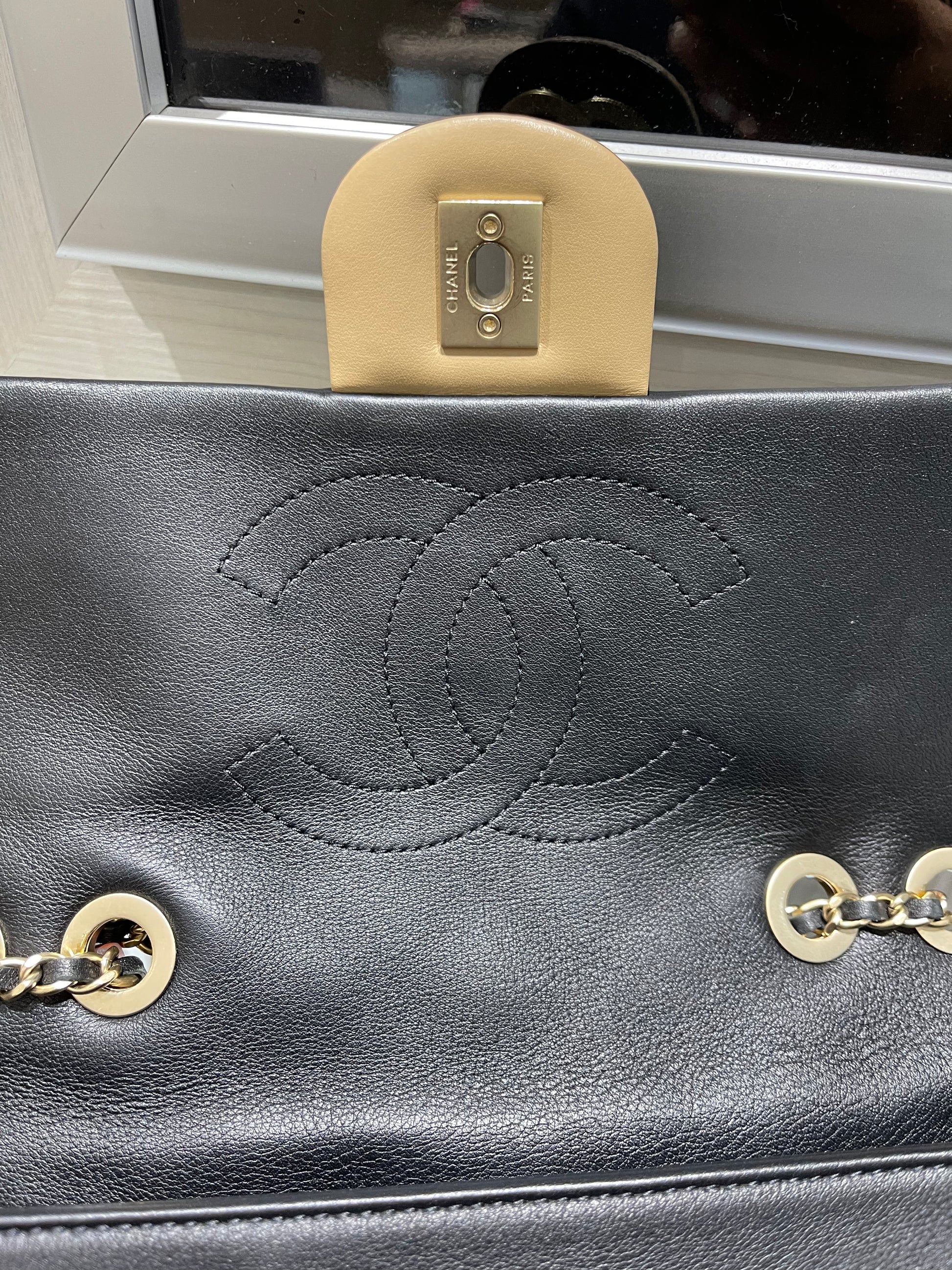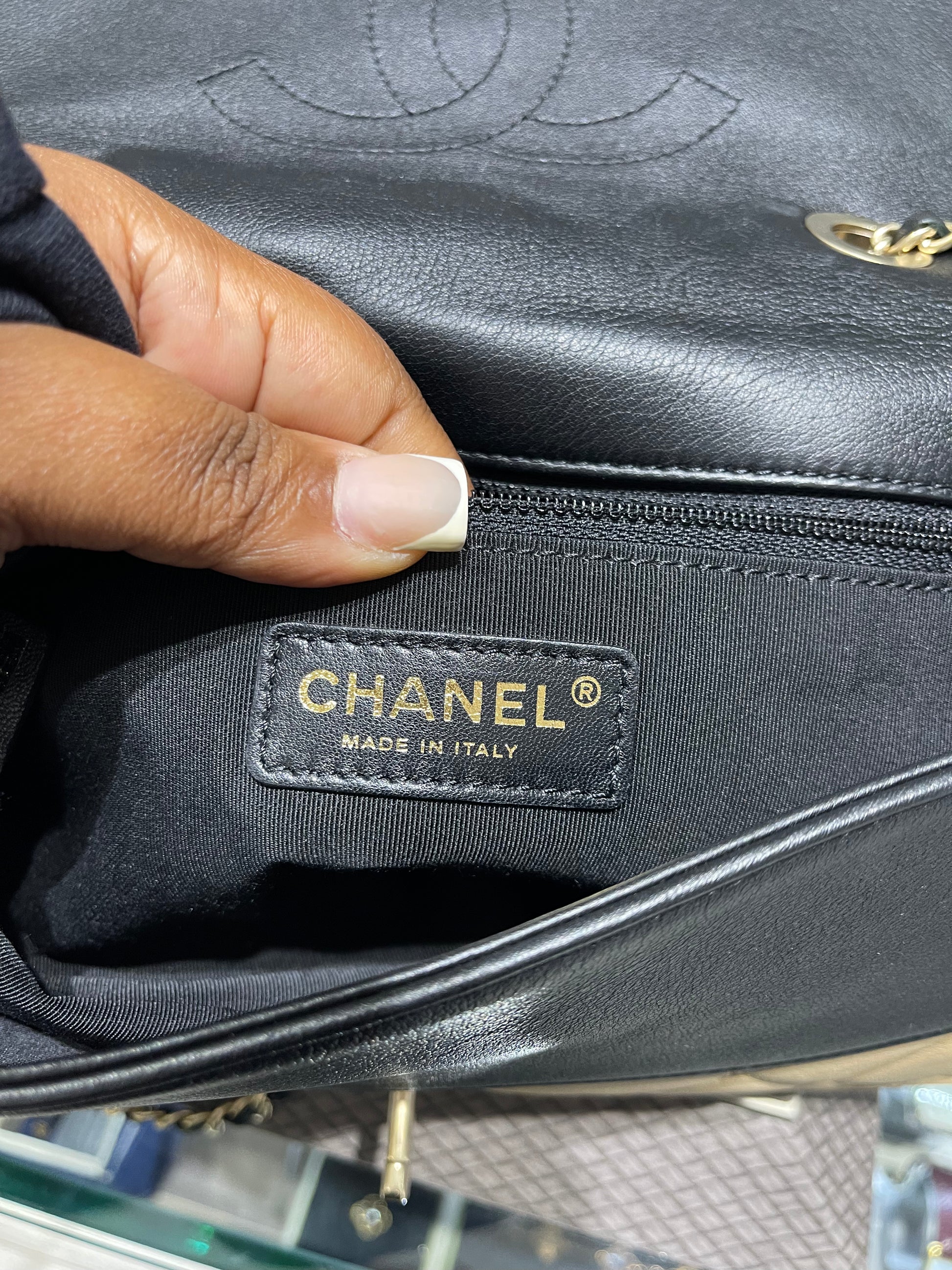 Details: Quilted pattern, interlocking CC turn-lock, chain-link strap, single exterior pocket, single interior pocket