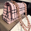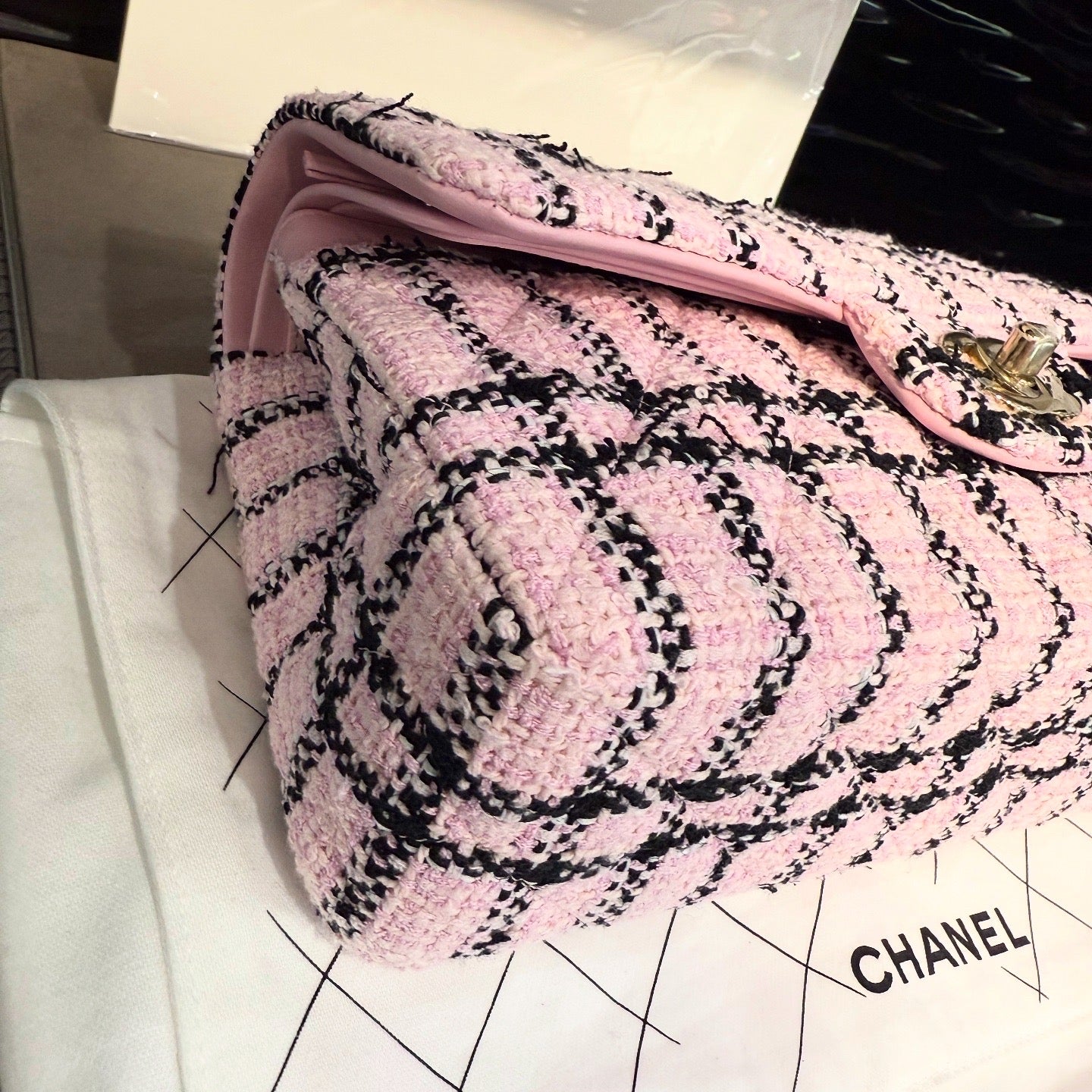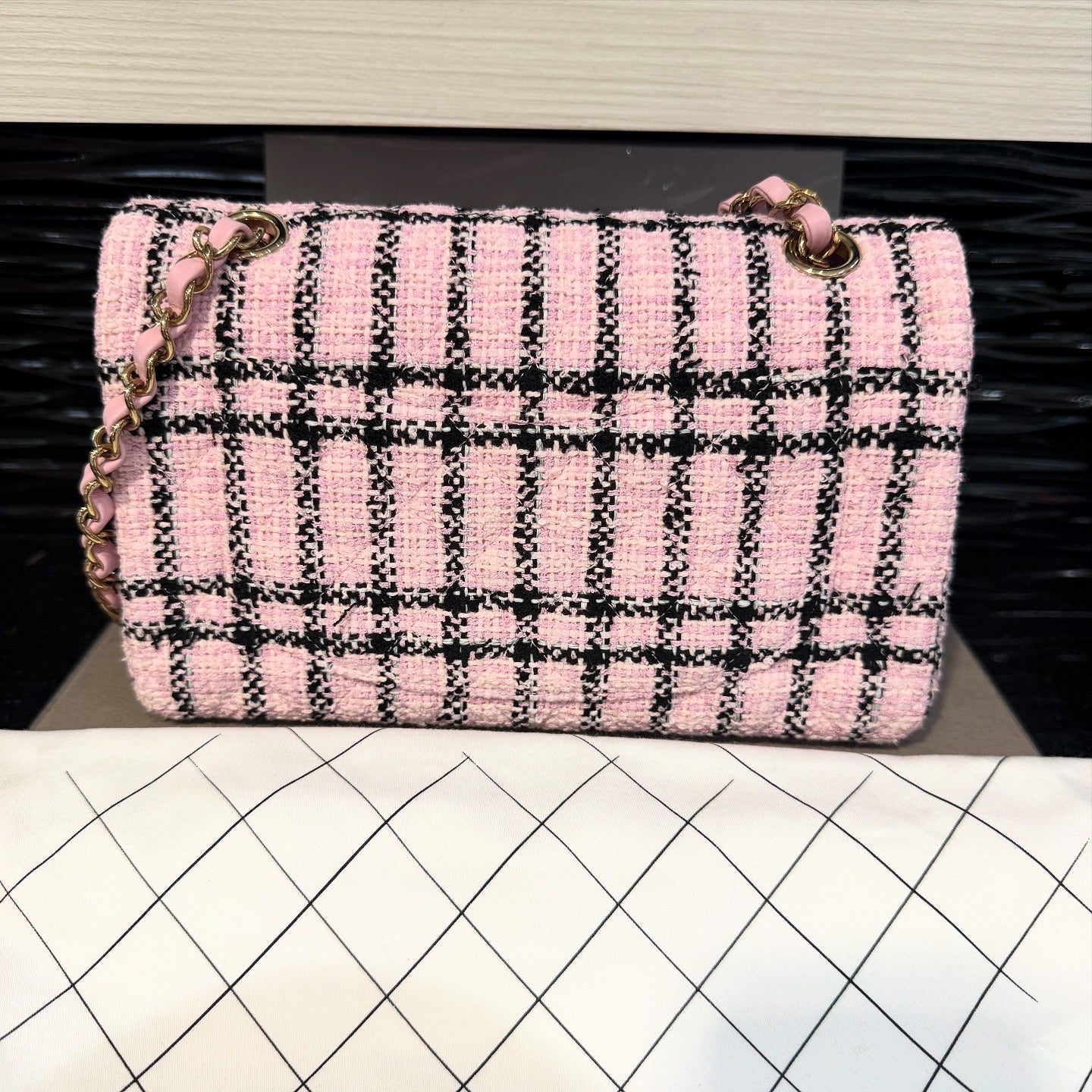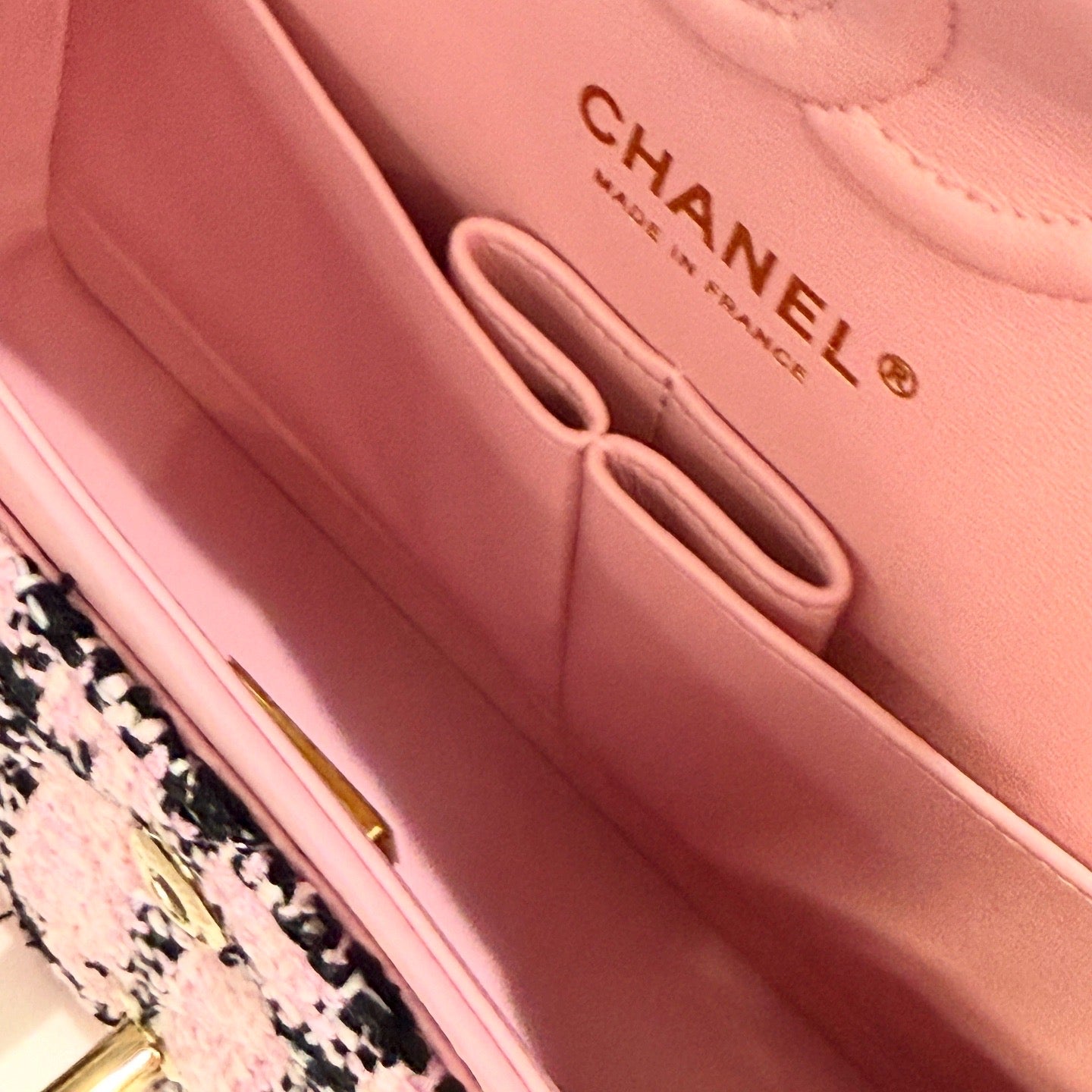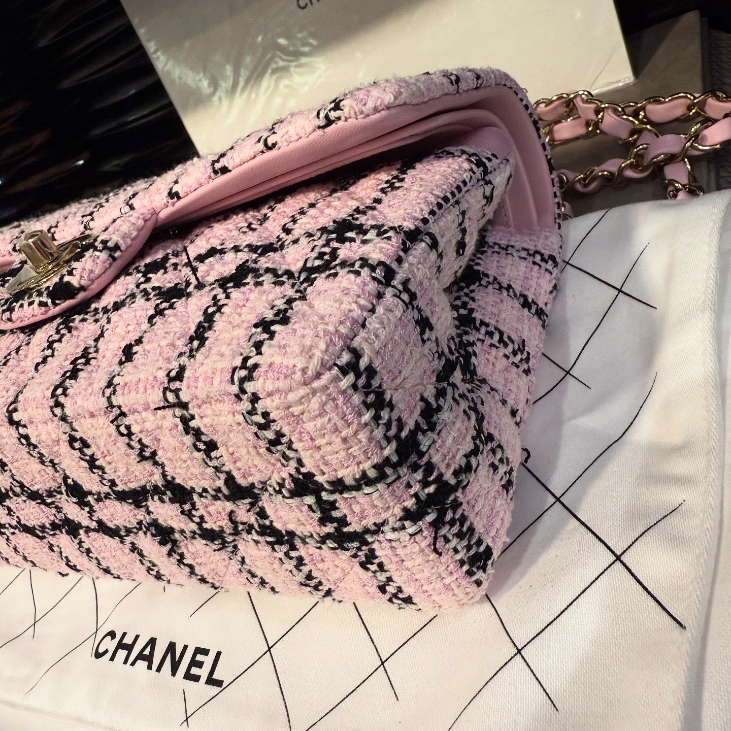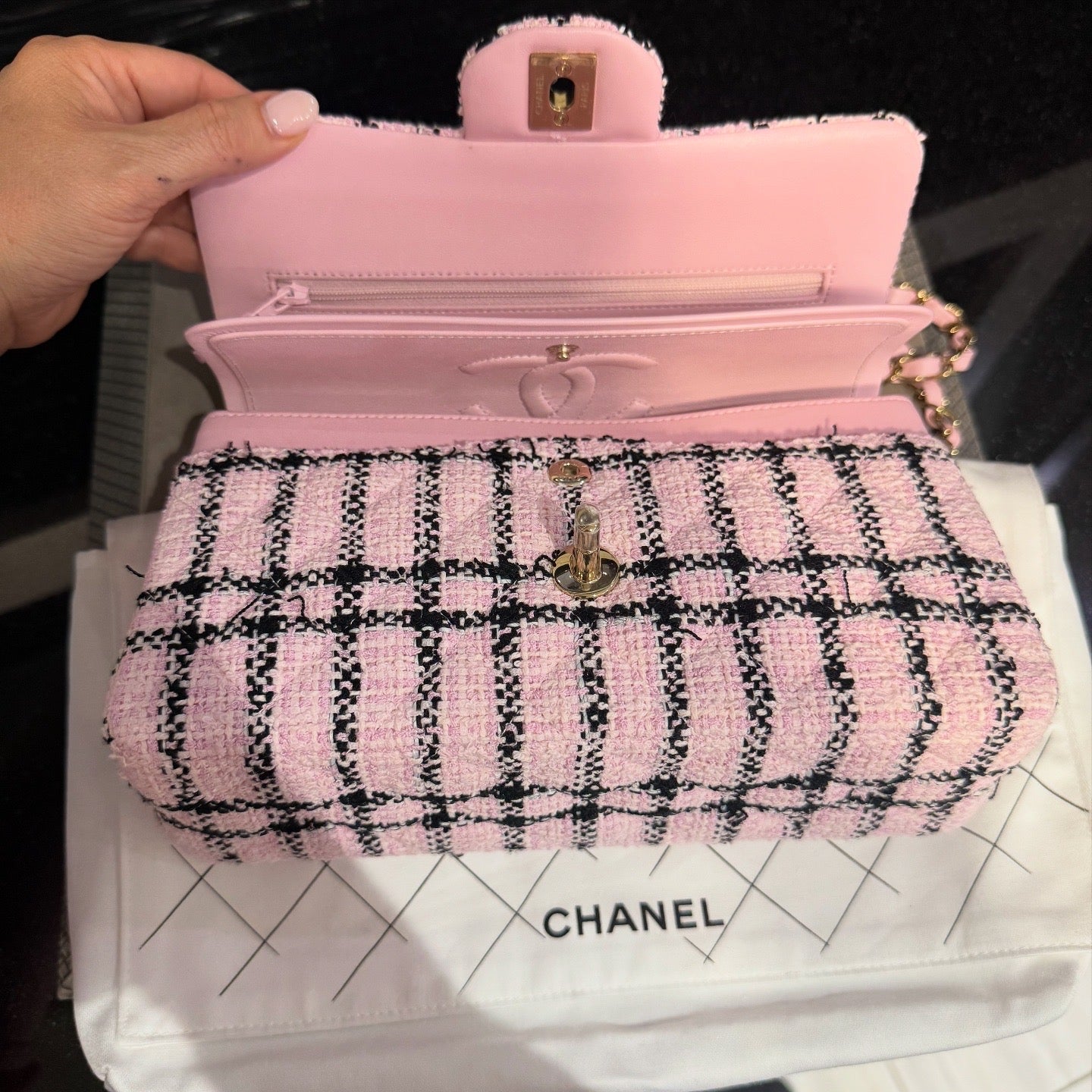 Unworn Chanel Small Classic Flap Bag – Pink & Black Tweed with Gold-Tone Hardware