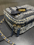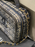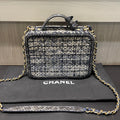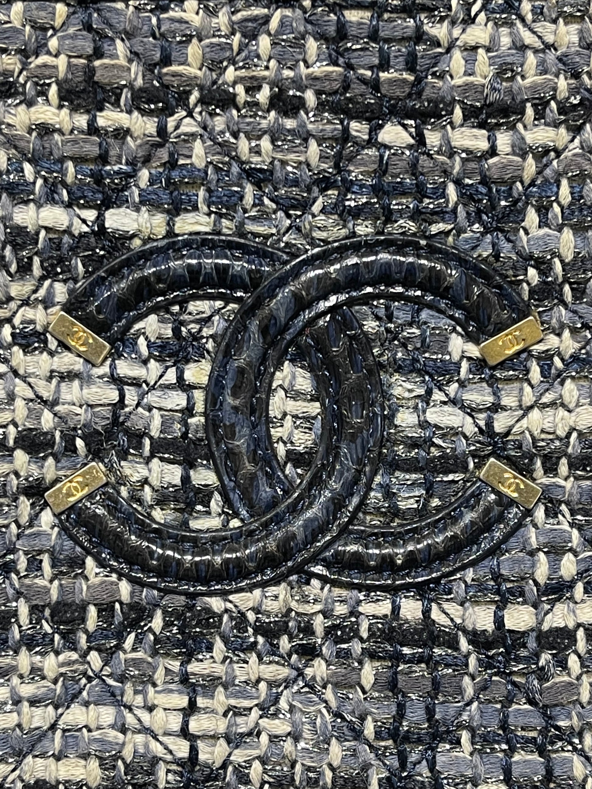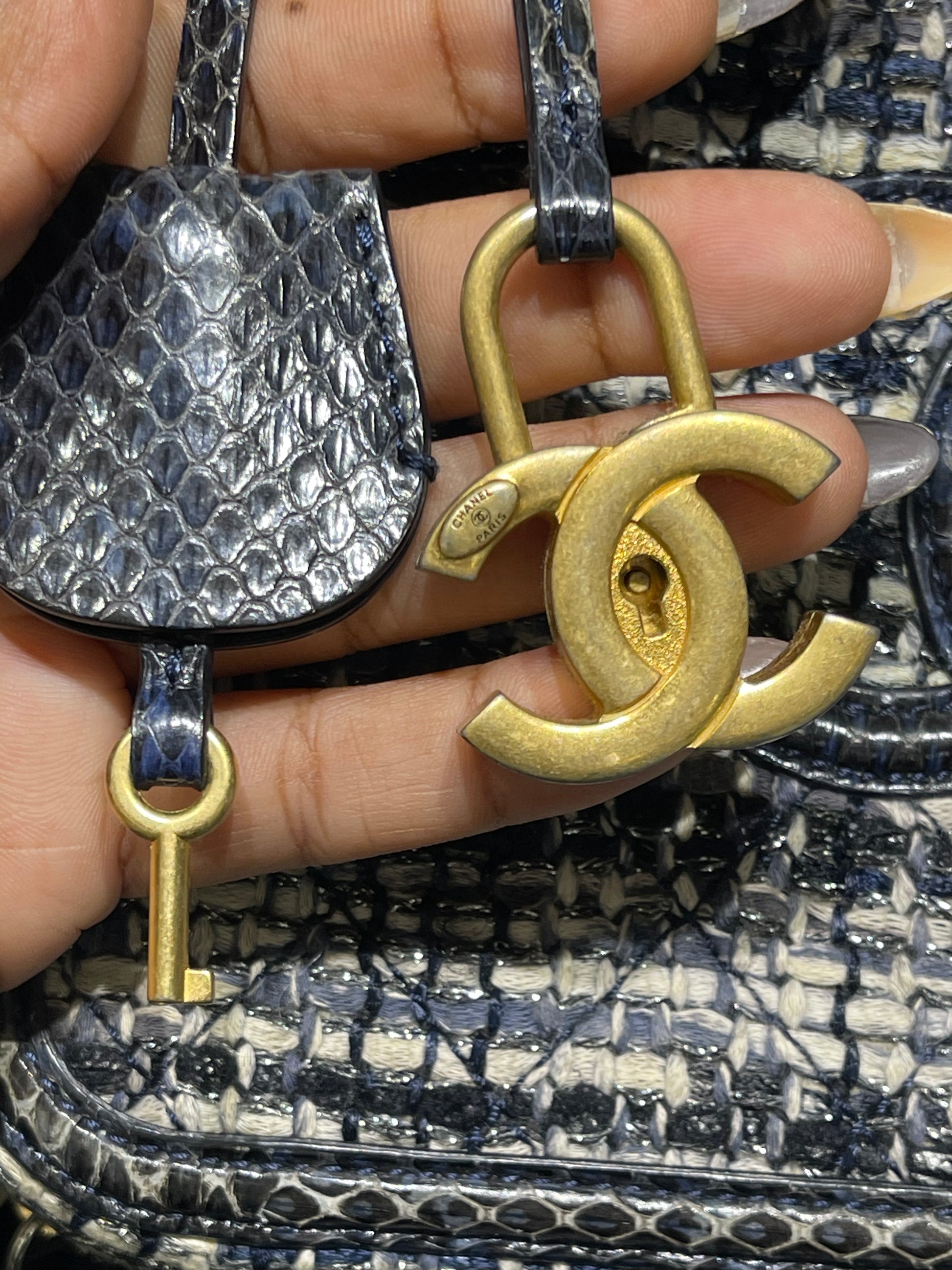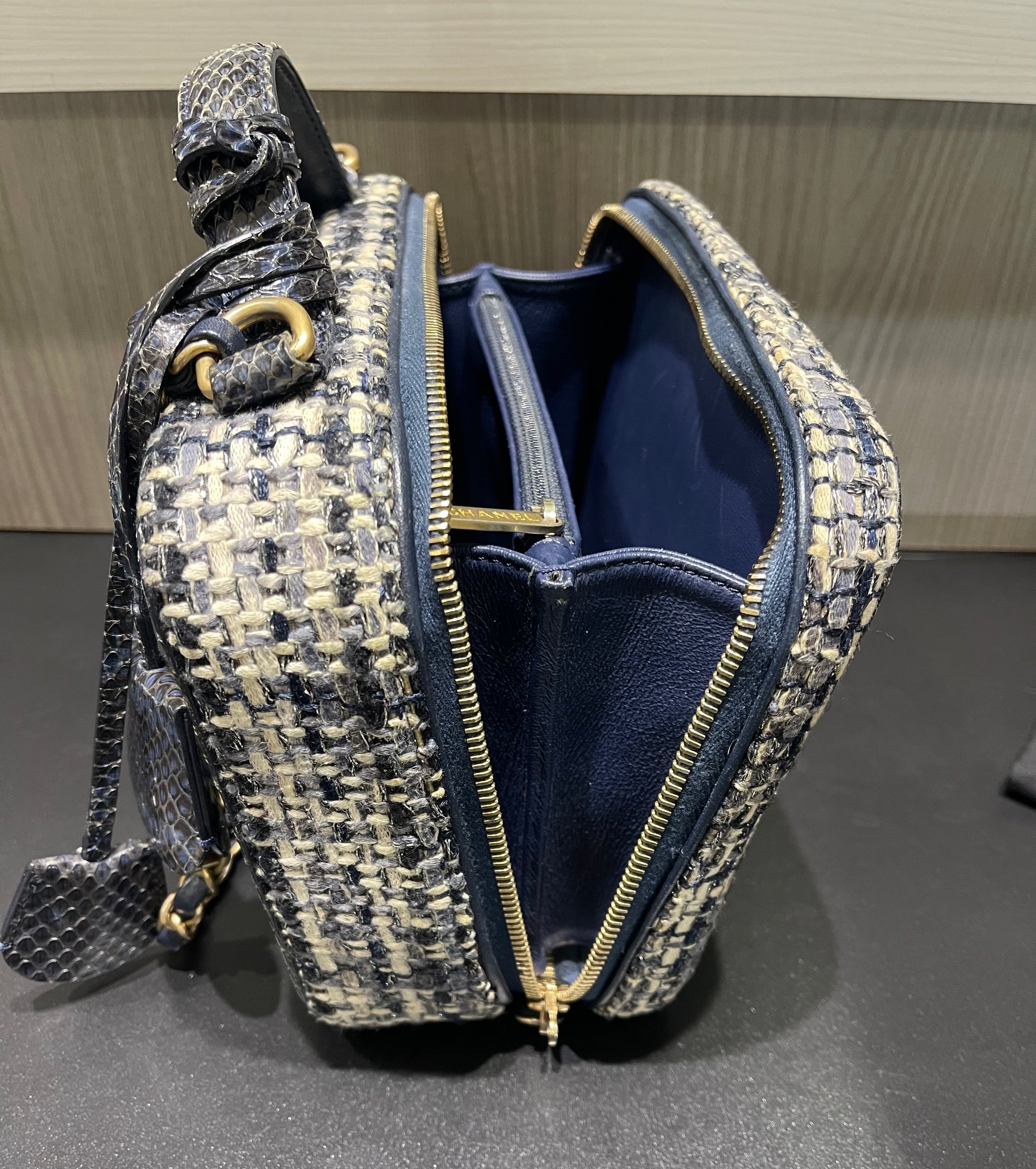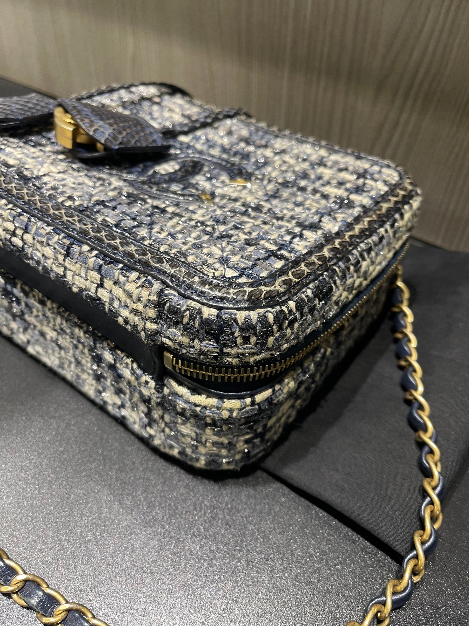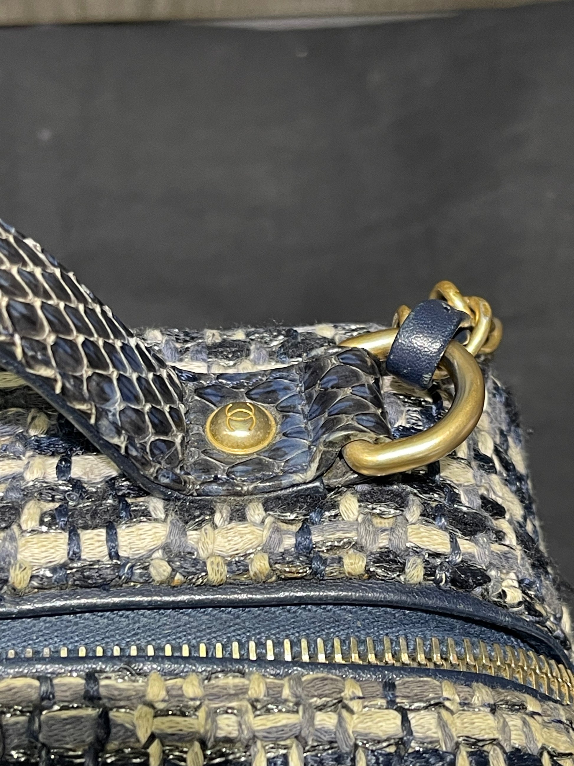 Pre-owned Chanel Medium Vanity Filigree Navy Tweed and Python Leather