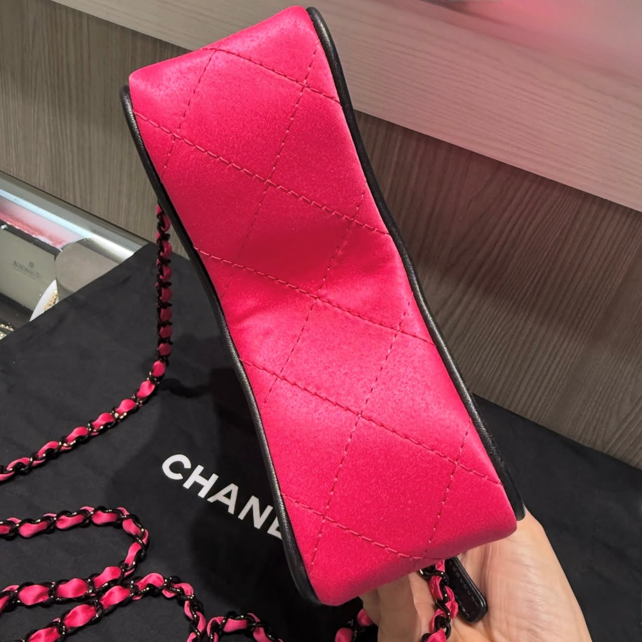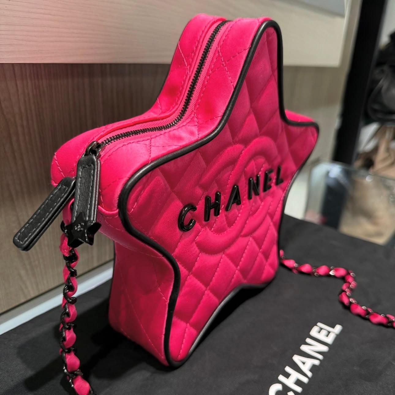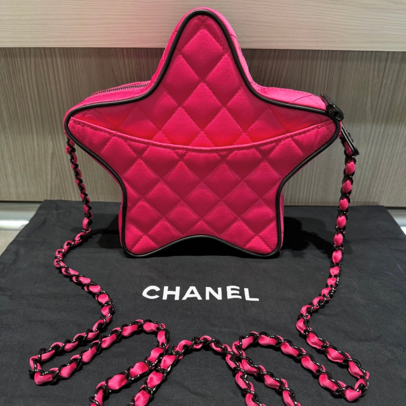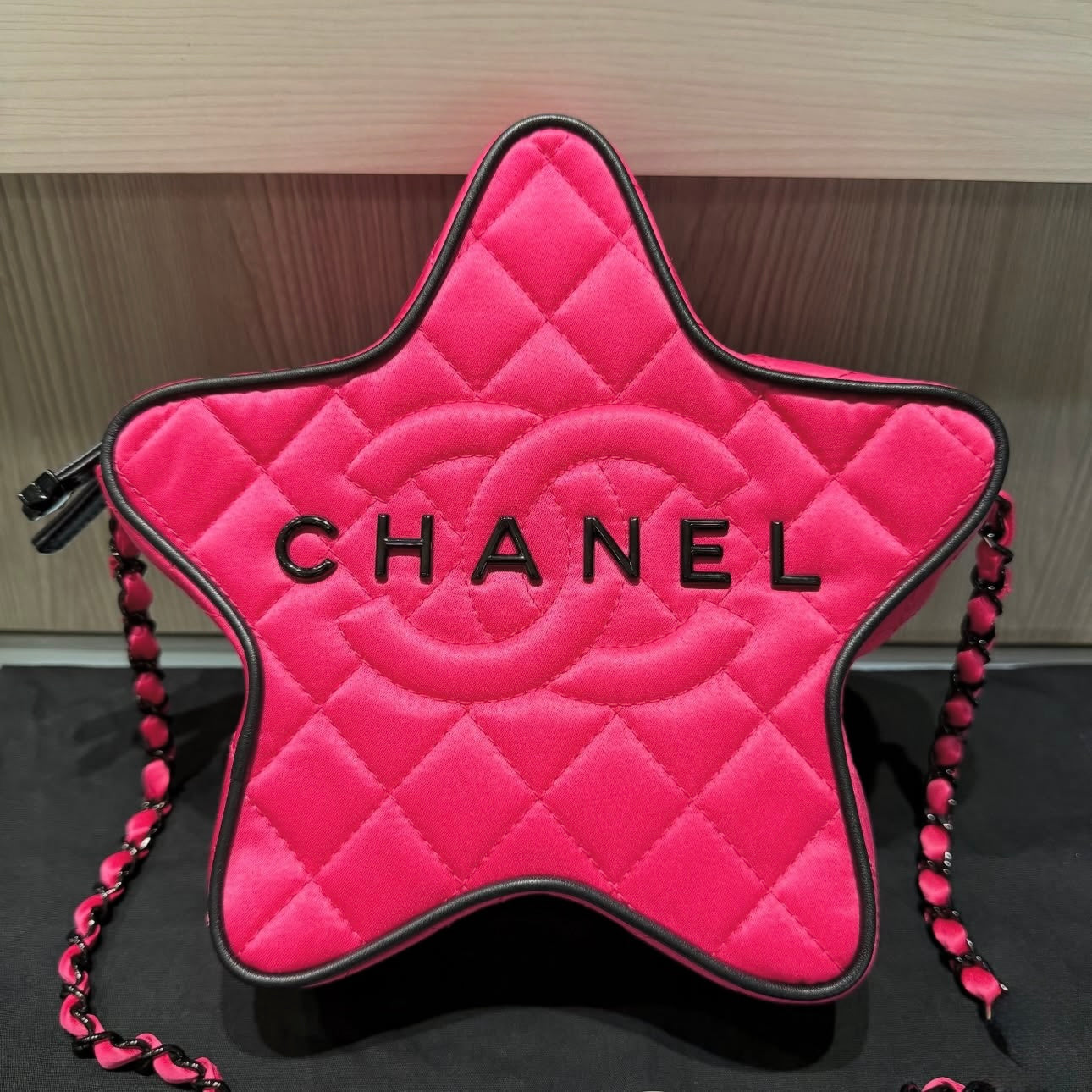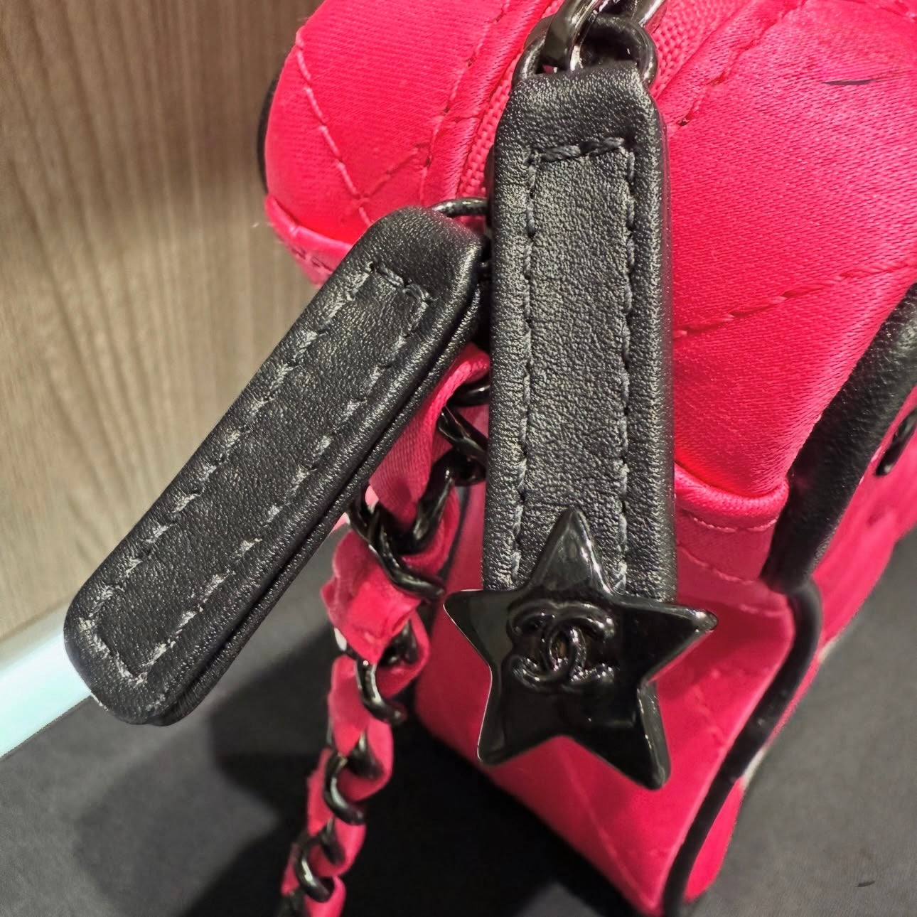 Pre-owned Chanel Satin Quilted Walk of Fame Star Bag Fuchsia/Black