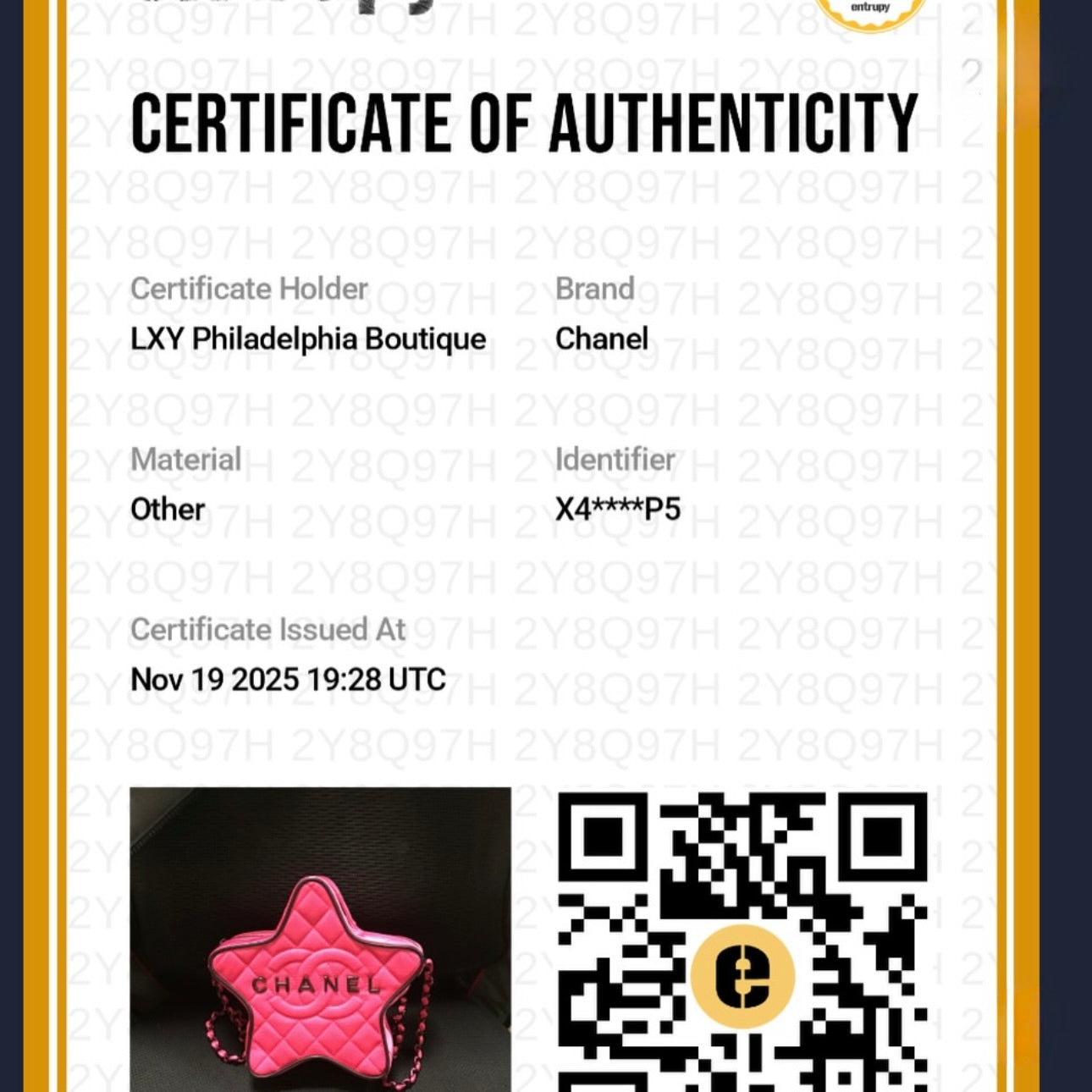 All of our bags are 100% Authentic and Entrupy certified.