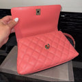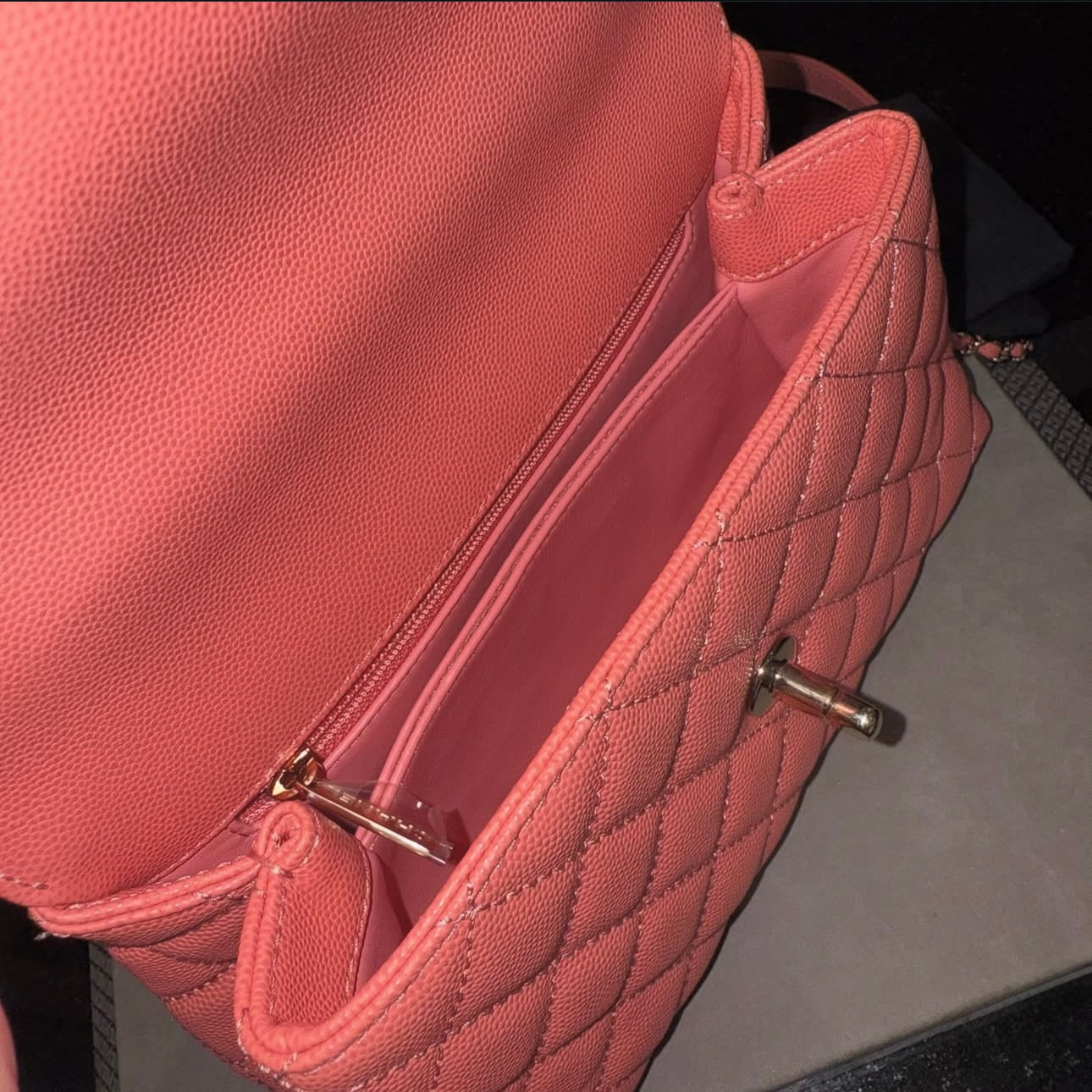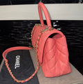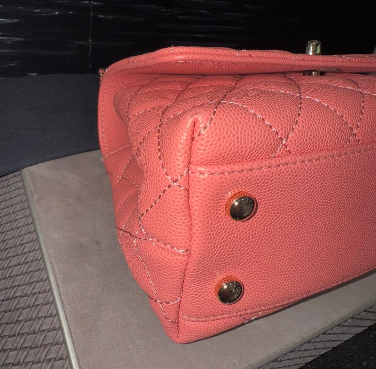 Pre-Owned Chanel Caviar Quilted Mini Coco Handle Flap in Coral