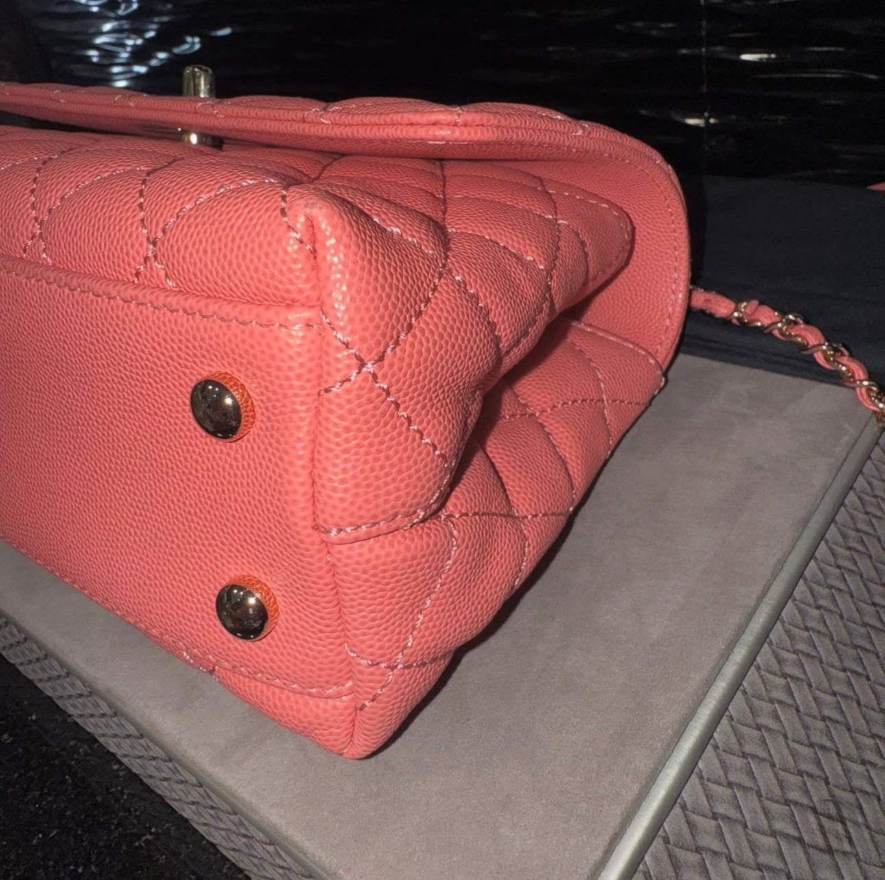 A chic and versatile piece, the Mini Coco Handle offers the perfect balance of classic Chanel sophistication and everyday practicality. Whether carried by the top handle for a polished look or worn crossbody with the chain strap, this elegant coral beauty is a statement bag you’ll reach for again and again.