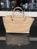 Pre-owned Chanel Tote Quilted Calfskin Medium Beige Tan SHW (2017-2018)
