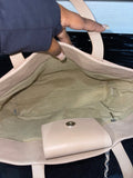 This is an authentic CHANEL Medium Quilted Calfskin Tote, crafted in supple beige calfskin leather with the House’s signature diamond quilting. Designed with both rolled leather top handles and a longer shoulder strap, this tote offers versatile wear and everyday elegance. The interior is lined in neutral fabric and features practical compartments, making it a functional yet timeless piece.