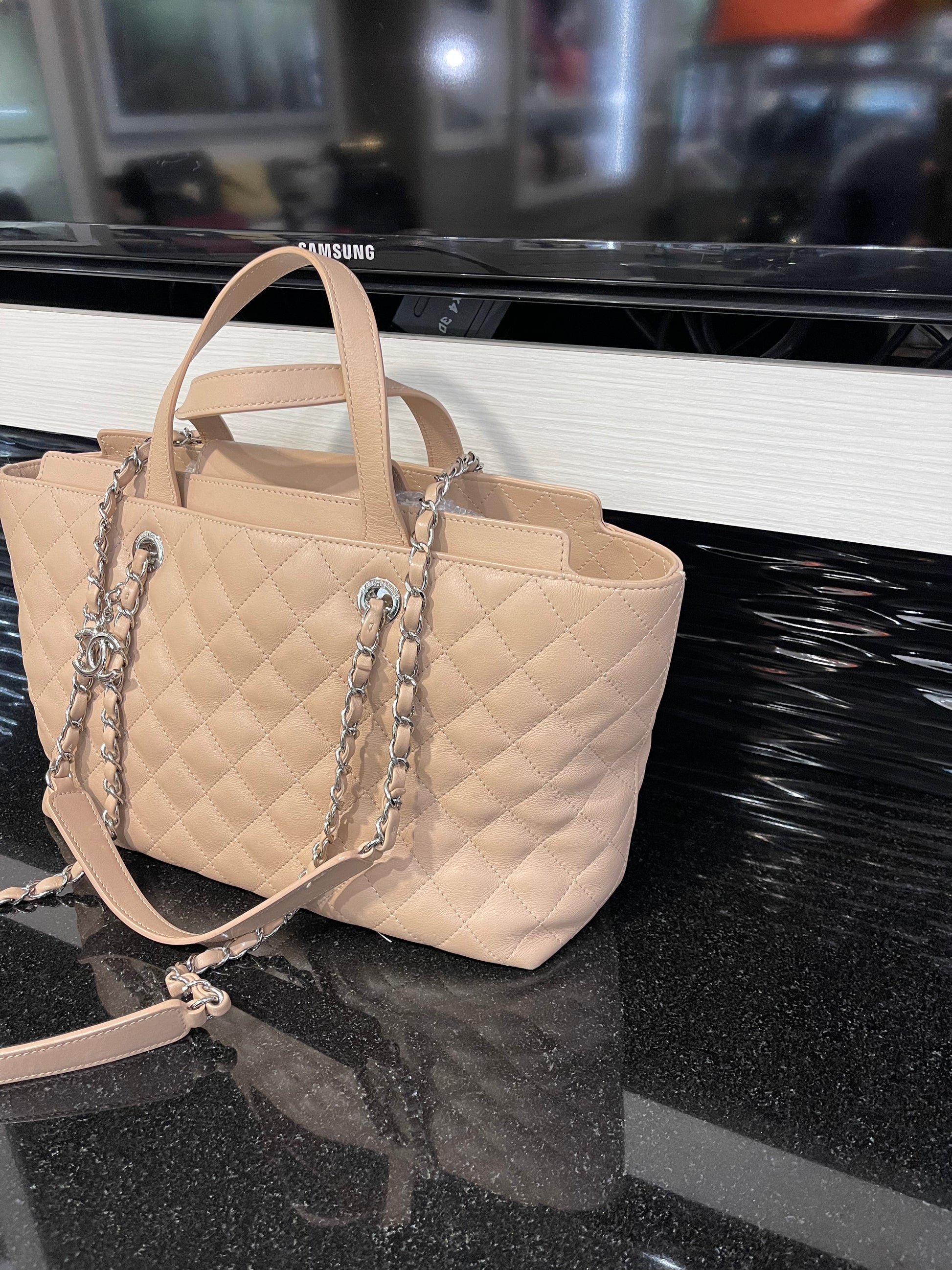 Chic and versatile, this Chanel tote combines timeless quilting with functional design, making it an elegant companion for both everyday use and elevated occasions.