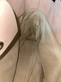 Condition: This tote is in good condition, showing visible signs of prior use including a relaxed structure, slight creasing, scuffing on the bottom corners, light scratches on hardware, small marks on the leather, and some marks on the interior fabric.