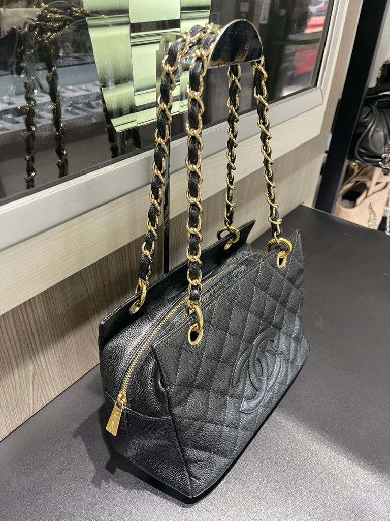 Pre-owned Chanel Petite Shopper Tote Black Caviar Leather with Gold Hardware (2002-2003)