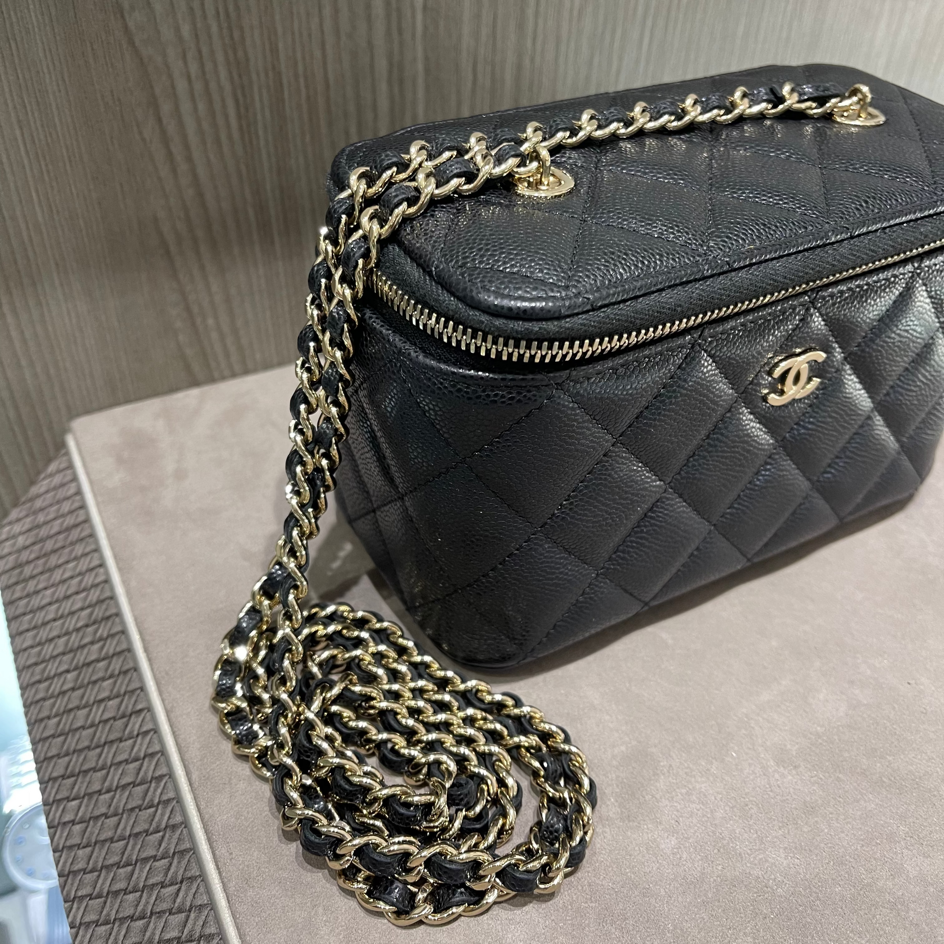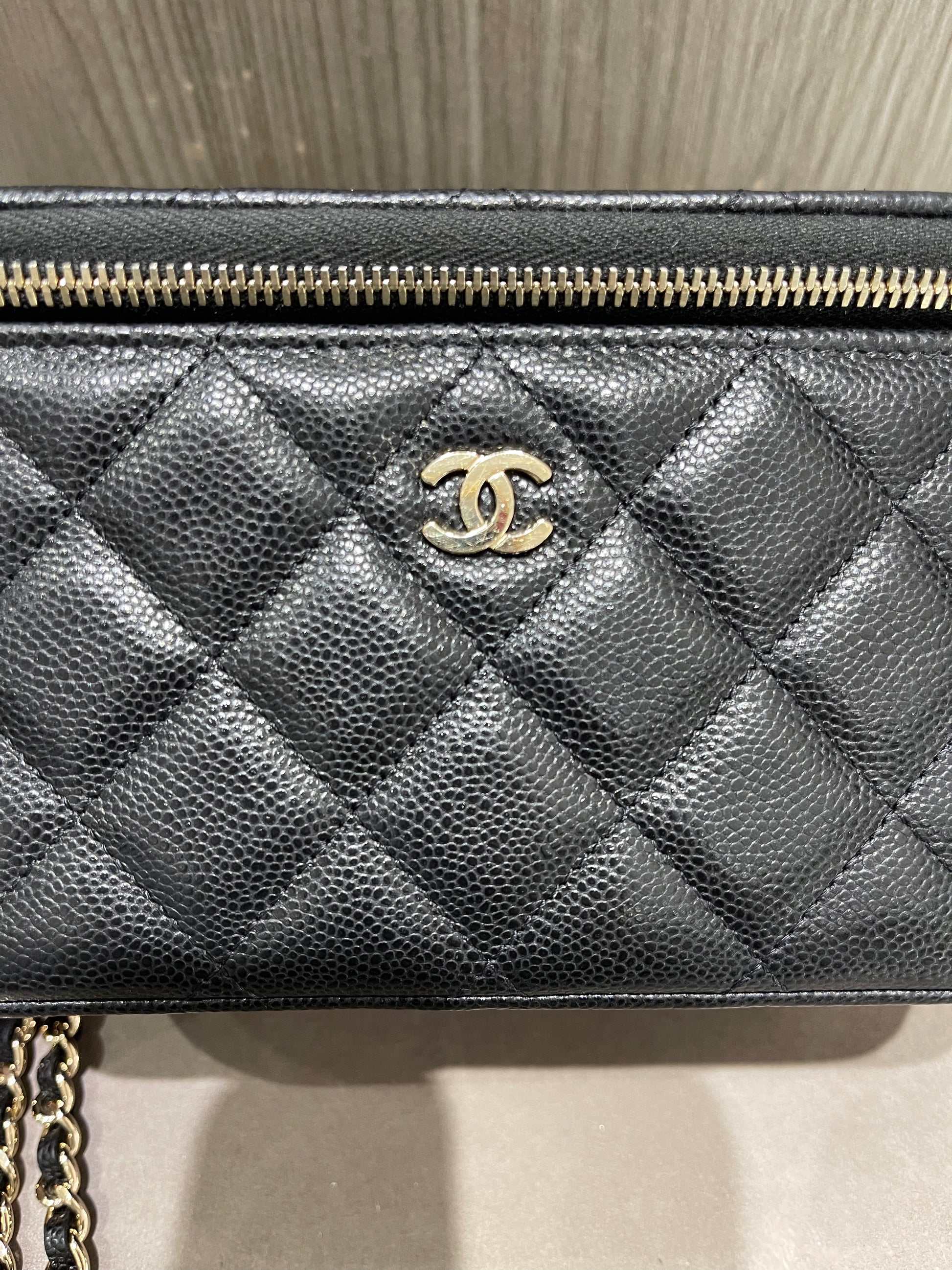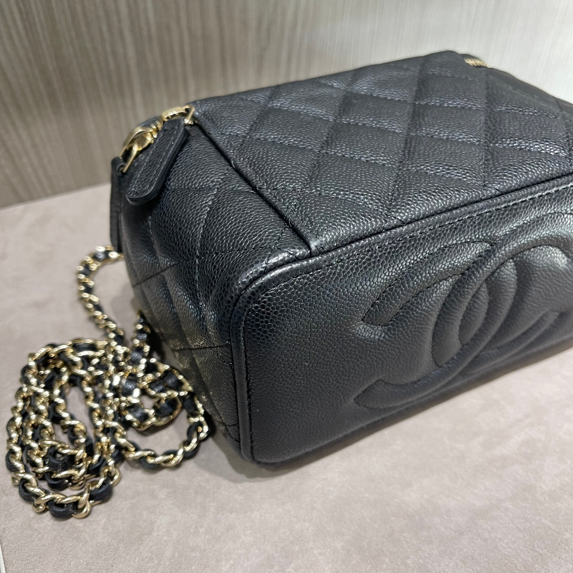 Chanel Small Vanity Case Black Caviar with Crossbody chain