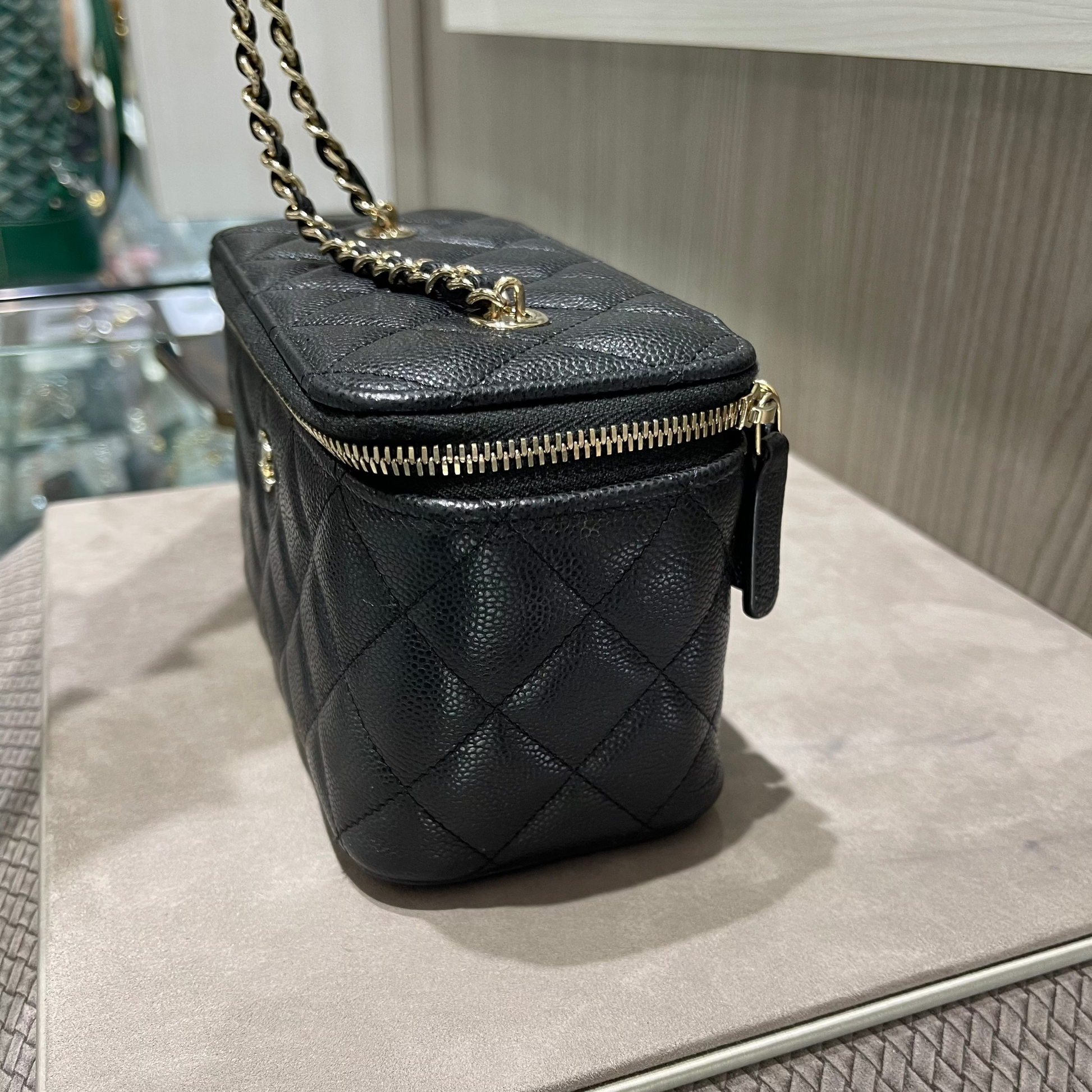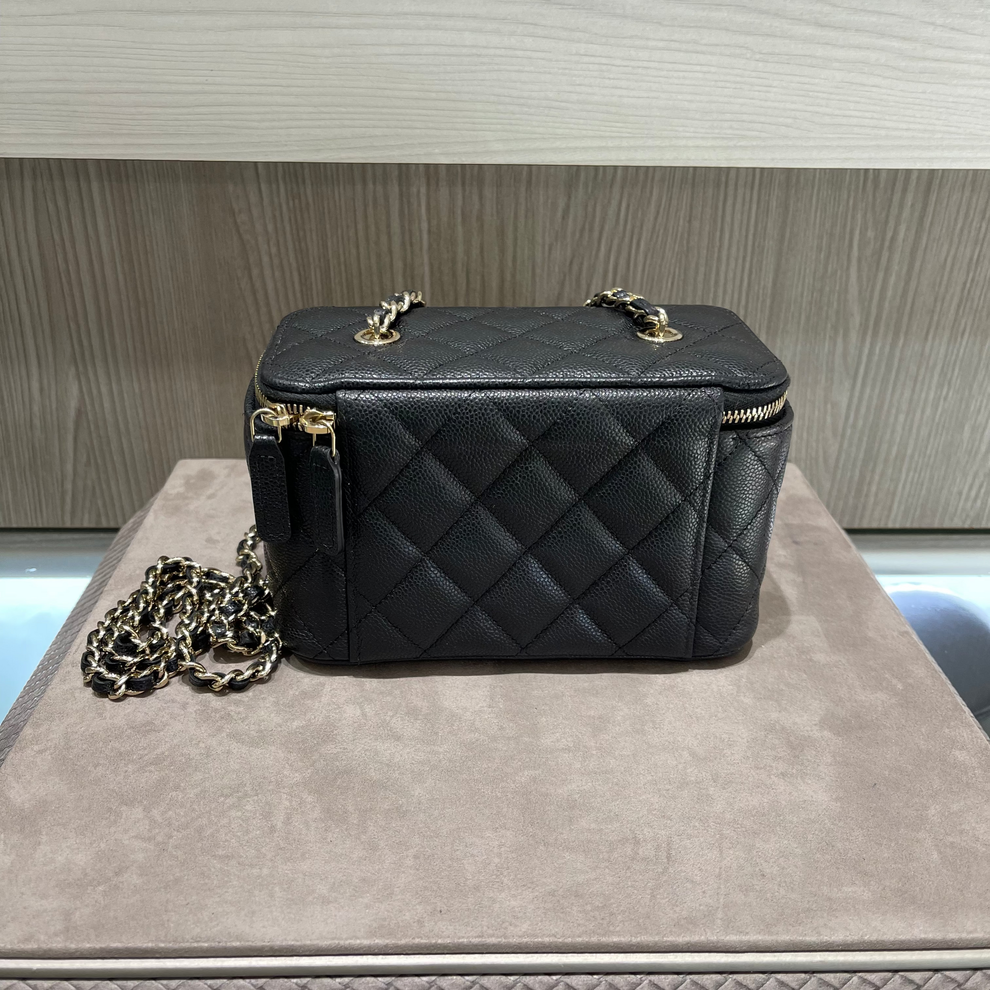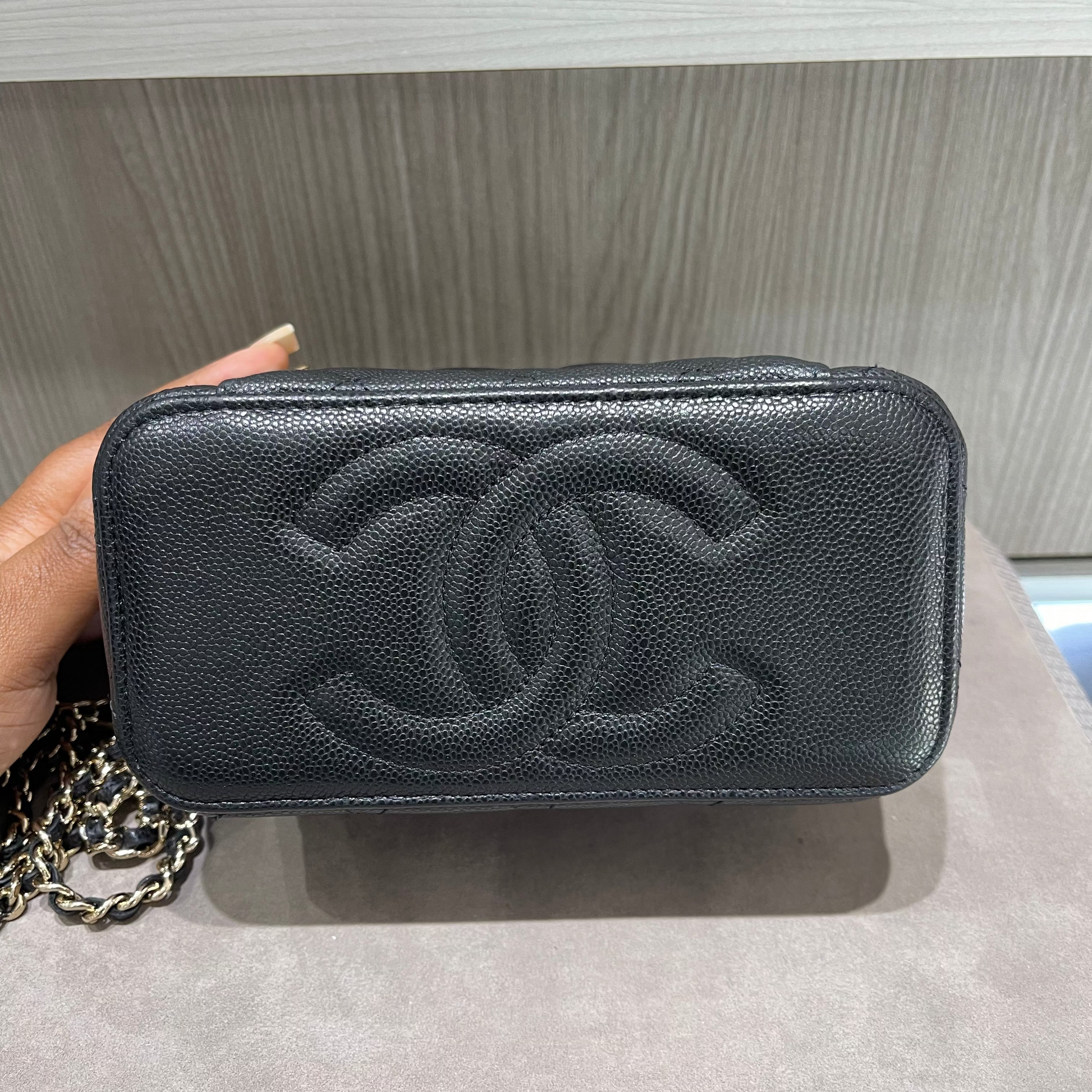 Compact yet iconic, this Chanel vanity case is the perfect statement accessory for day-to-night wear—blending practicality, luxury, and the unmistakable charm of the House of Chanel.