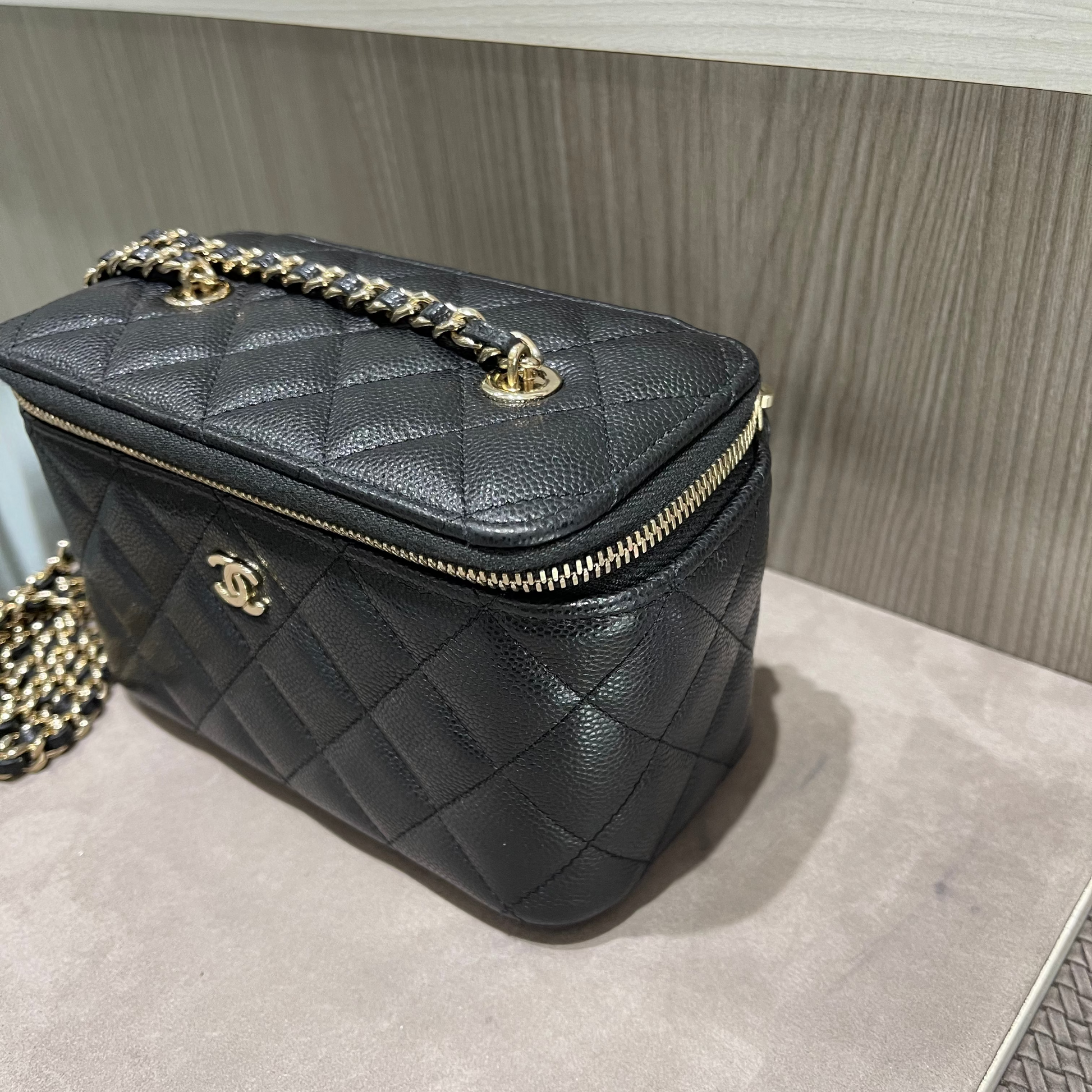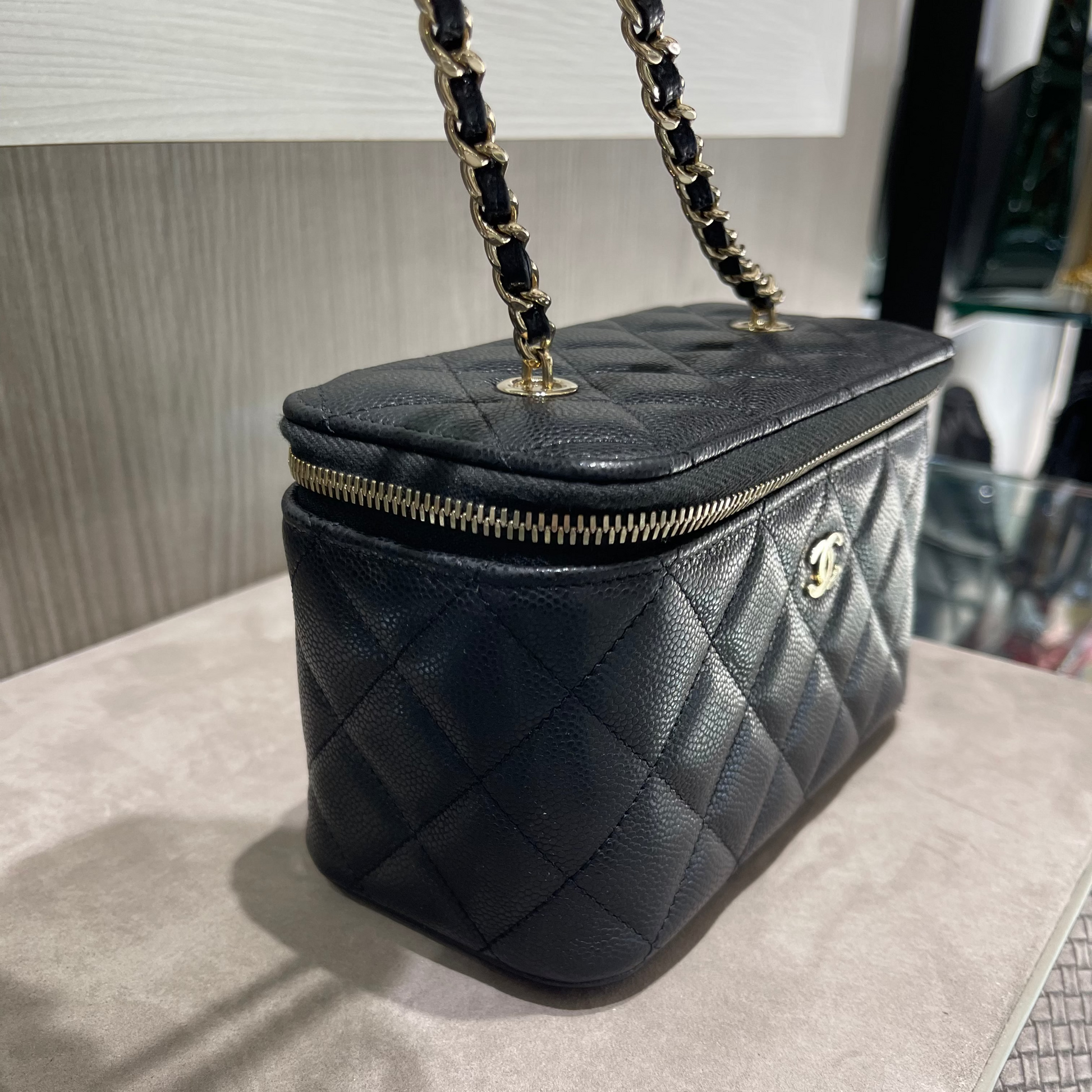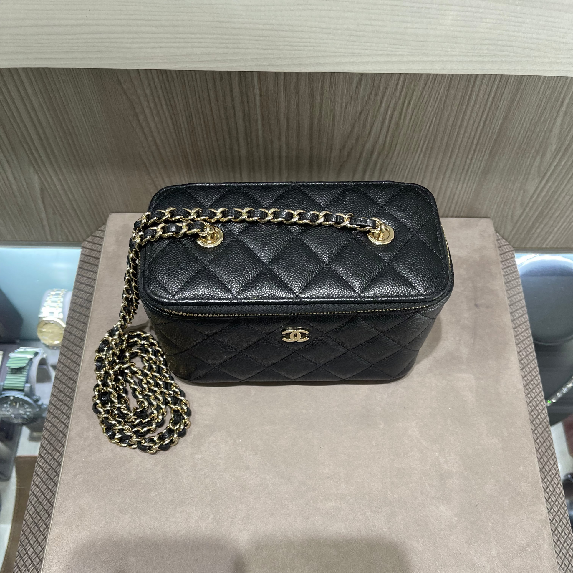 Compact yet iconic, this Chanel vanity case is the perfect statement accessory for day-to-night wear—blending practicality, luxury, and the unmistakable charm of the House of Chanel.