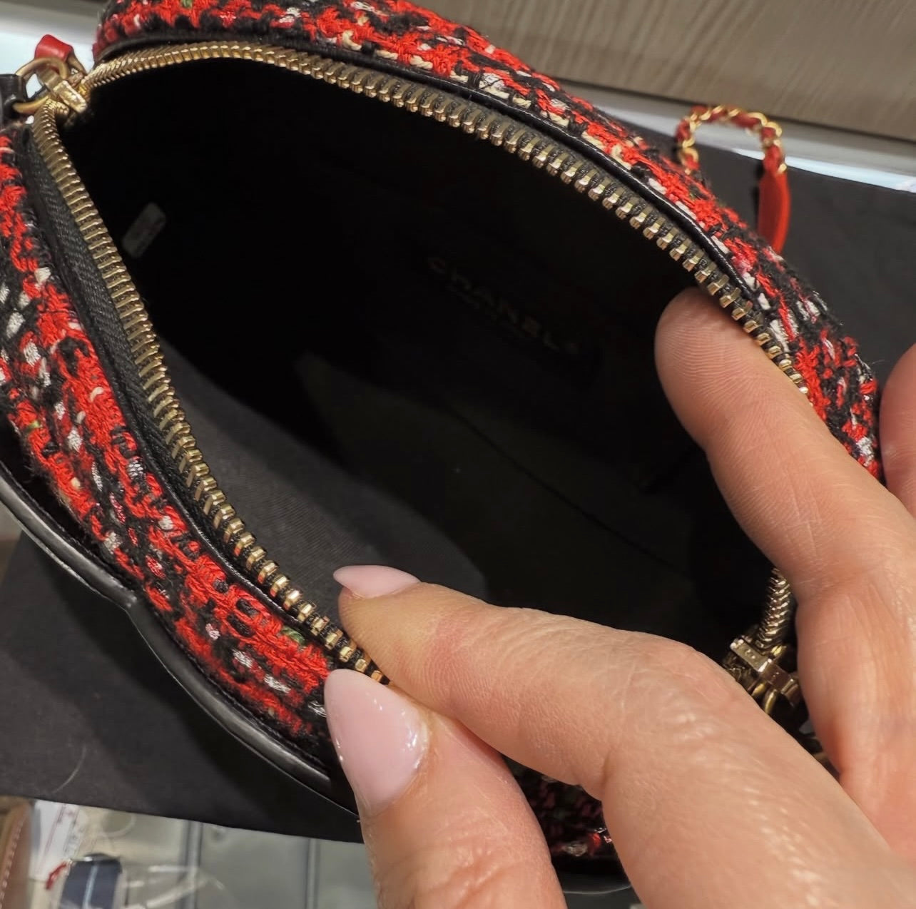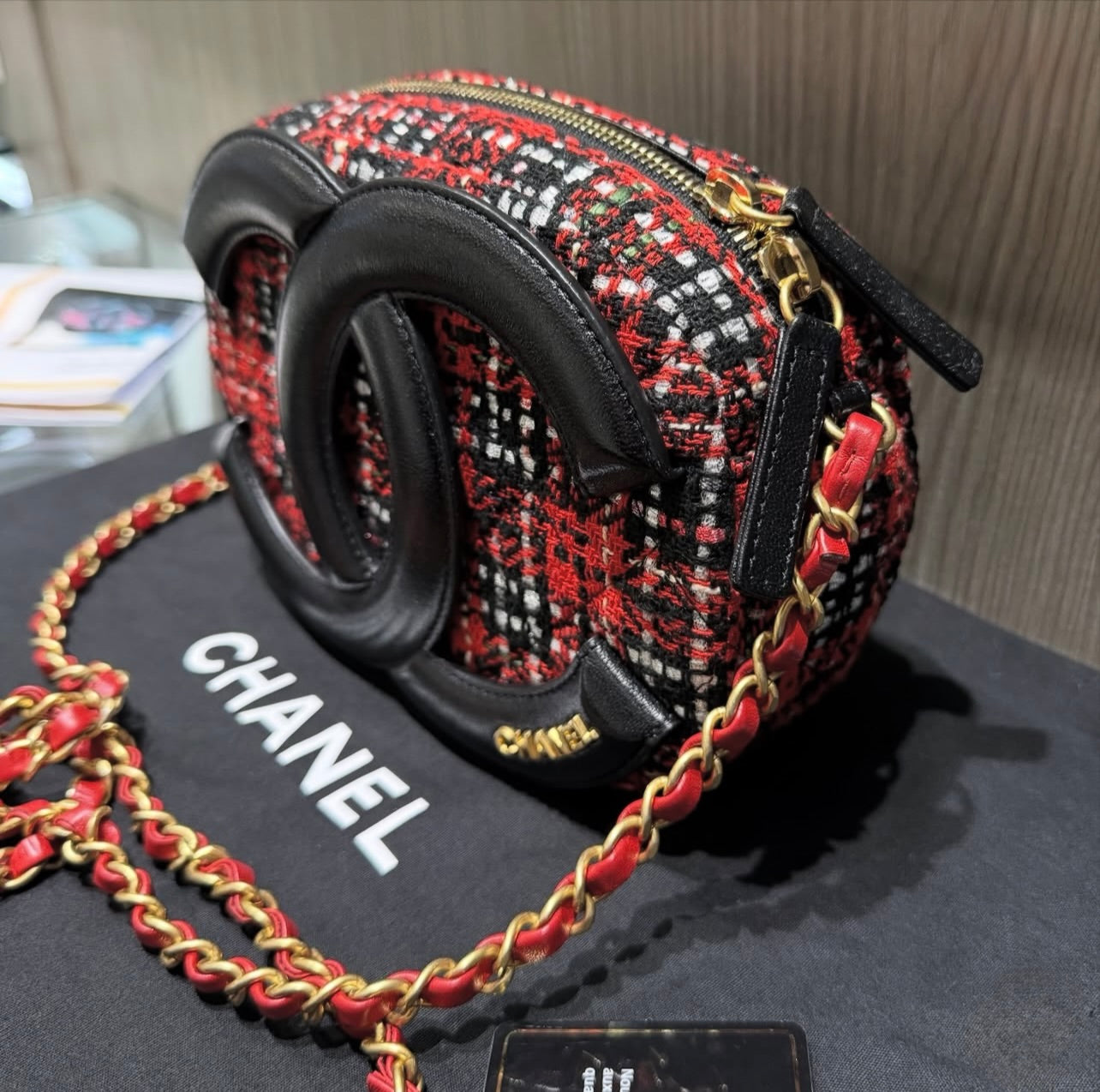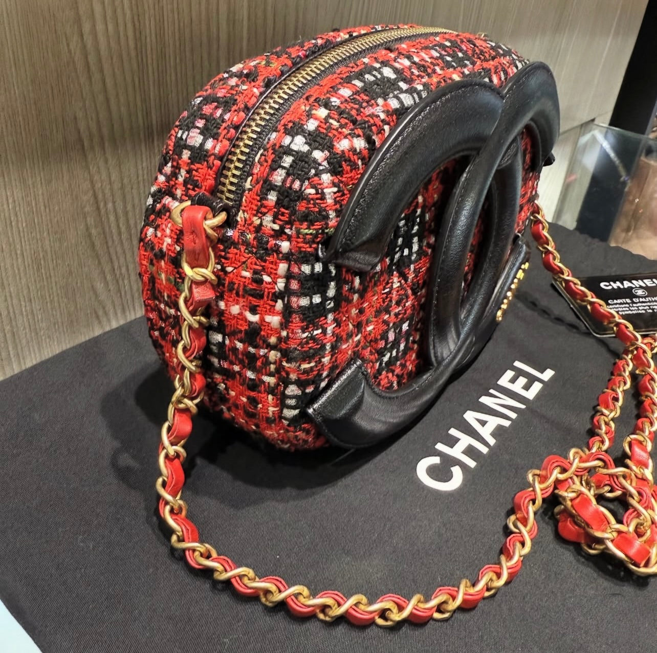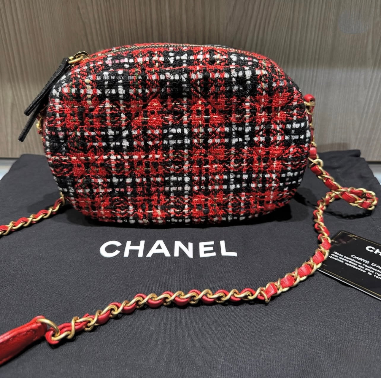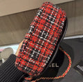 Pre-Owned Chanel Oval Red Tweed Midnight Camera Bag Minaudière