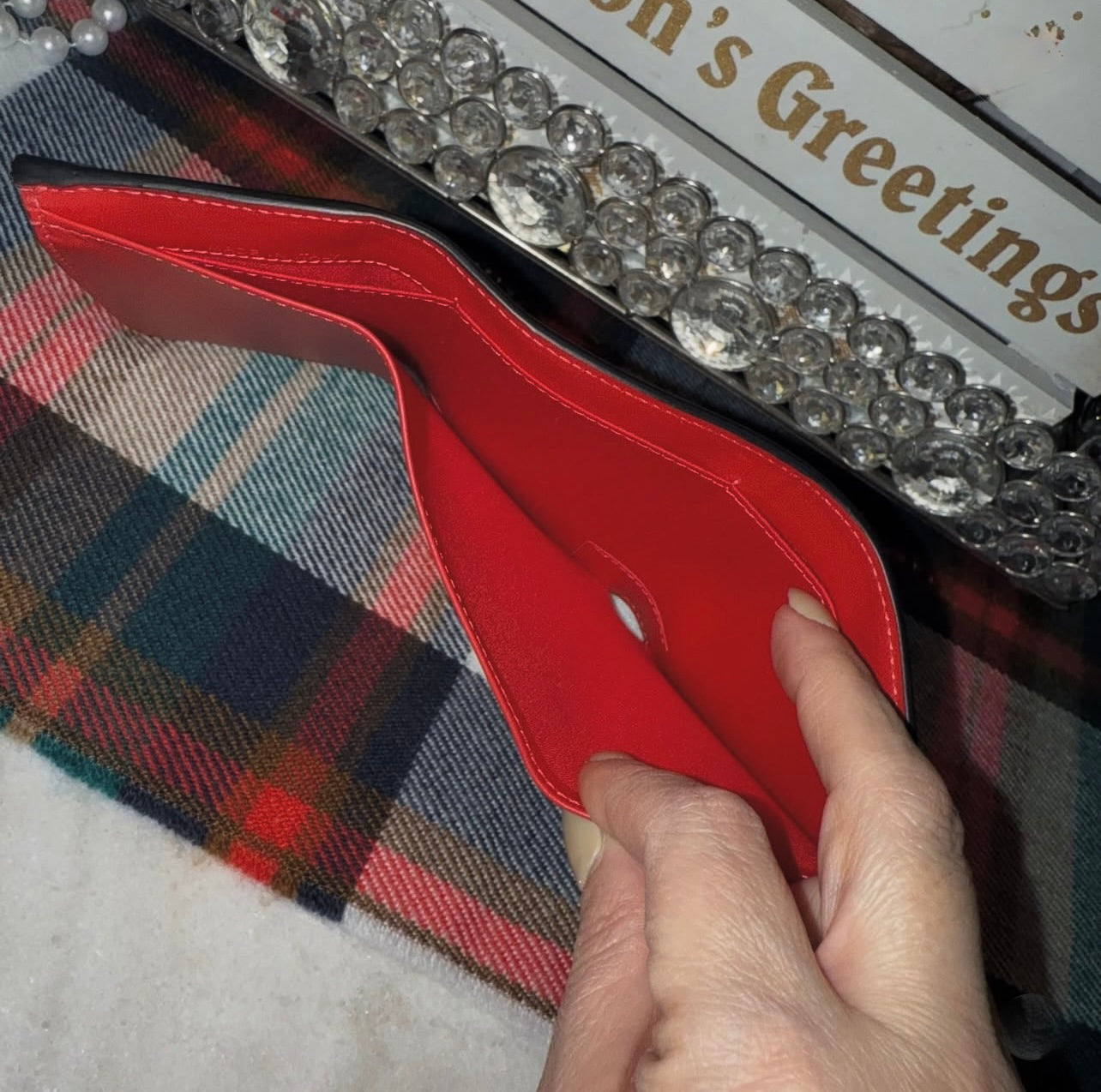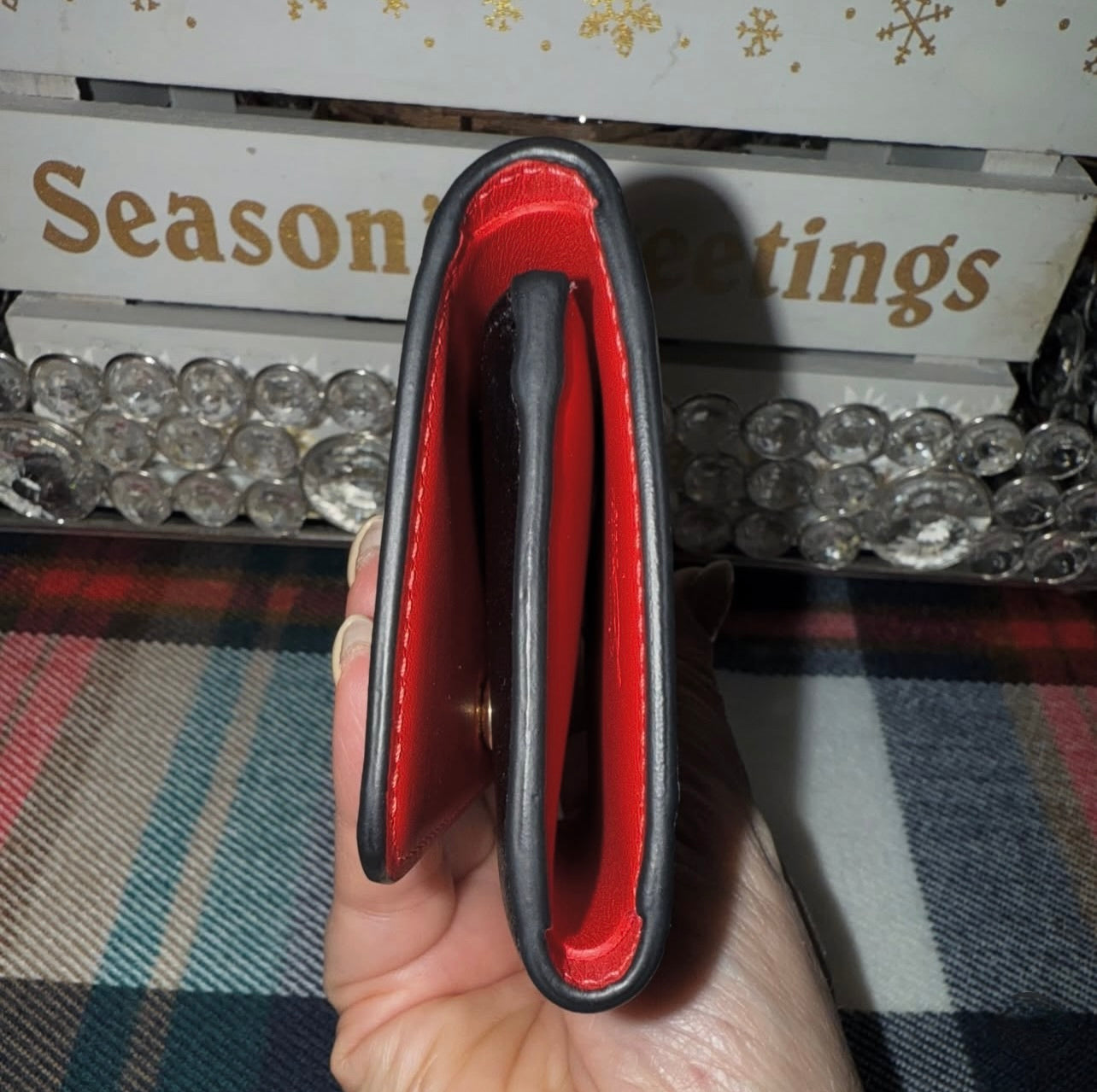 This Christian Louboutin Hawaii with Love Compact Wallet is crafted in black printed leather and remains in excellent condition, showing only minor signs of gentle handling such as light creasing. The piece features gold-tone hardware, nylon lining, and a secure snap closure. Comes complete with a certificate of authenticity.