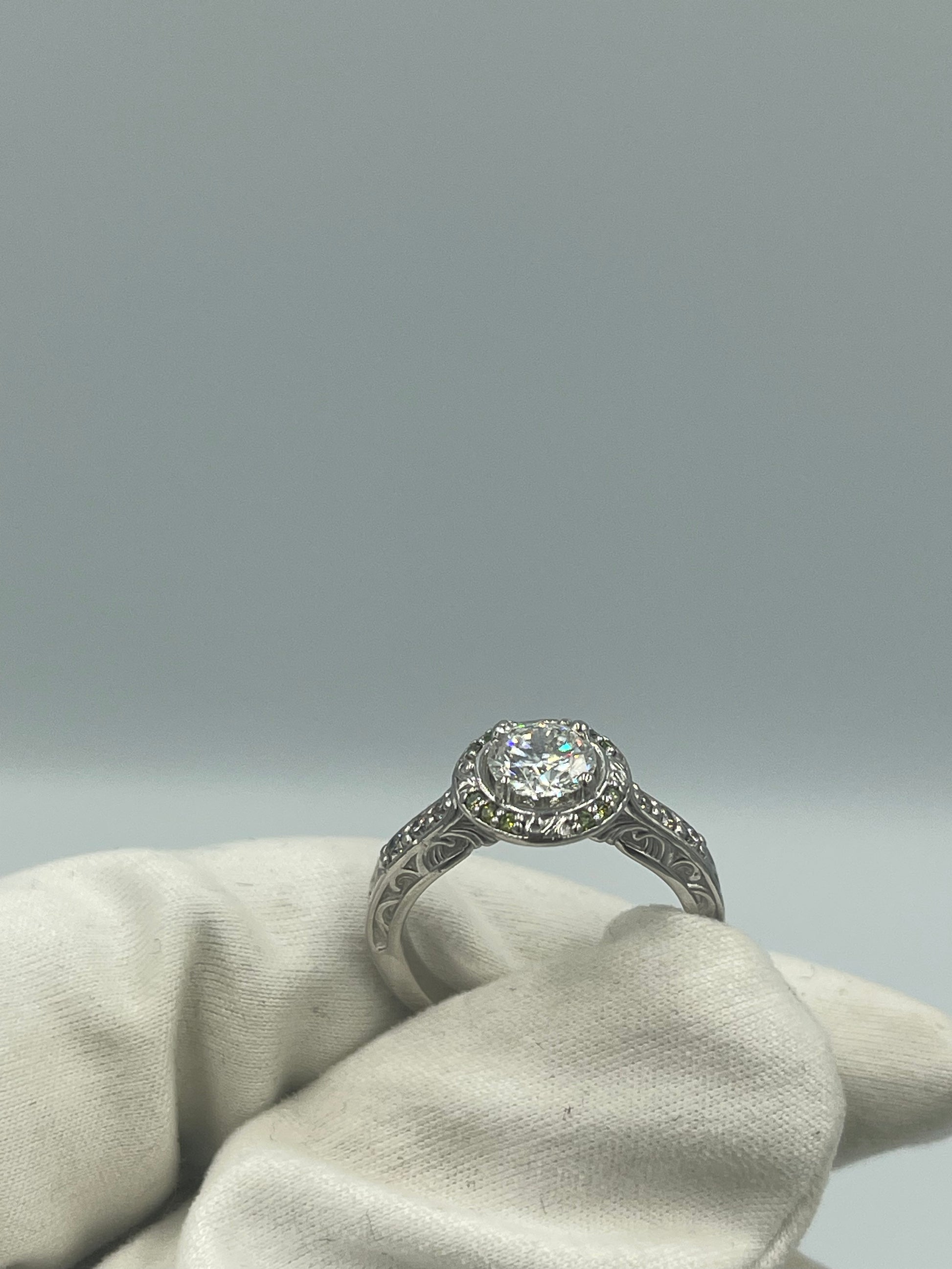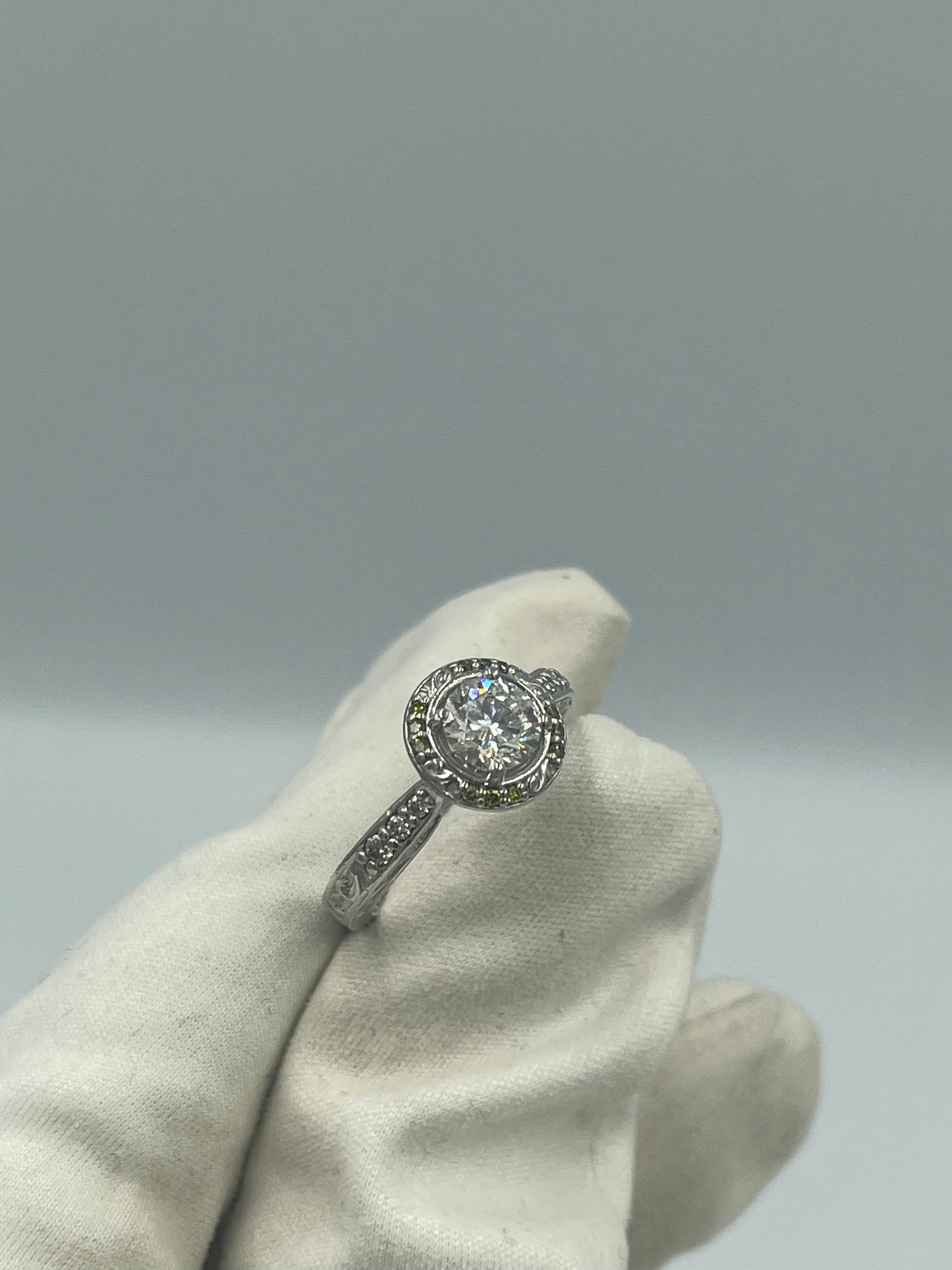 Pre-owned Platinum Round Diamond center stone 0.72 carat engagement ring size 5