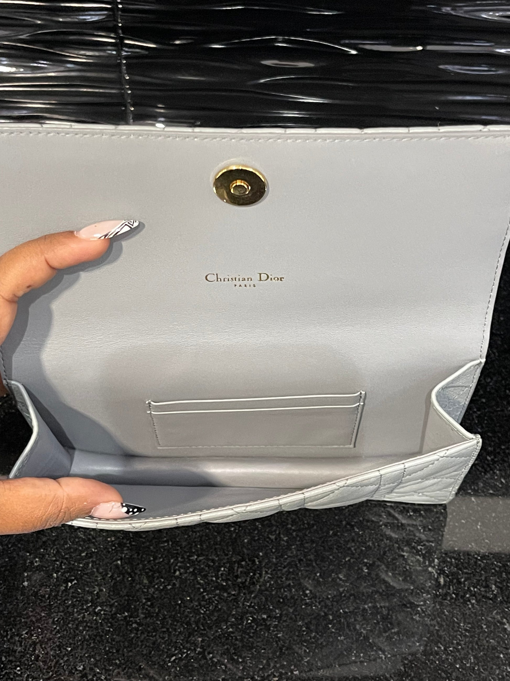 Chic, versatile, and unmistakably Dior — this Christian Dior Caro Belt Bag in Cloud Blue supple calfskin leather beautifully combines elegance with modern practicality. Finely crafted in the house’s iconic Cannage quilting, this piece embodies timeless sophistication with a contemporary edge.