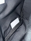 This bag remains in very good condition, showing gentle overall use. There is a small pink mark on the exterior canvas and minor interior wear, but the structure and overall presentation remain clean and stylish. The bag opens to a spacious black fabric interior and features an adjustable belt strap for waist or crossbody wear.