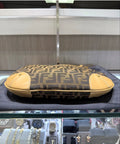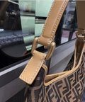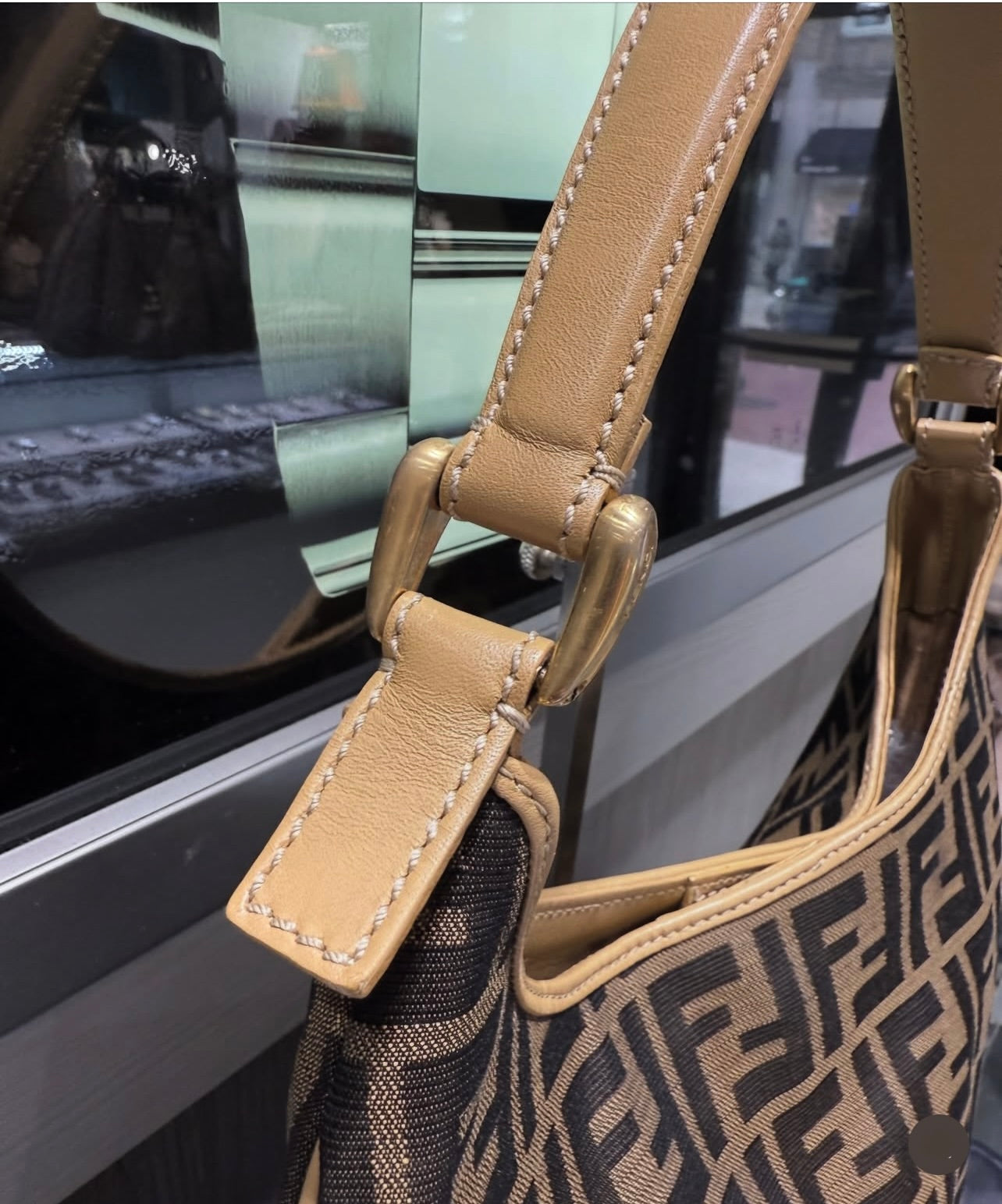 This timeless Fendi Borsa Hobo showcases the brand’s iconic Zucca monogram canvas in rich tobacco tones, beautifully accented with natural tan leather details and gold-tone hardware. The softly structured silhouette and classic hobo shape make it an effortless everyday bag with unmistakable Fendi heritage.