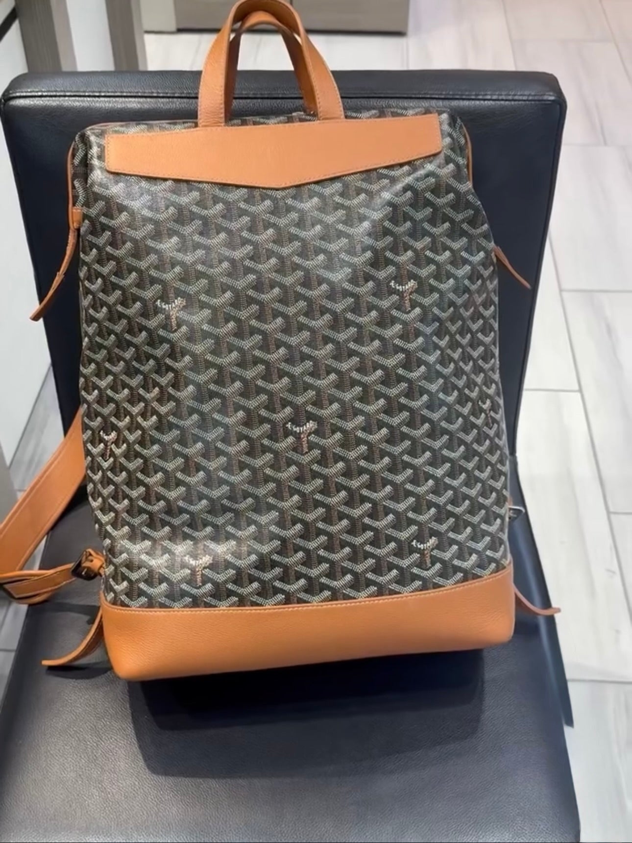 Pre-owned Goyard Cisalpin Backpack in Black Goyardine Tan trim (2024)