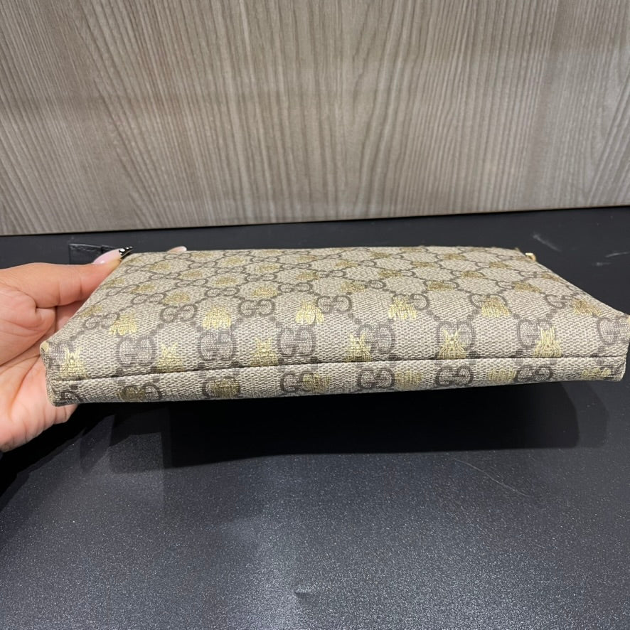 Pre-owned Gucci GG Supreme Bee Wallet on Chain