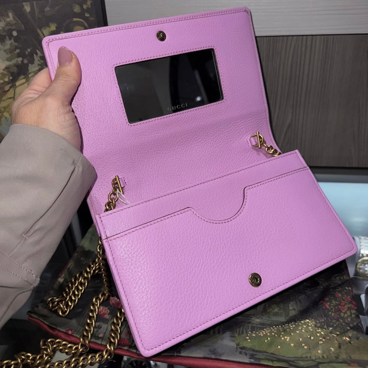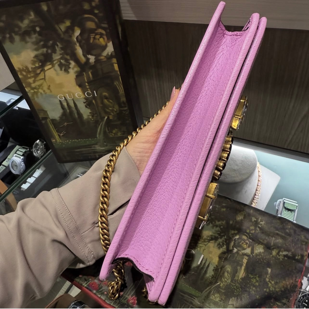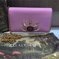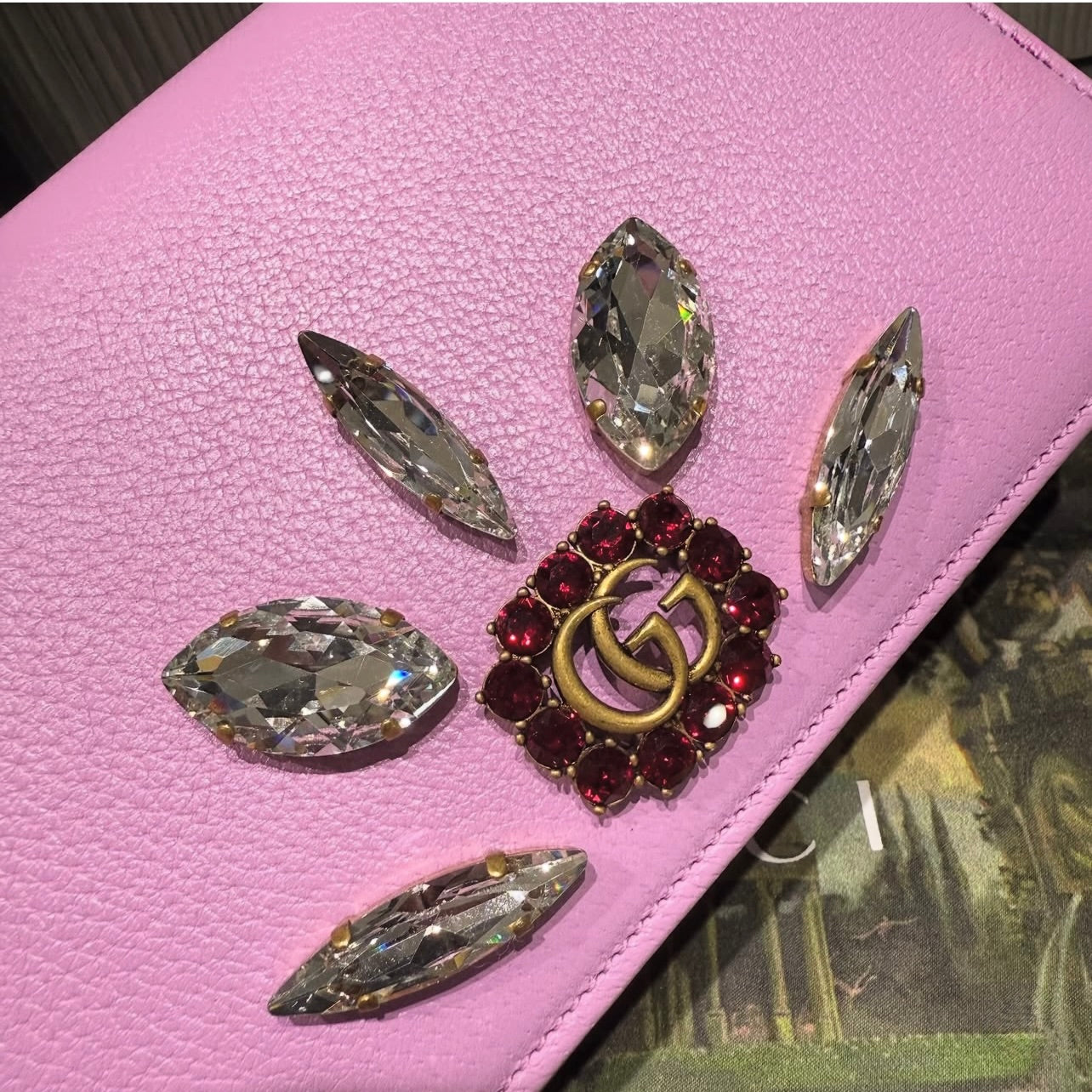 Pre-owned Gucci Pink Double G Marmont Marquise Ruby Stones Wallet on Chain