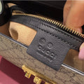 This Gucci GG Supreme Padlock Bag is a timeless and structured silhouette crafted from classic GG Supreme coated canvas paired with camel brown and black leather trim. The front flap is secured with Gucci’s signature push-lock closure, complete with 2 keys and clochette, adding both charm and function. A flat leather top handle and a long strap offer versatile styling, while the suede-lined interior provides practical organization with zip and slip pockets.