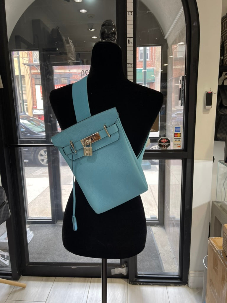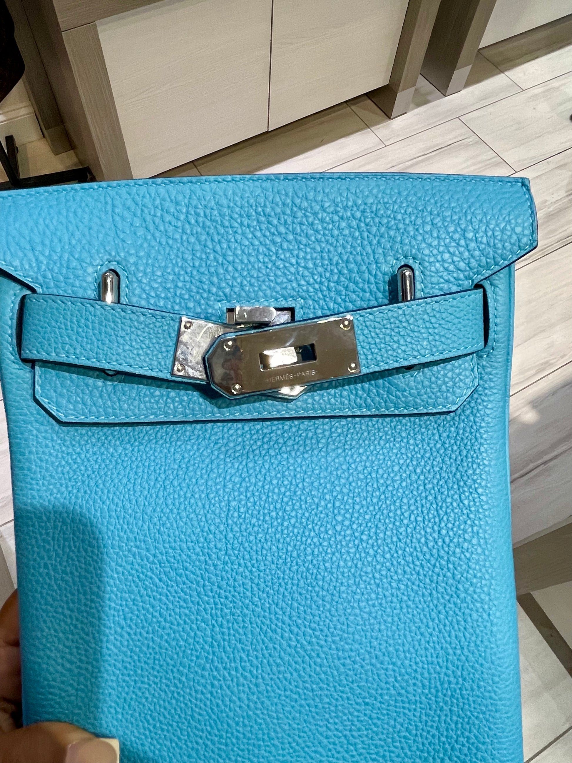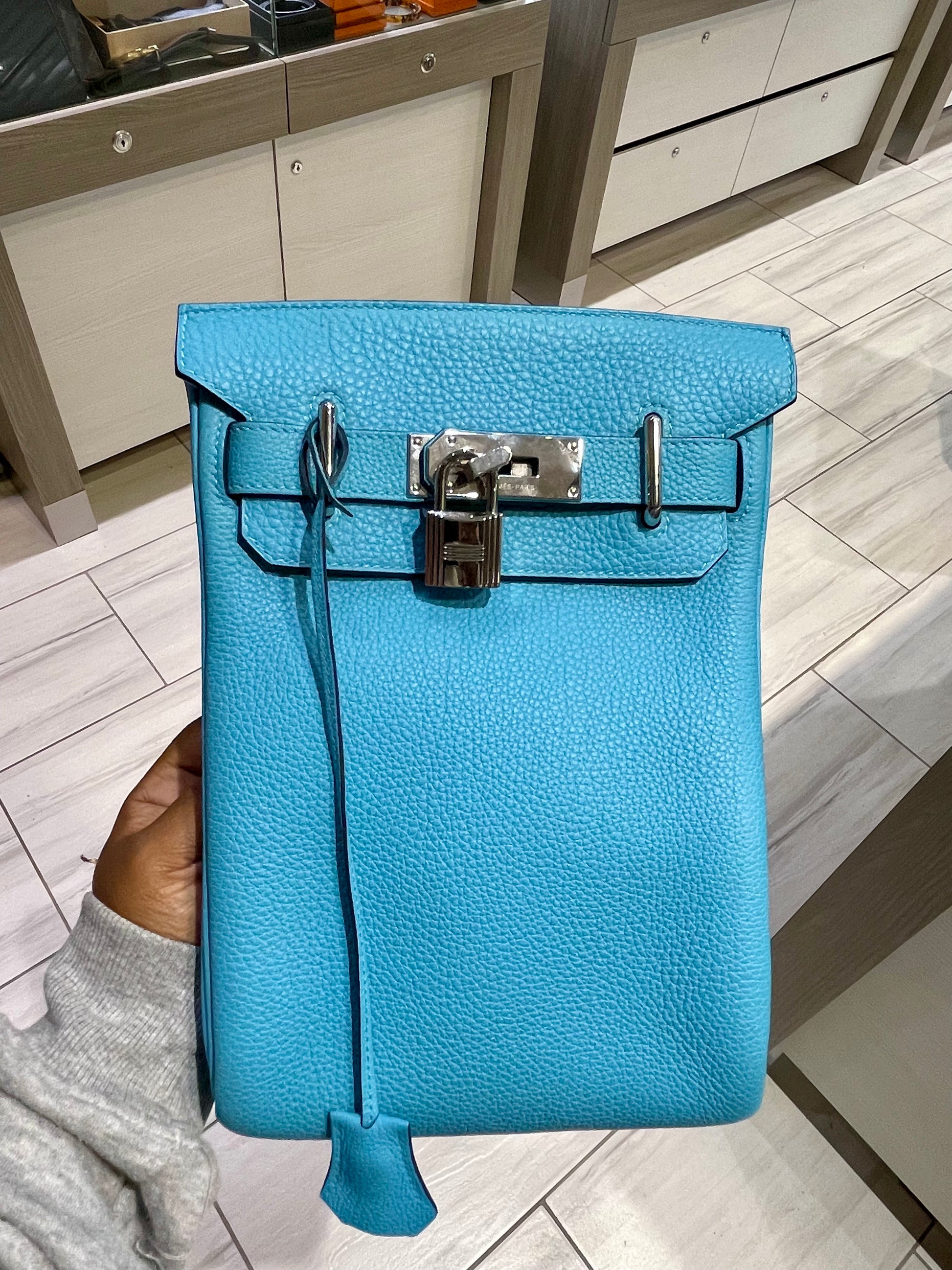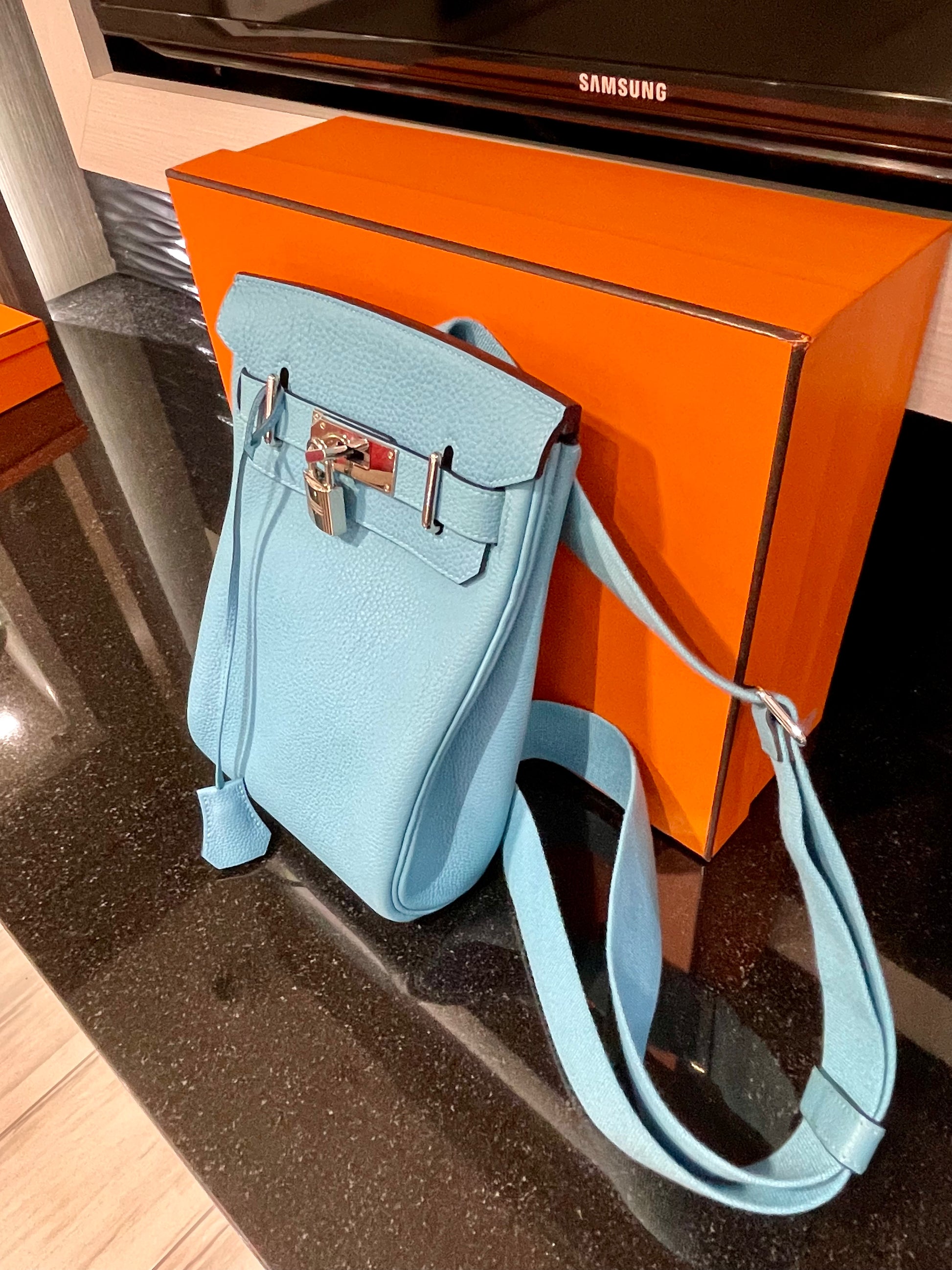 A truly exceptional Hermès creation, the HAC À Dos PM offers a sleek, structured silhouette and effortless versatility — equally suited for refined travel, daily wear, or discerning collectors seeking a rare shade of blue from the house’s celebrated color palette.
