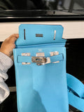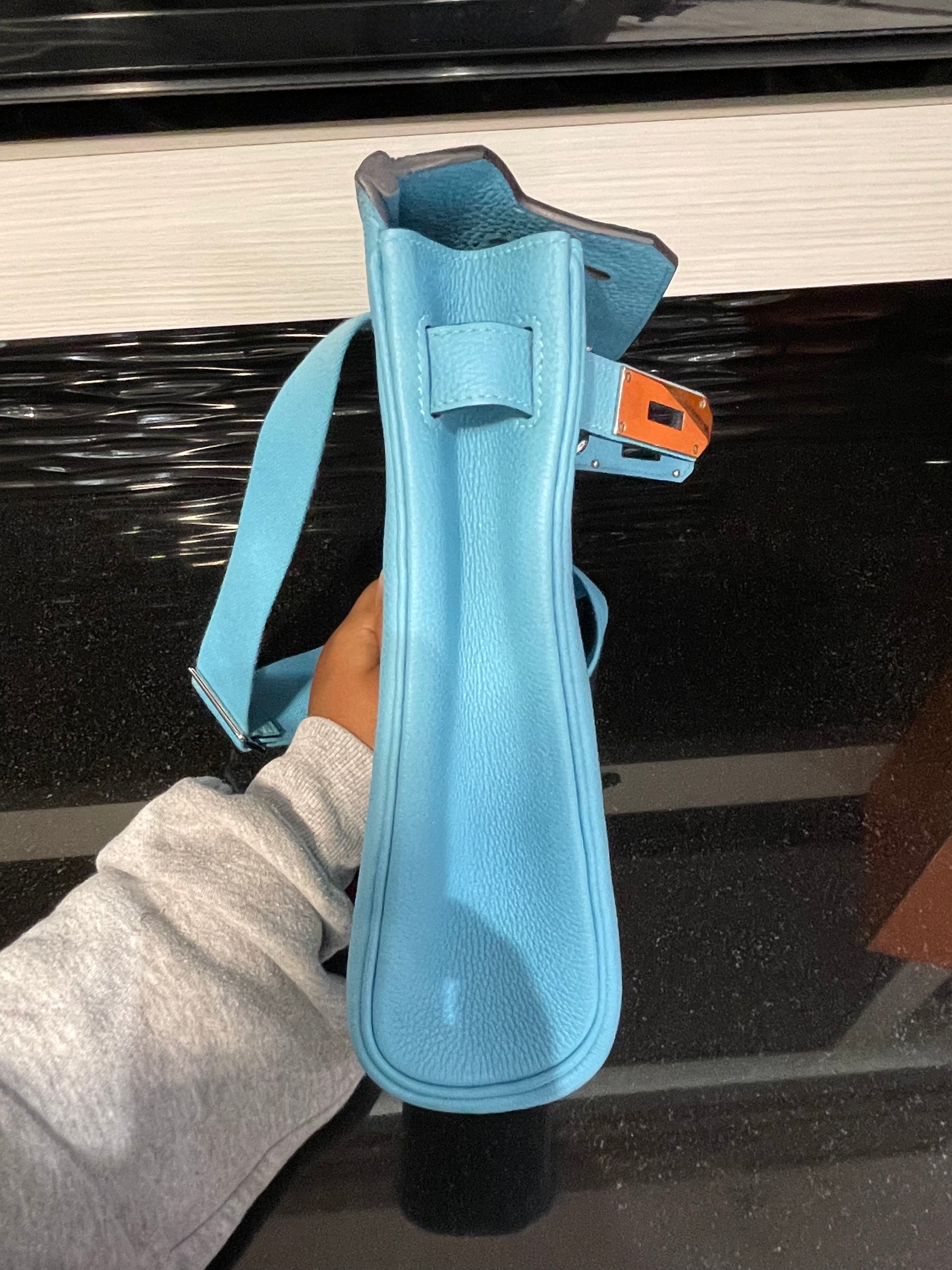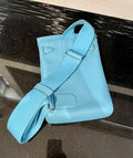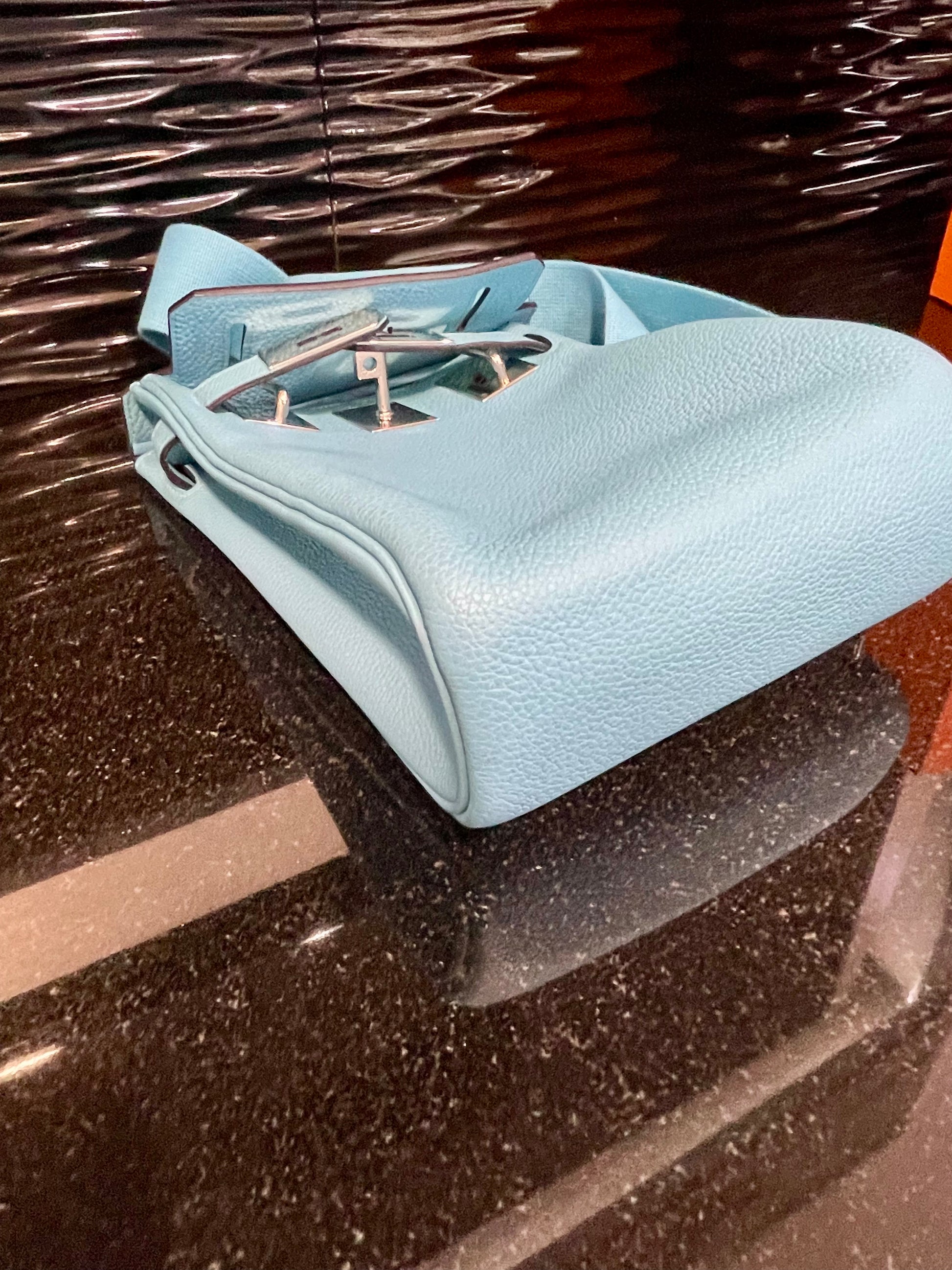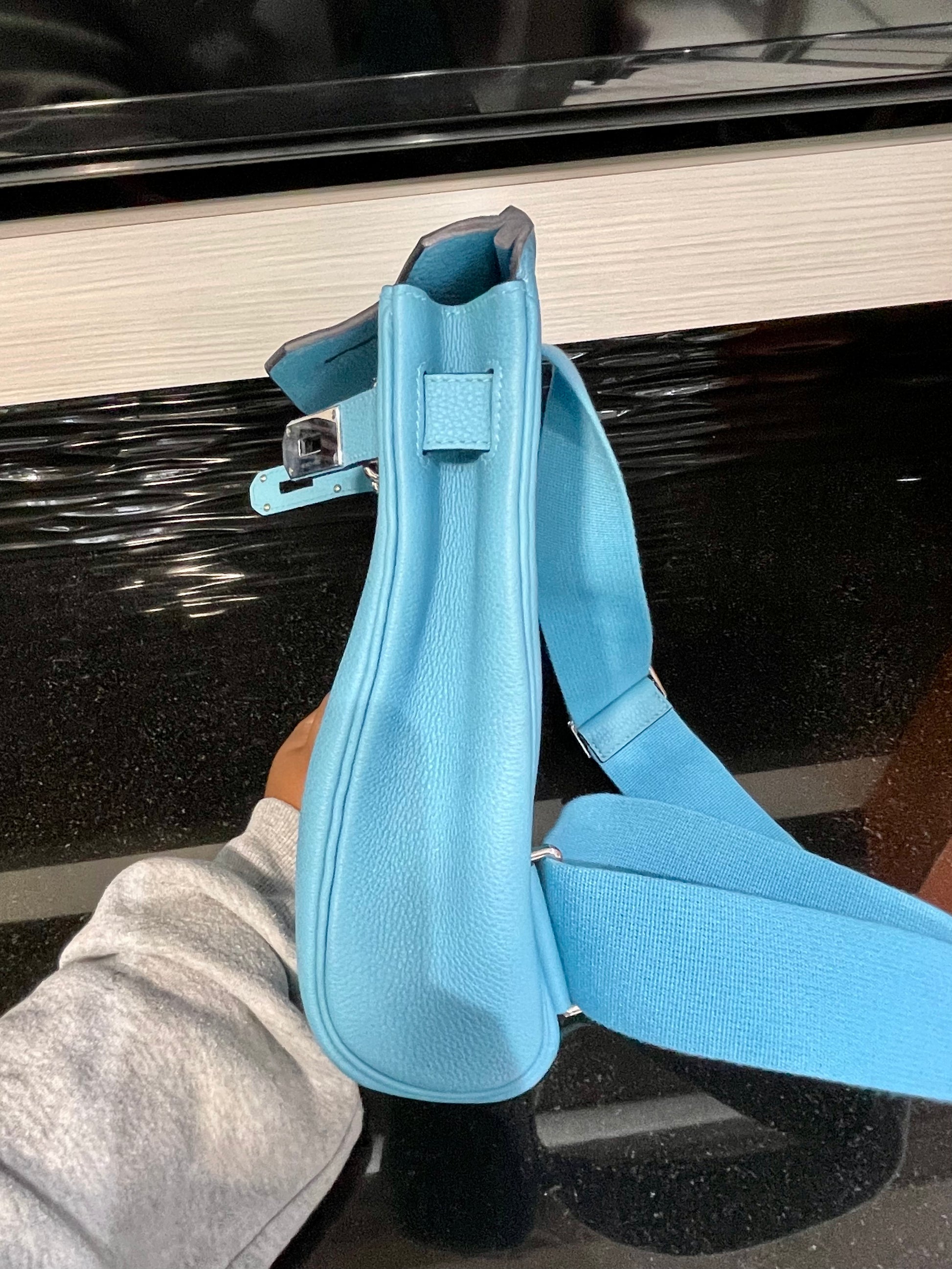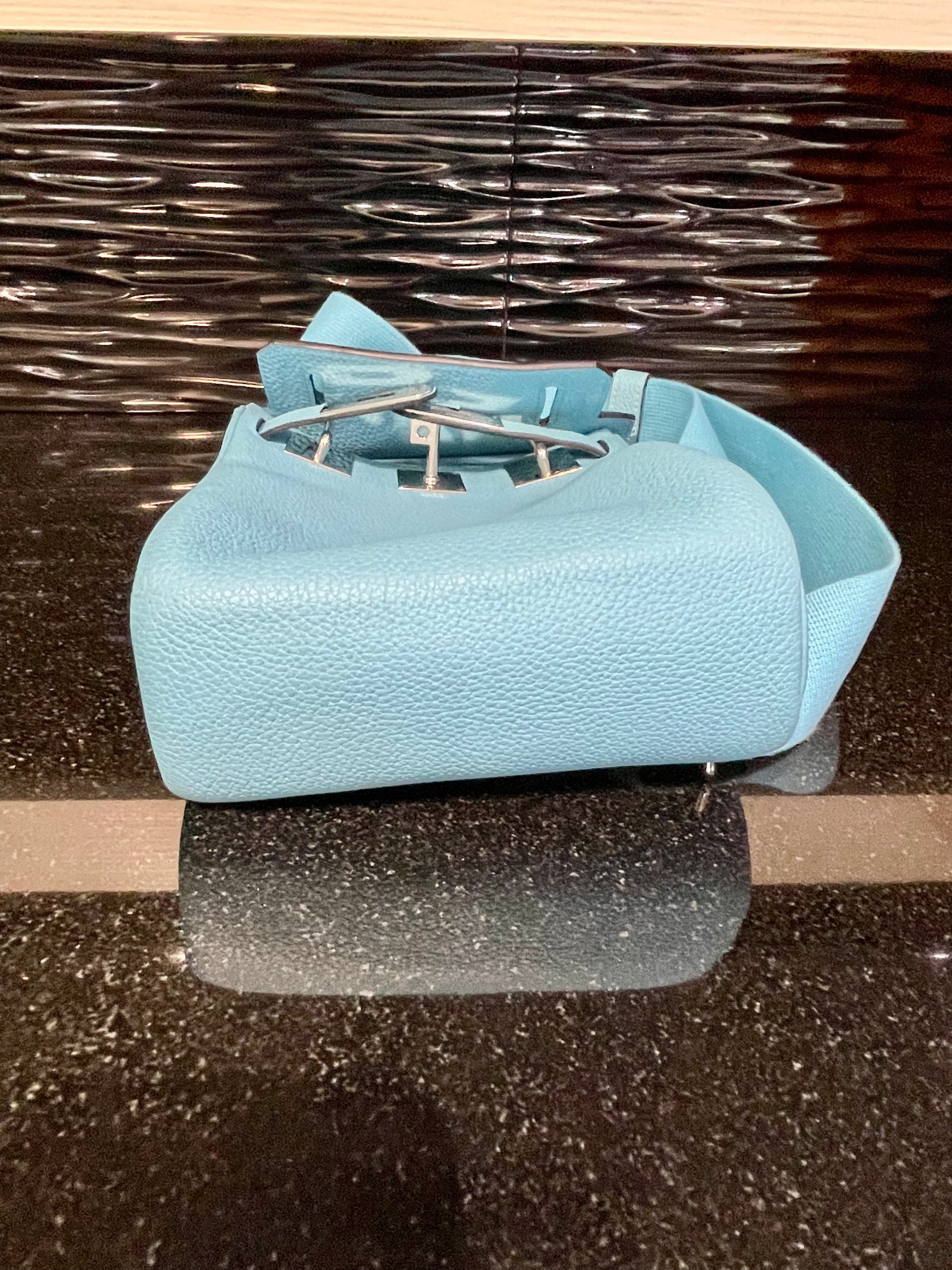 A truly exceptional Hermès creation, the HAC À Dos PM offers a sleek, structured silhouette and effortless versatility — equally suited for refined travel, daily wear, or discerning collectors seeking a rare shade of blue from the house’s celebrated color palette.