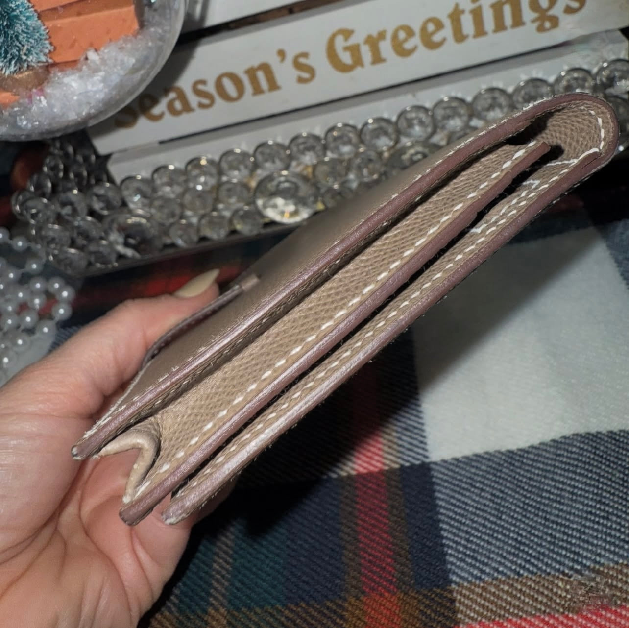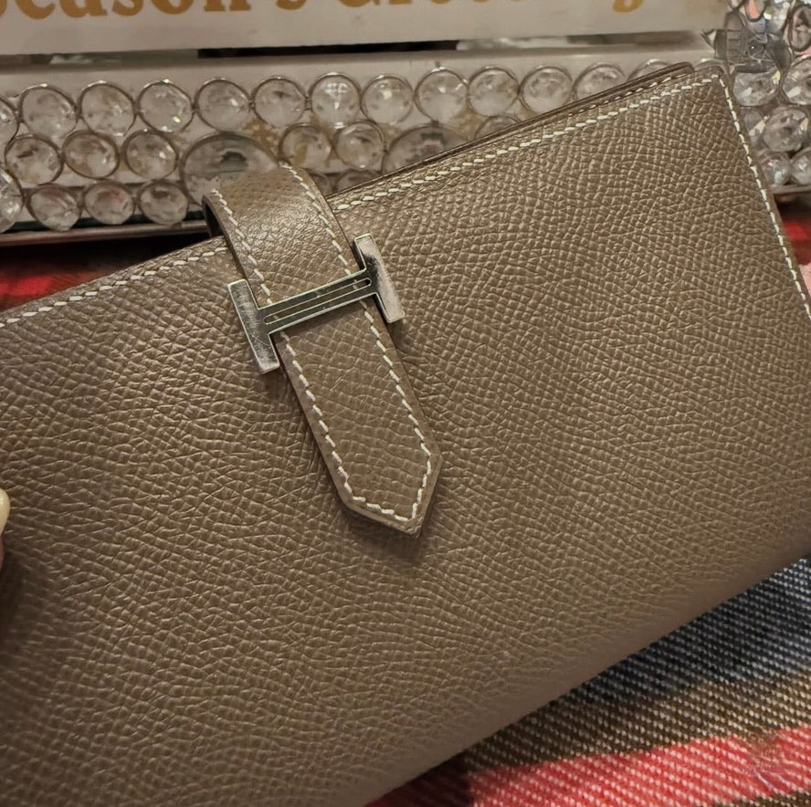 Pre-owned Hermes Bearn Wallet in Etoupe Epsom Calfskin (2012)
