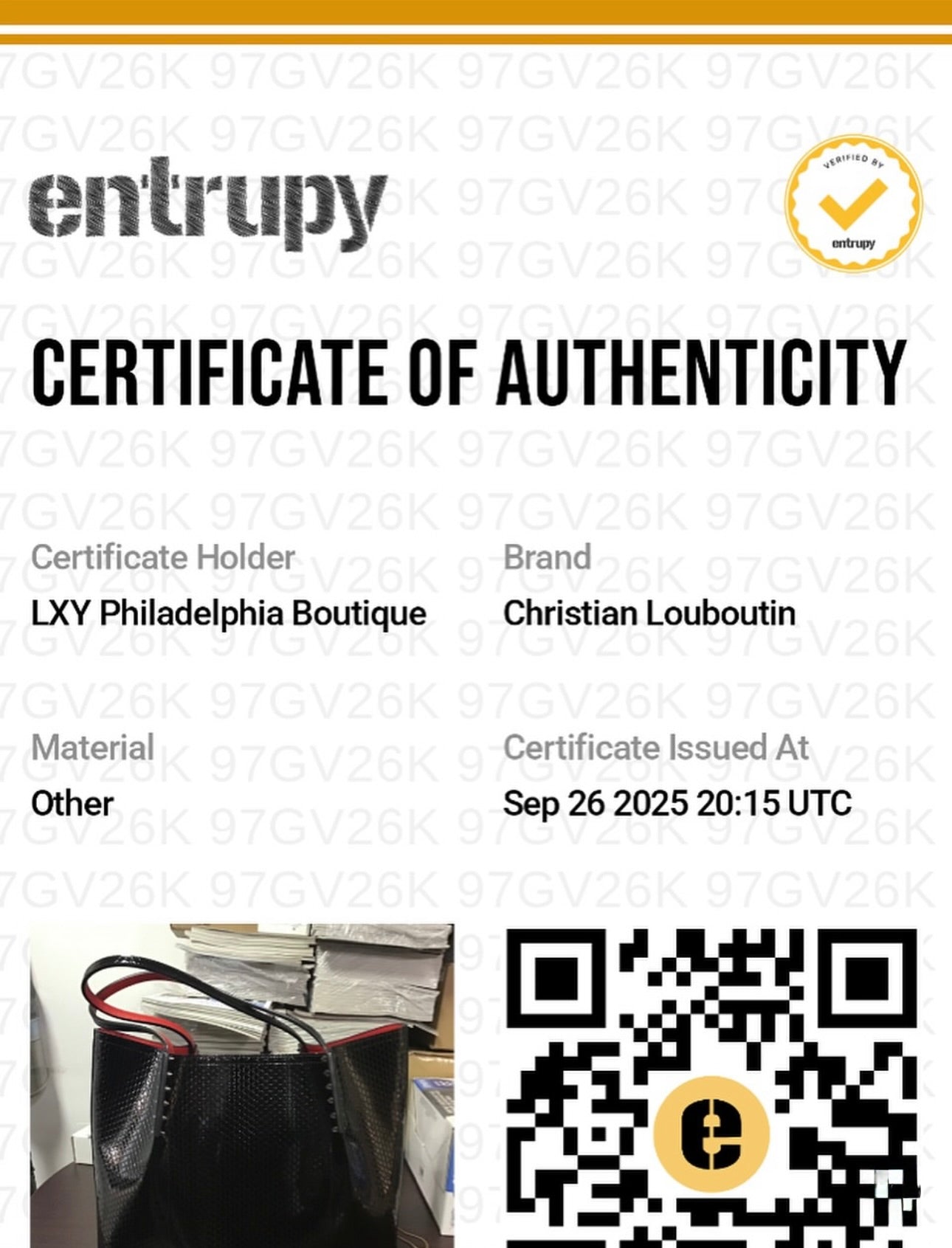 Includes: Dustbag, tag, booklet, and certificate of authenticity from Entrupy.