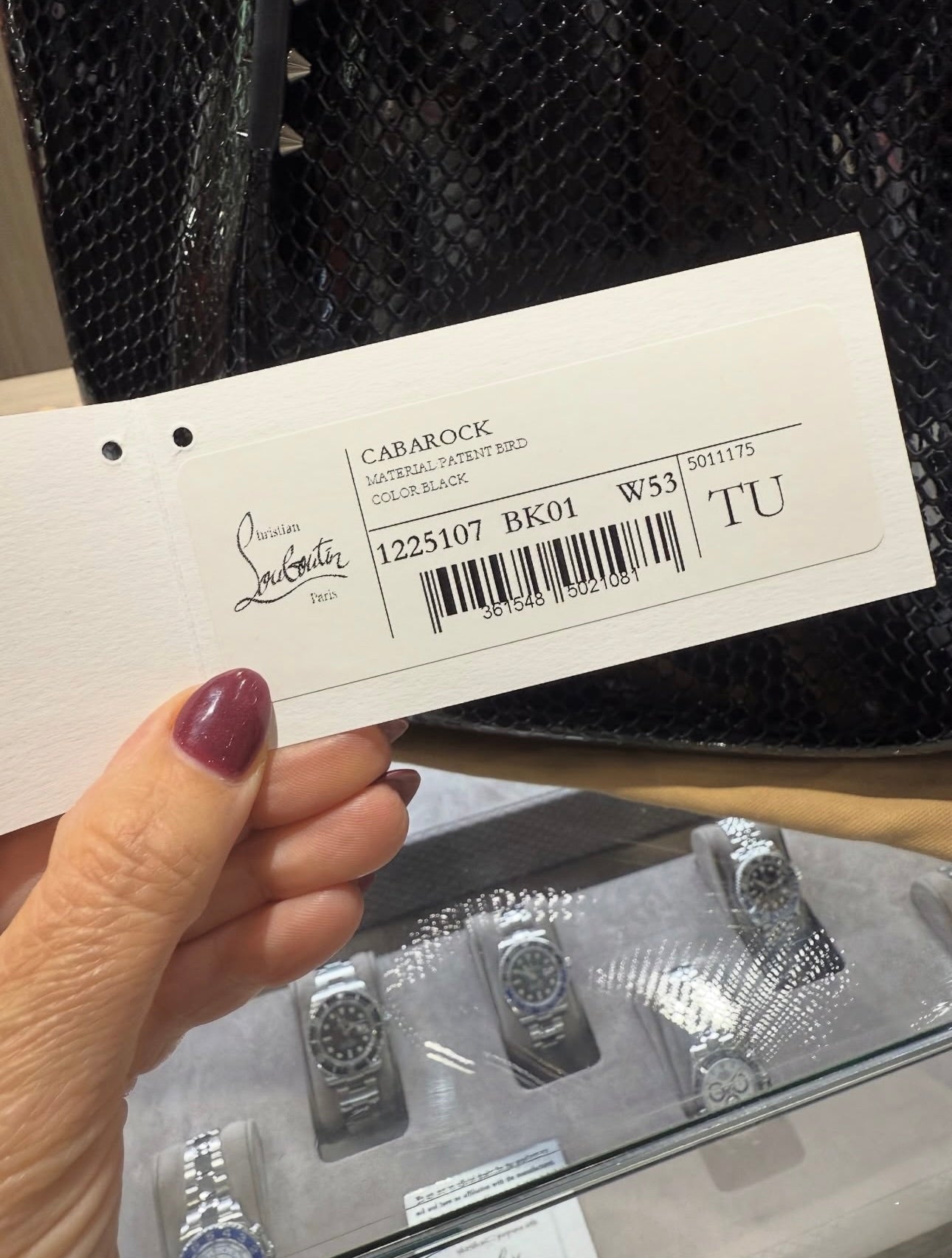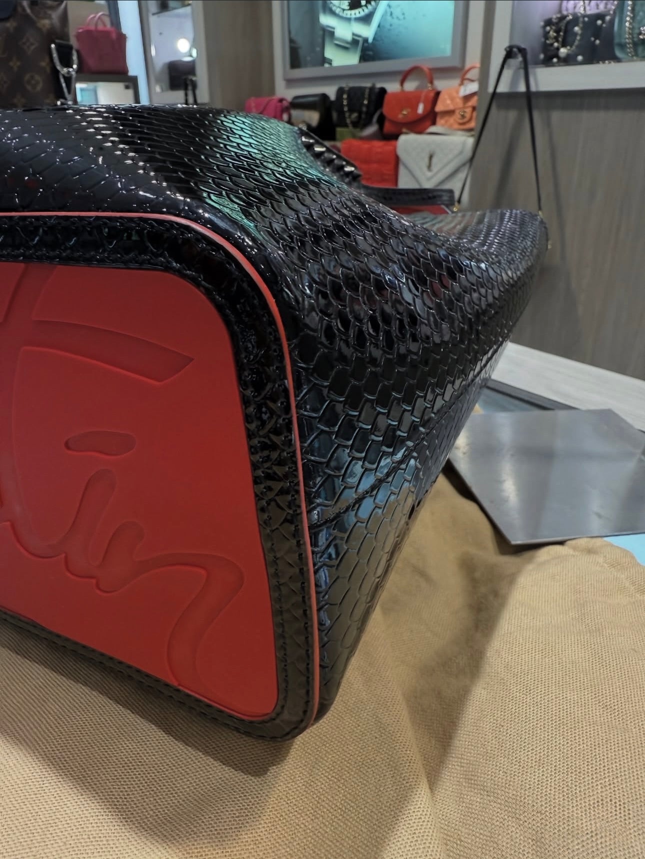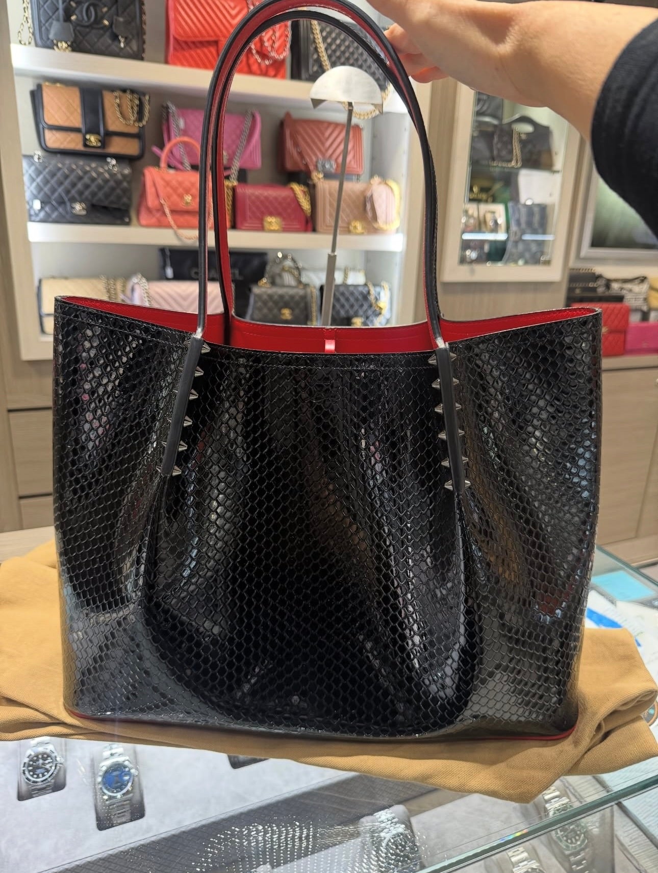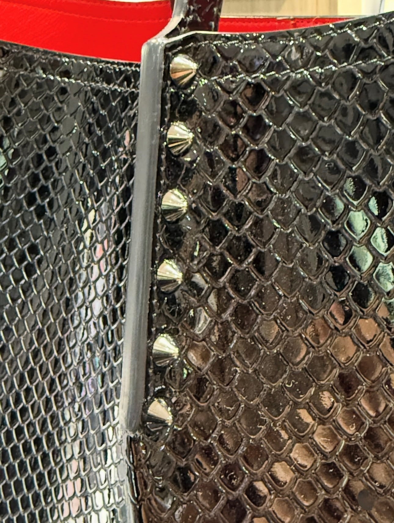 This stunning Christian Louboutin Cabarock Large Tote is a bold yet sophisticated statement piece, crafted in Italy from luxurious crocodile-embossed leather. The bag is embellished with the brand’s signature spiked trim at the handles, giving it a distinctive edge, while the sneaker-inspired red bottom offers an unmistakable nod to Louboutin’s iconic aesthetic.