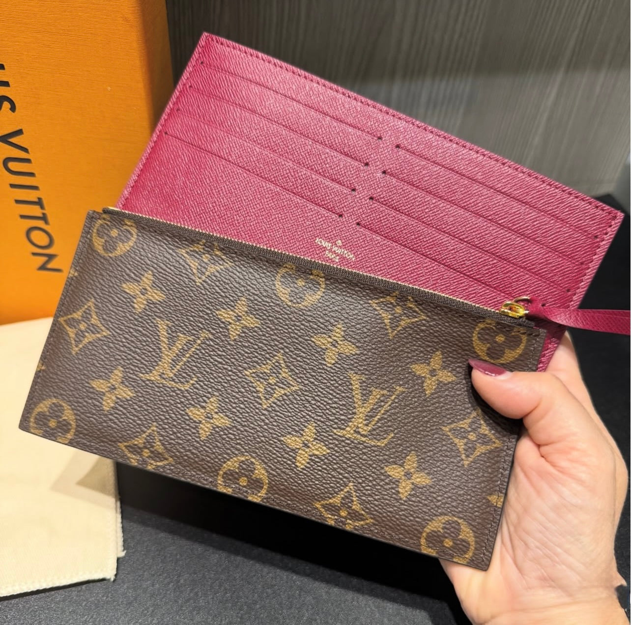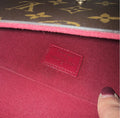 This authentic Louis Vuitton Pochette Félicie in iconic Monogram canvas is a timeless and versatile accessory that transitions seamlessly from day to night. Lined in fuchsia microfiber, the design is as functional as it is elegant. The flap pouch opens to a spacious compartment and includes two removable inserts — a zipped pouch and a flat pocket with eight card slots — offering flexible organization.