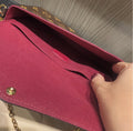 The removable gold-tone chain strap allows for both shoulder and crossbody styling, making it perfect for any occasion.