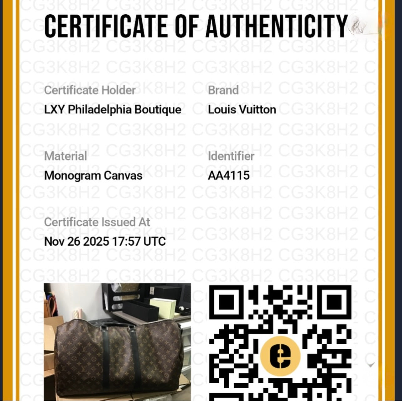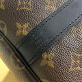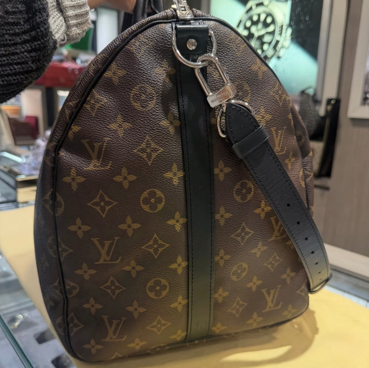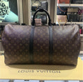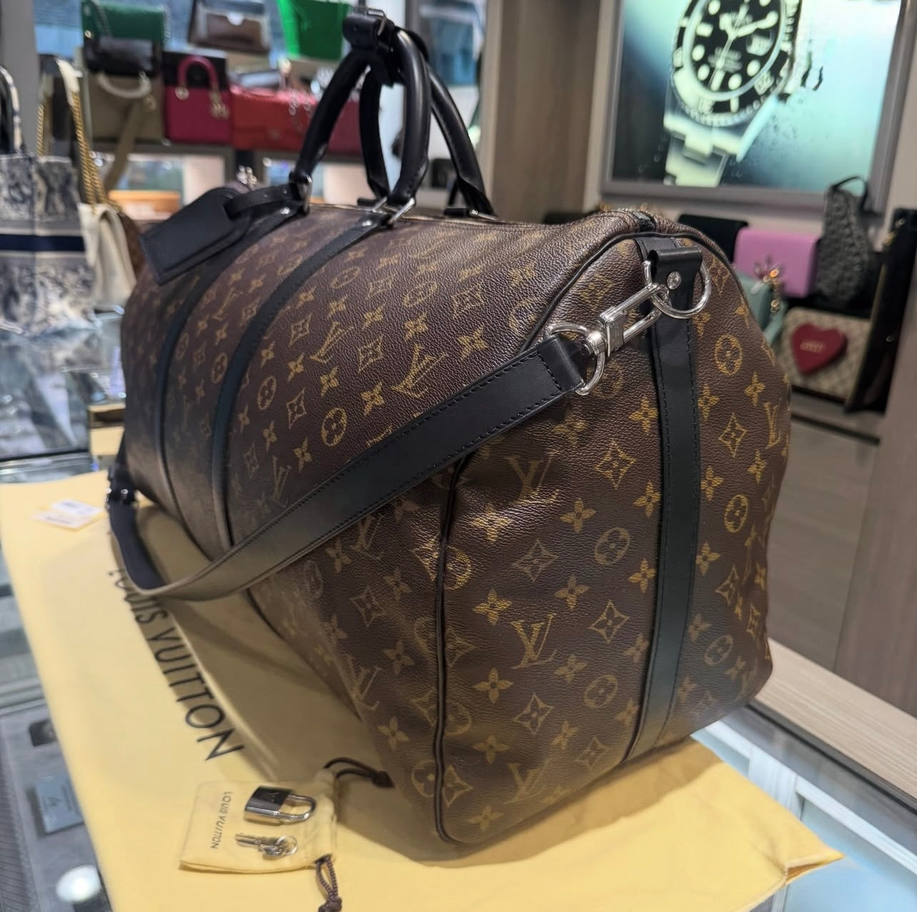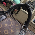 Crafted from Monogram canvas with sleek black leather trim, this Keepall 55 is spacious, durable, and designed for refined travel. A double-zip closure with padlock provides secure packing, while the adjustable strap offers comfortable carry.