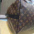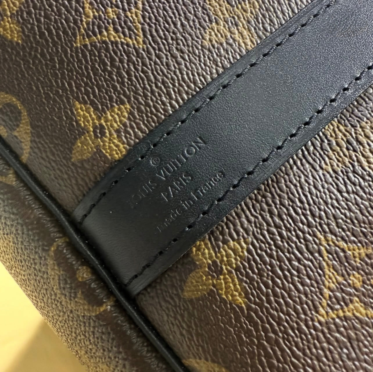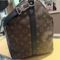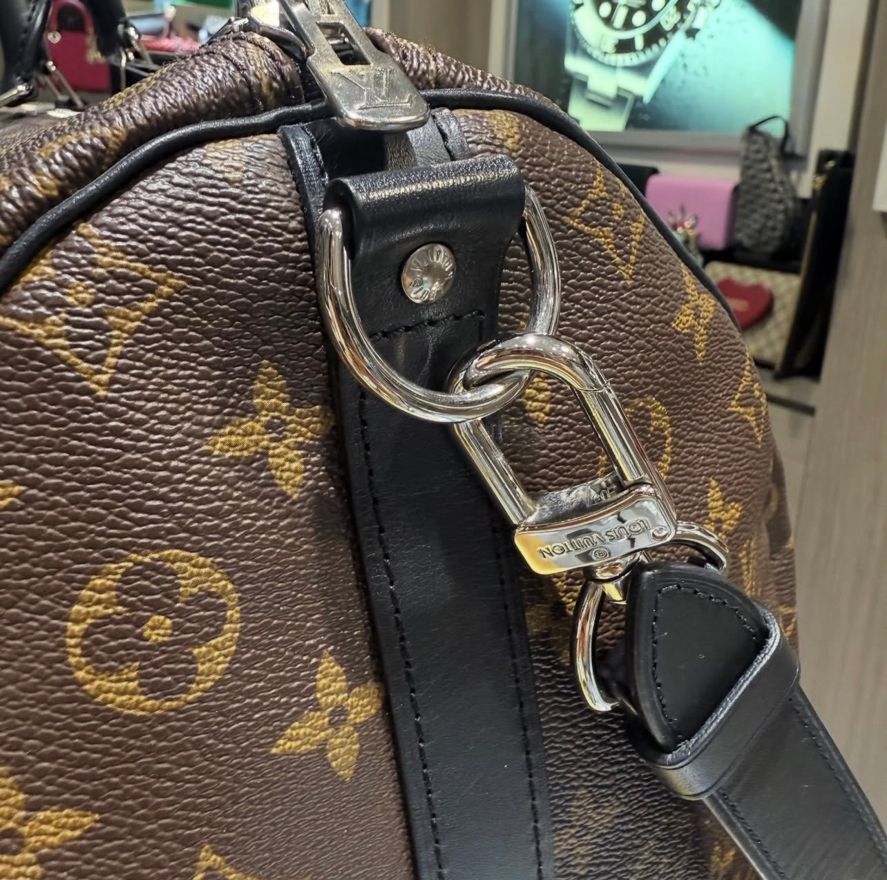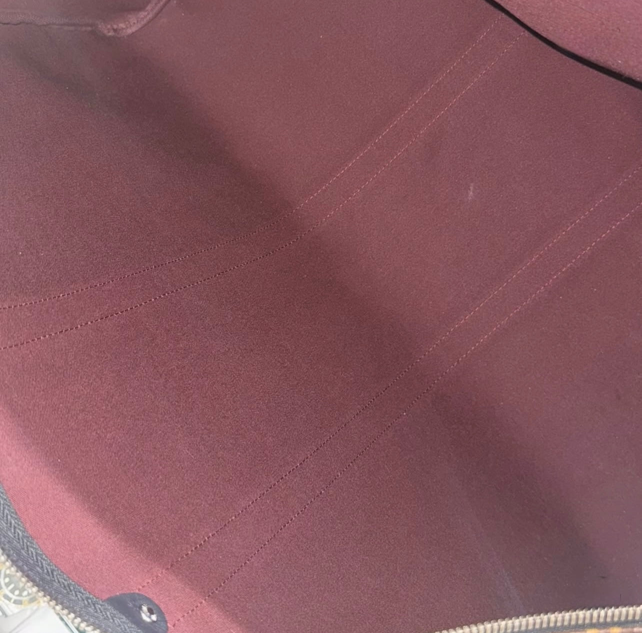 This pre-owned Louis Vuitton Keepall 55 Bandoulière in Monogram Macassar (2015) is in excellent, almost like new condition, having been storage kept with only minimal signs of handling such as light artificial scratches on the hardware and lock/key. The canvas, trim, and interior remain clean and well maintained.