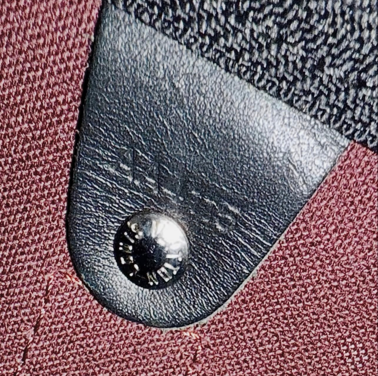 Features: Double zip closure, removable leather ID holder, padlock, cabin size