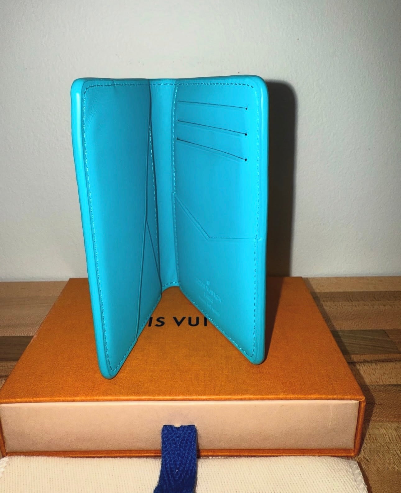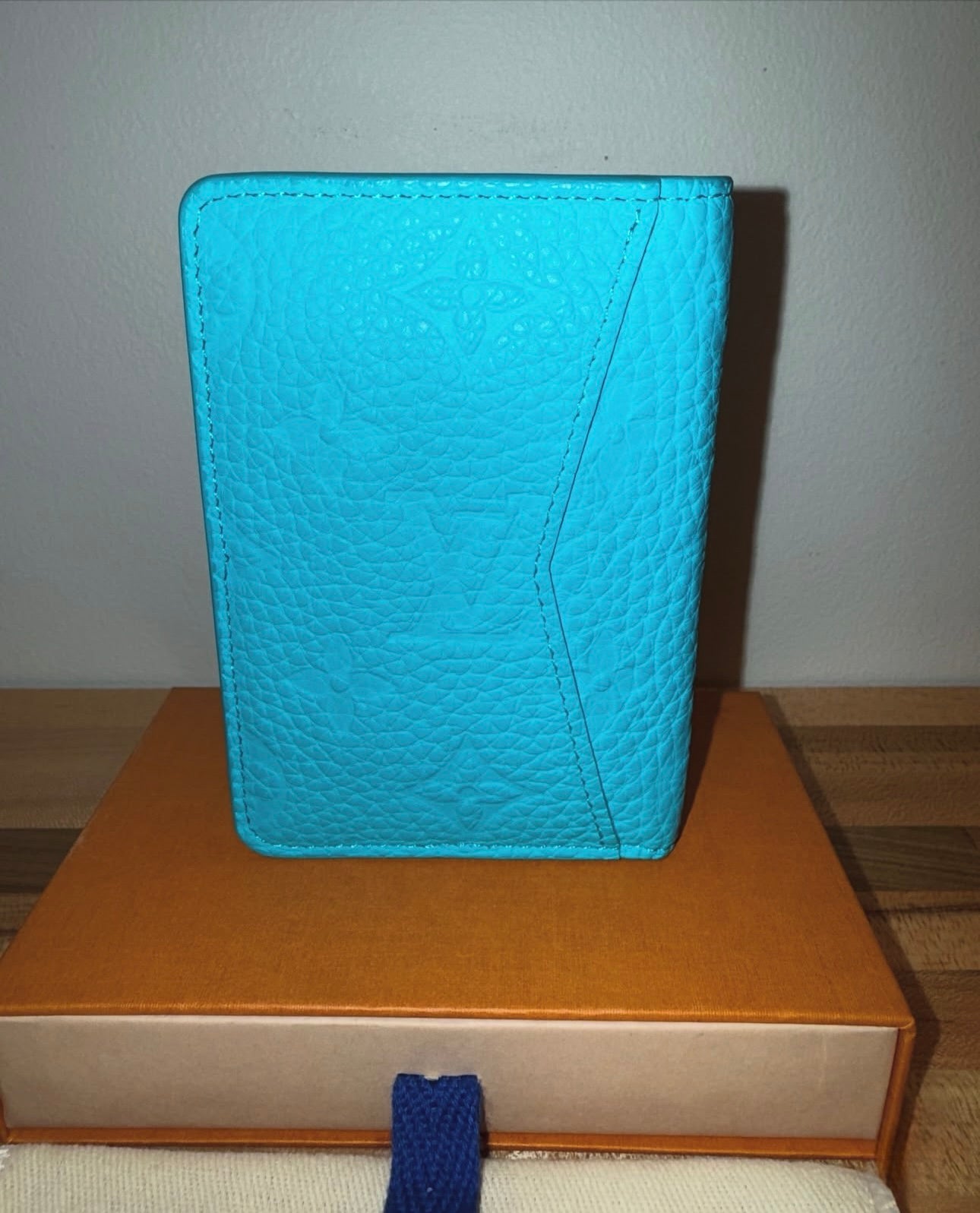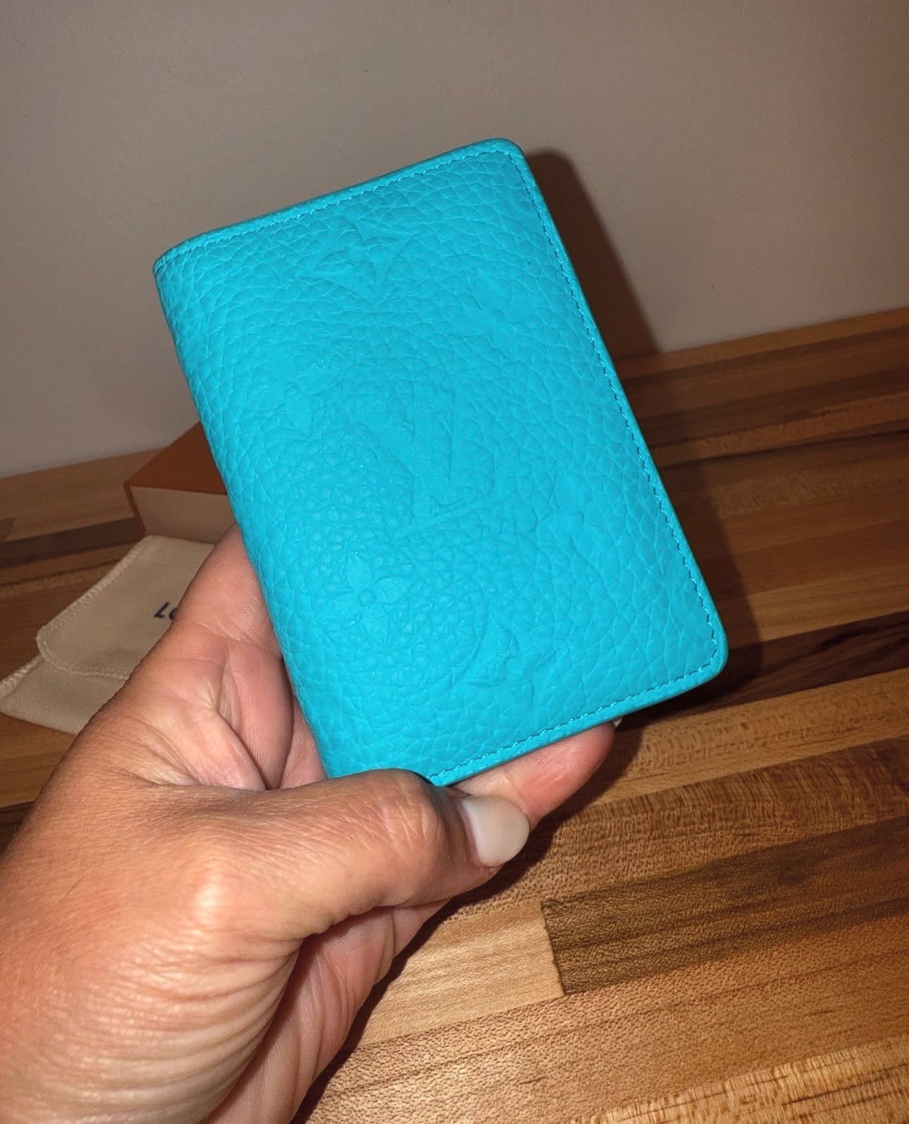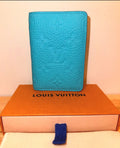 Add a pop of color to your essentials with this pre-owned Louis Vuitton Pocket Organizer, crafted in luxurious grained Taurillon cowhide leather embossed with the iconic Monogram motif. The bold turquoise hue gives this compact wallet a fresh, youthful edge while maintaining the timeless elegance and superior craftsmanship Louis Vuitton is known for.