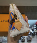 The Louis Vuitton Flight Mode Cosmetic Pouch PM is a playful yet practical accessory, crafted in Monogram Dune coated canvas and decorated with vintage-inspired travel sticker prints. The sand-toned canvas brings a modern twist to the House’s heritage, while the whimsical motifs celebrate Louis Vuitton’s storied roots in luxury travel.