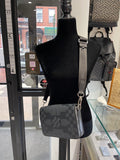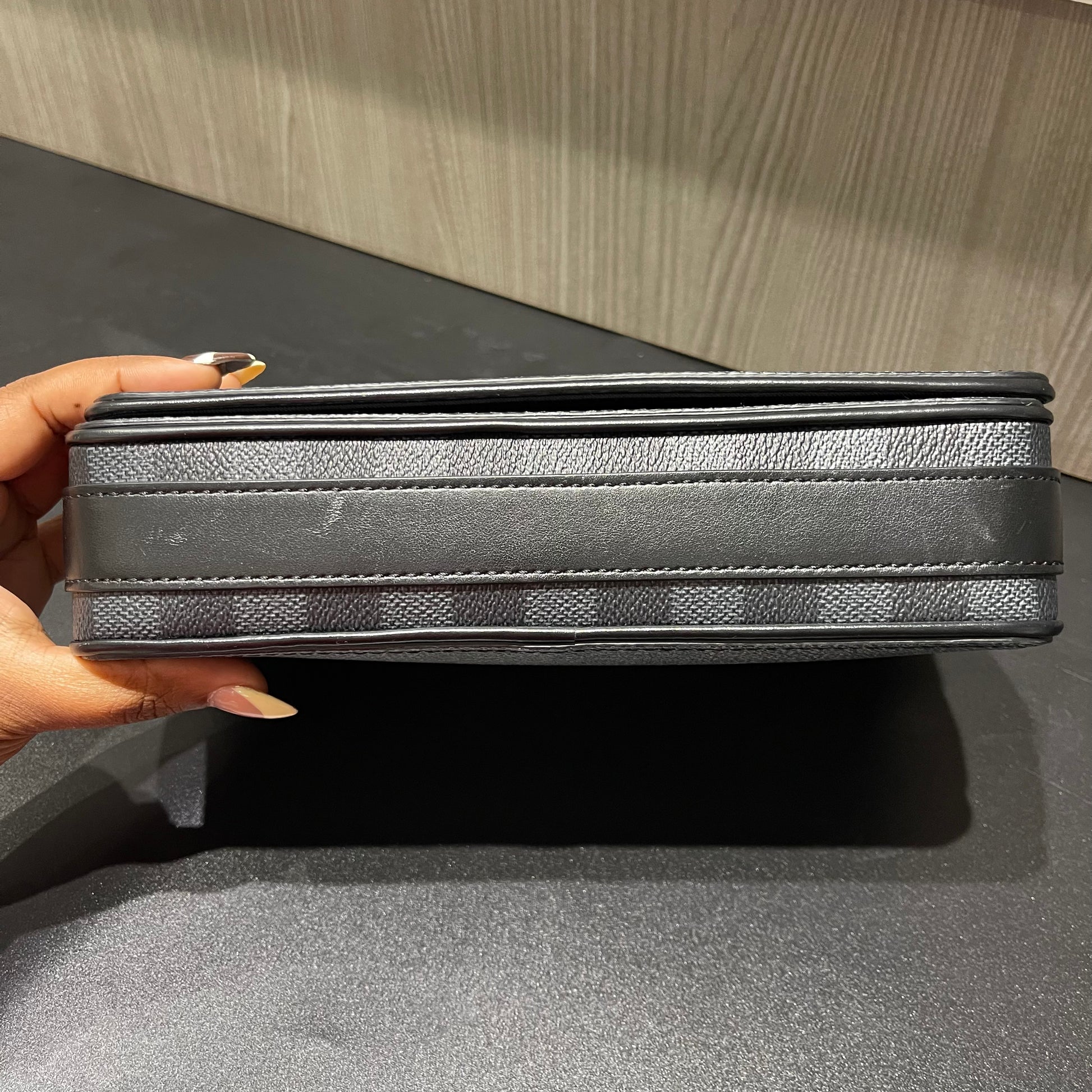 This sleek and modern Louis Vuitton Damier Graphite Studio Messenger is crafted from signature black and grey Damier Graphite coated canvas with silver-tone hardware and leather/nylon trim. Designed for everyday versatility, it features a compact silhouette, exterior pocket, and an easy-access flap front.