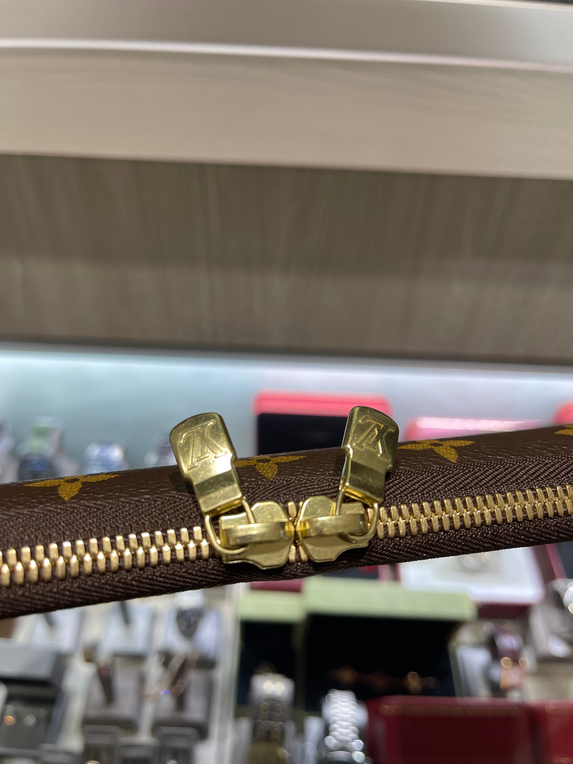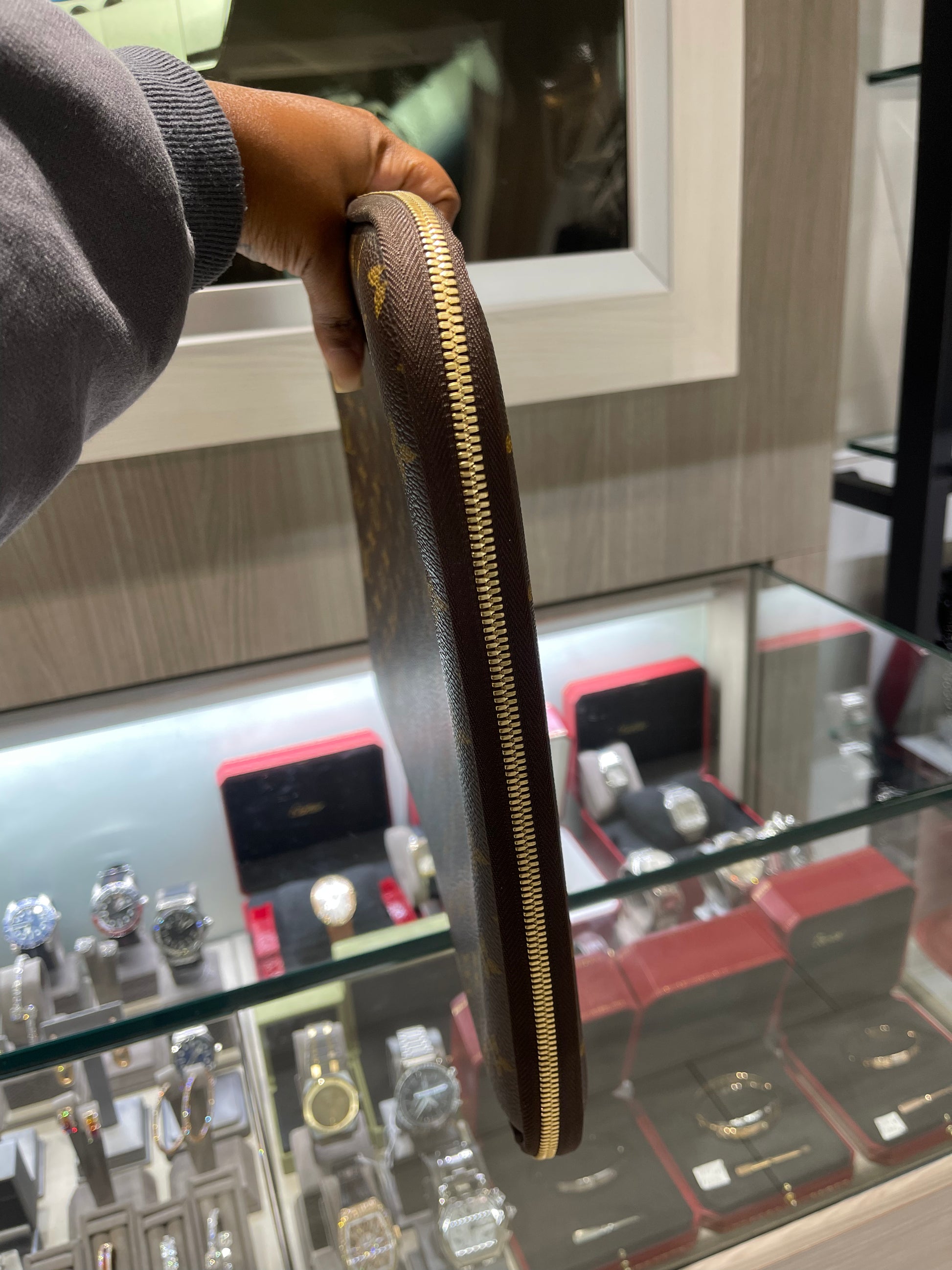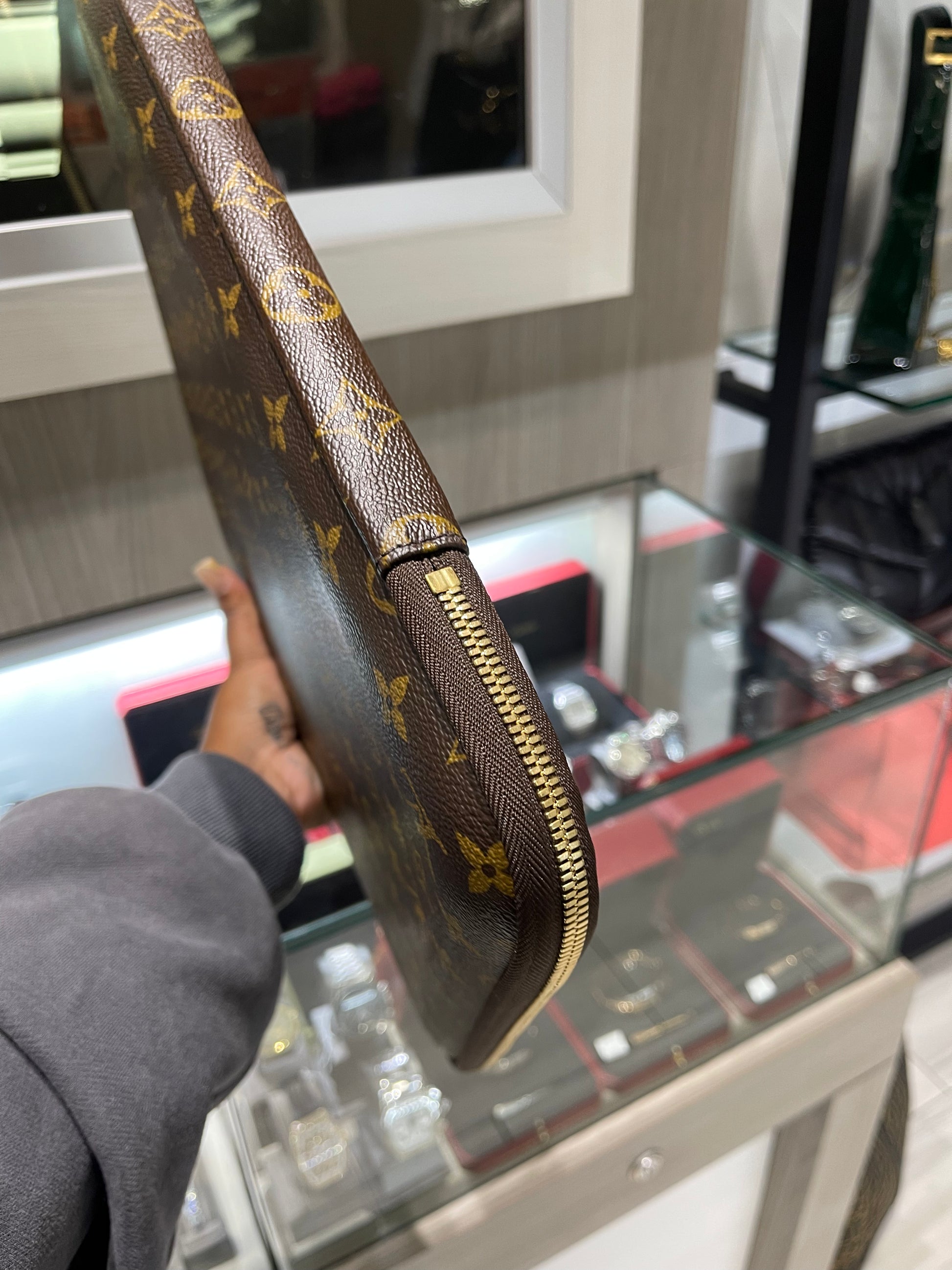 This is an authentic Louis Vuitton Monogram 15-inch Laptop Sleeve, crafted in Louis Vuitton’s signature brown and tan monogram coated canvas with brass hardware. Designed in 2008, this sleek and functional piece is both protective and stylish, making it an ideal choice for business, travel, or everyday use.