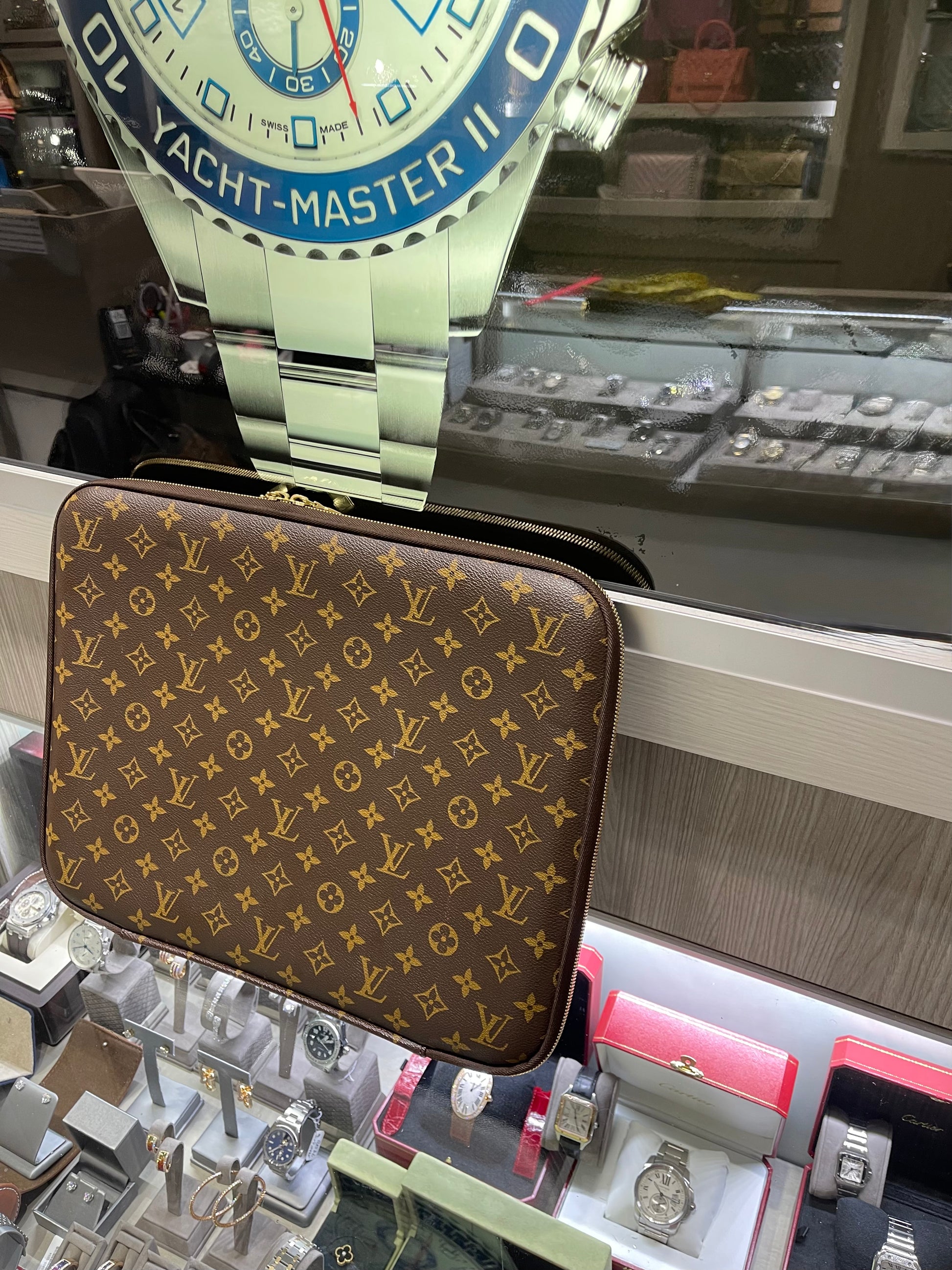 A refined blend of function and fashion, this Louis Vuitton laptop sleeve is the perfect accessory for both personal and professional use.