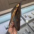 This chic and versatile Louis Vuitton Monogram Wristlet is crafted from the house’s signature monogram coated canvas, paired with a removable vachetta leather wrist strap and accented with gold-tone hardware. The top zipper opens to a striped cherry-red fabric interior with a convenient patch pocket, perfect for carrying your daily essentials with ease.