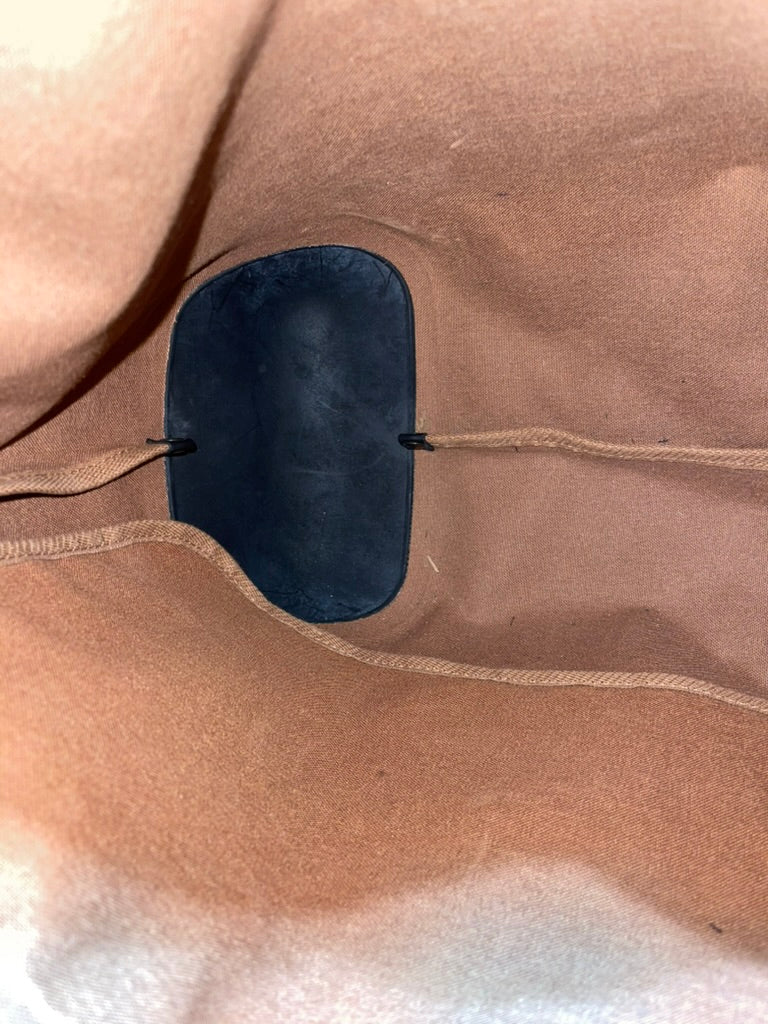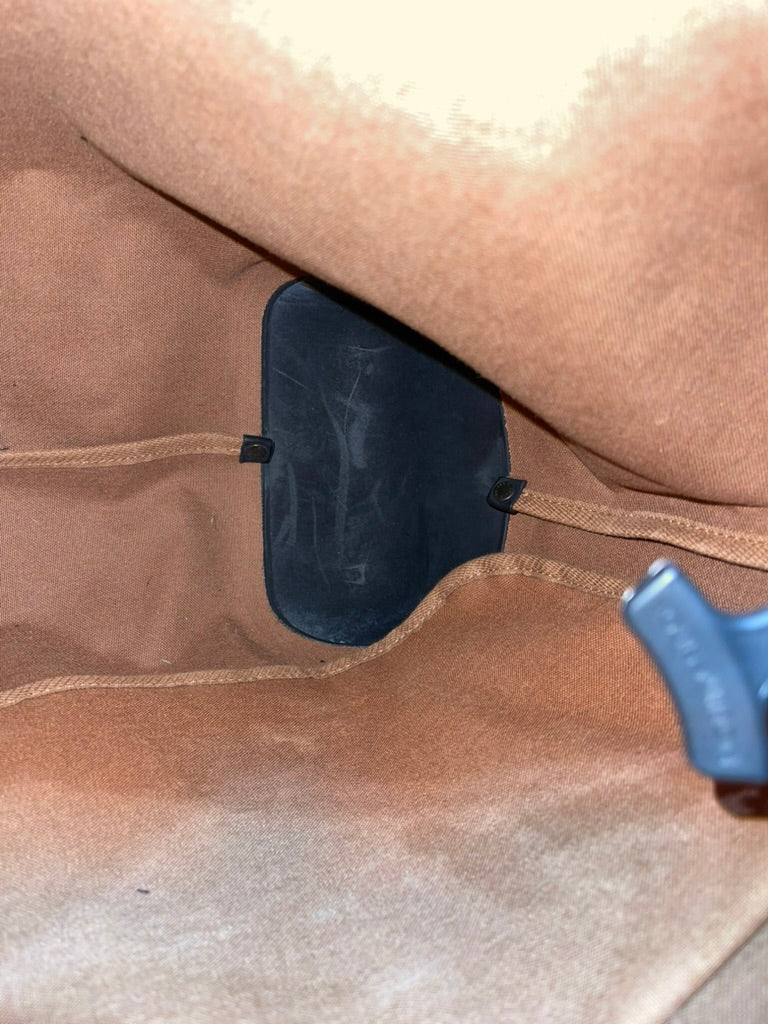 This bag is in very good pre-owned condition with some visible signs of wear, including light scratches on the leather trim, minor scratches on the interior fabric, and a relaxed structure from normal use. Despite these cosmetic imperfections, the bag remains highly functional and stylish.