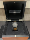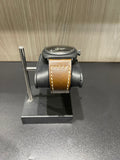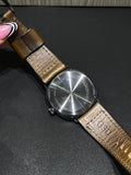Condition: Very good pre-owned condition. The case shows light surface scratches consistent with gentle wear. The brown leather strap shows signs of use, including light fraying, creasing, and minor discoloration, but remains fully functional and wearable.