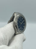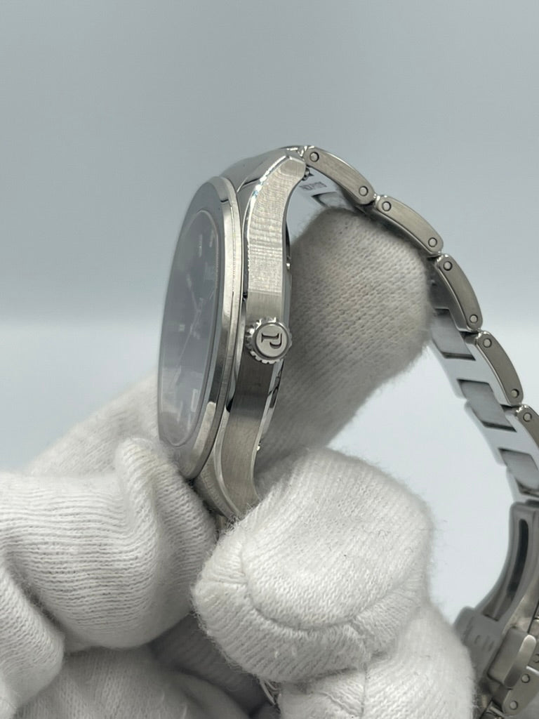 Elegant and sporty, this Piaget Polo Date features a 36mm stainless steel cushion case, blue dial set with 36 brilliant-cut diamonds (approx. 0.07 ct), and an interchangeable steel bracelet with triple folding clasp. Powered by the in-house 500P1 automatic movement with a 40-hour power reserve and sapphire crystal case back. In excellent condition, showing minimal signs of prior use, and comes complete with box, papers, and extra links.