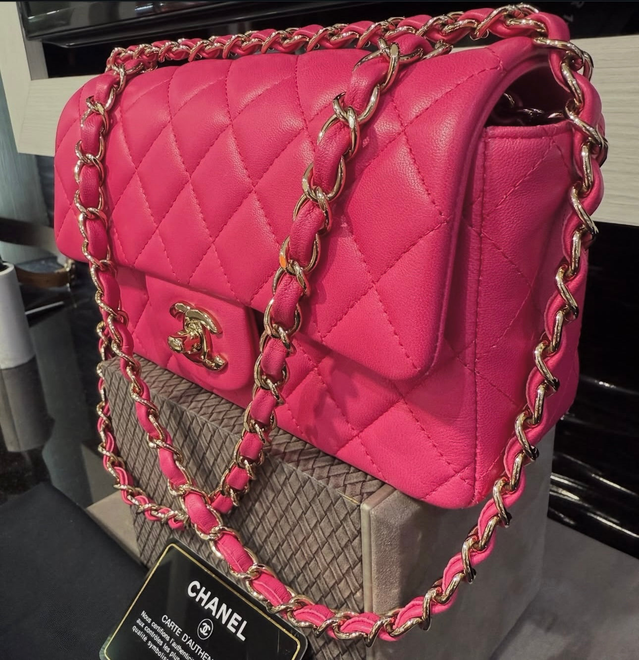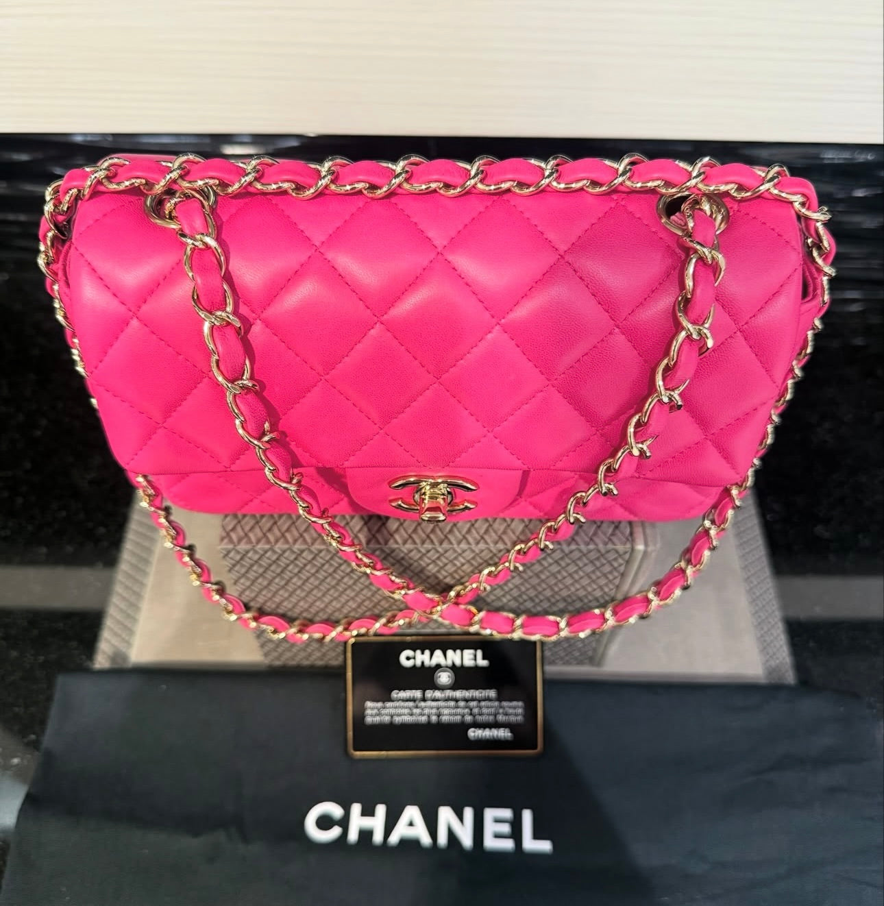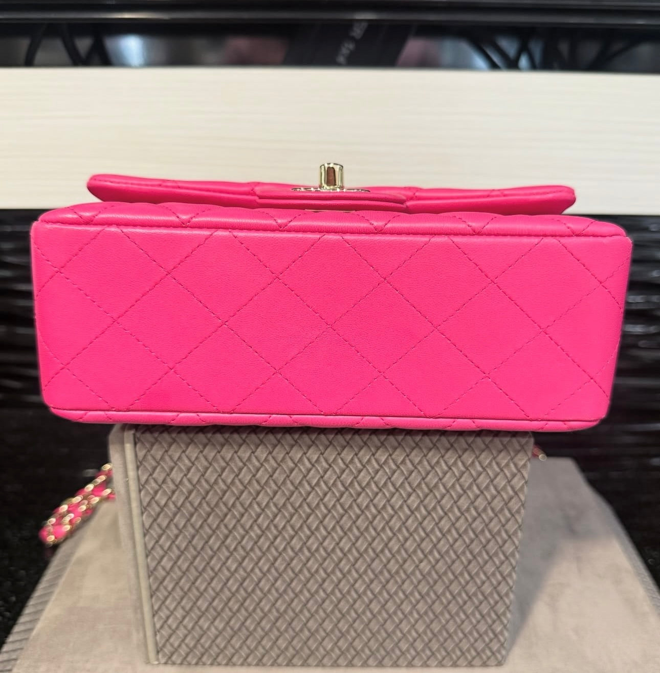 Feminine and timeless, the Chanel Classic Mini Rectangular Flap in soft pink lambskin with aged gold hardware is a coveted piece that embodies the elegance of the House’s most iconic design. Crafted in 2015–2016 (21 series), this compact yet versatile bag is perfect for both day and evening wear, offering the right balance of charm and practicality.