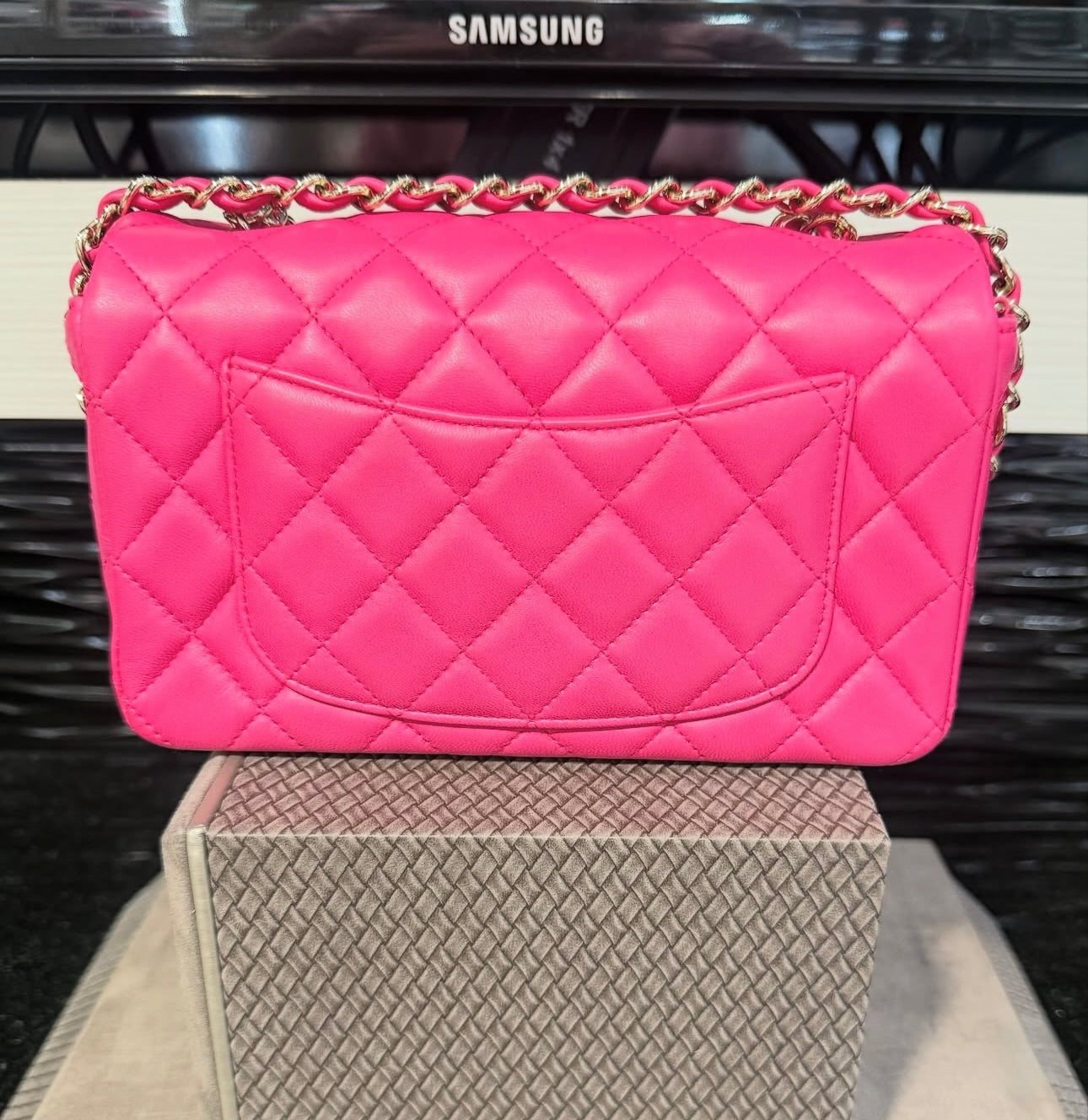 Pre-Owned Chanel Classic Mini Rectangular Quilted Flap Bag in Pink Lambskin with Gold Hardware