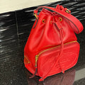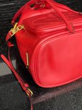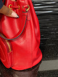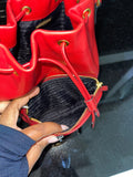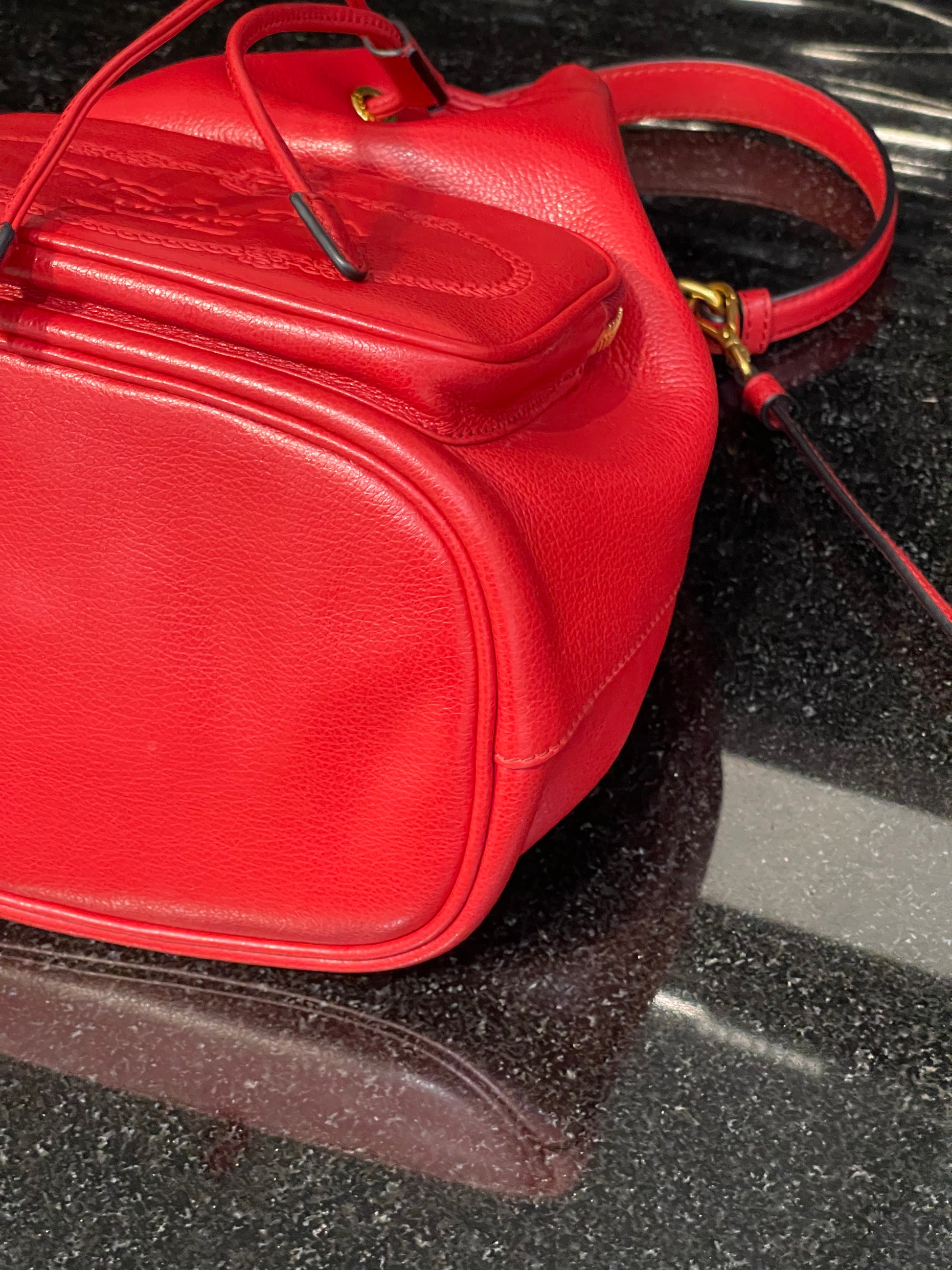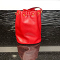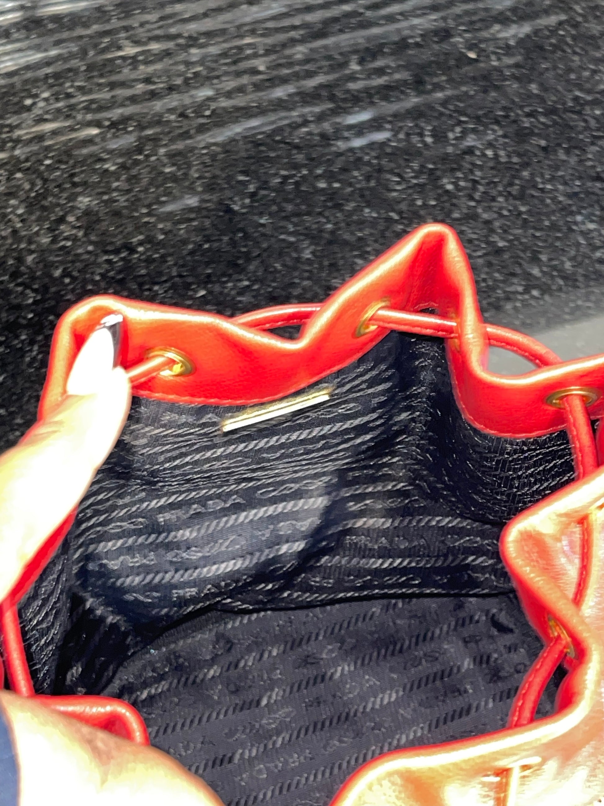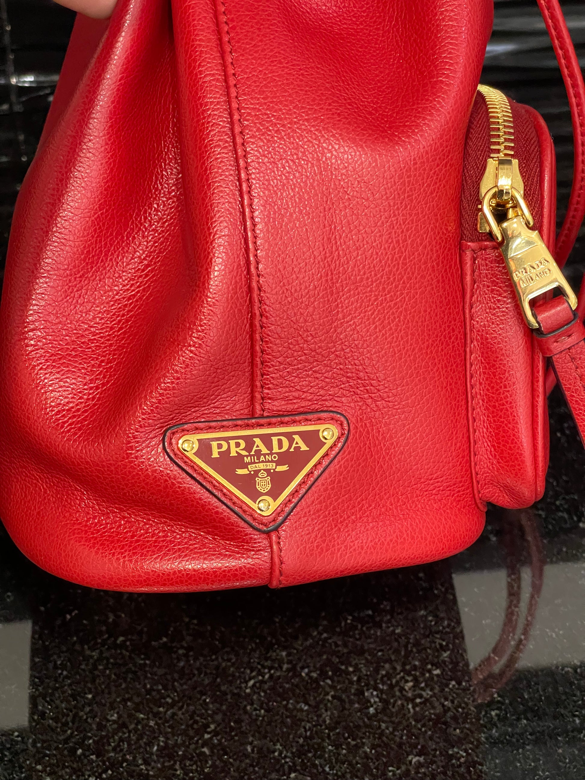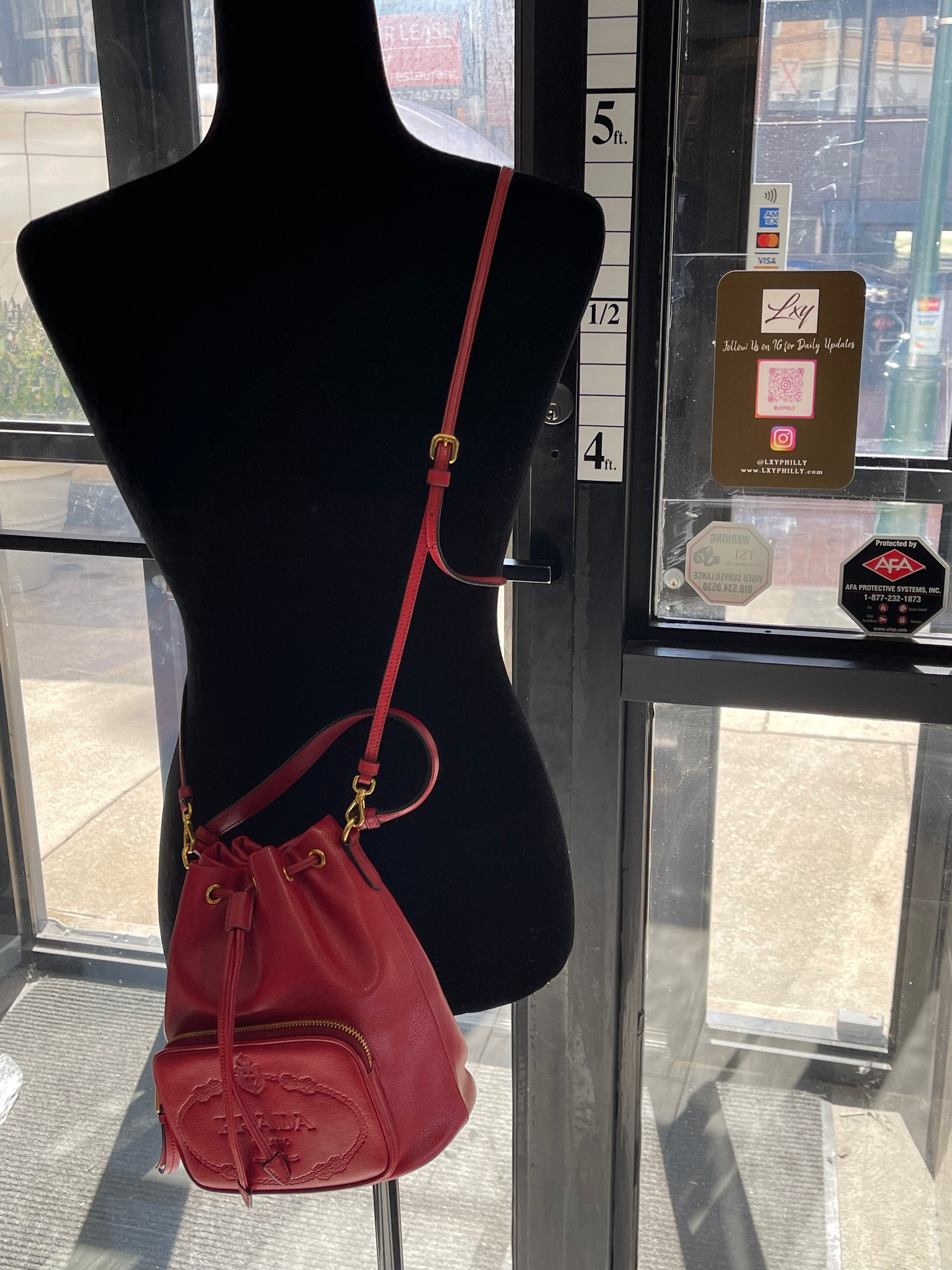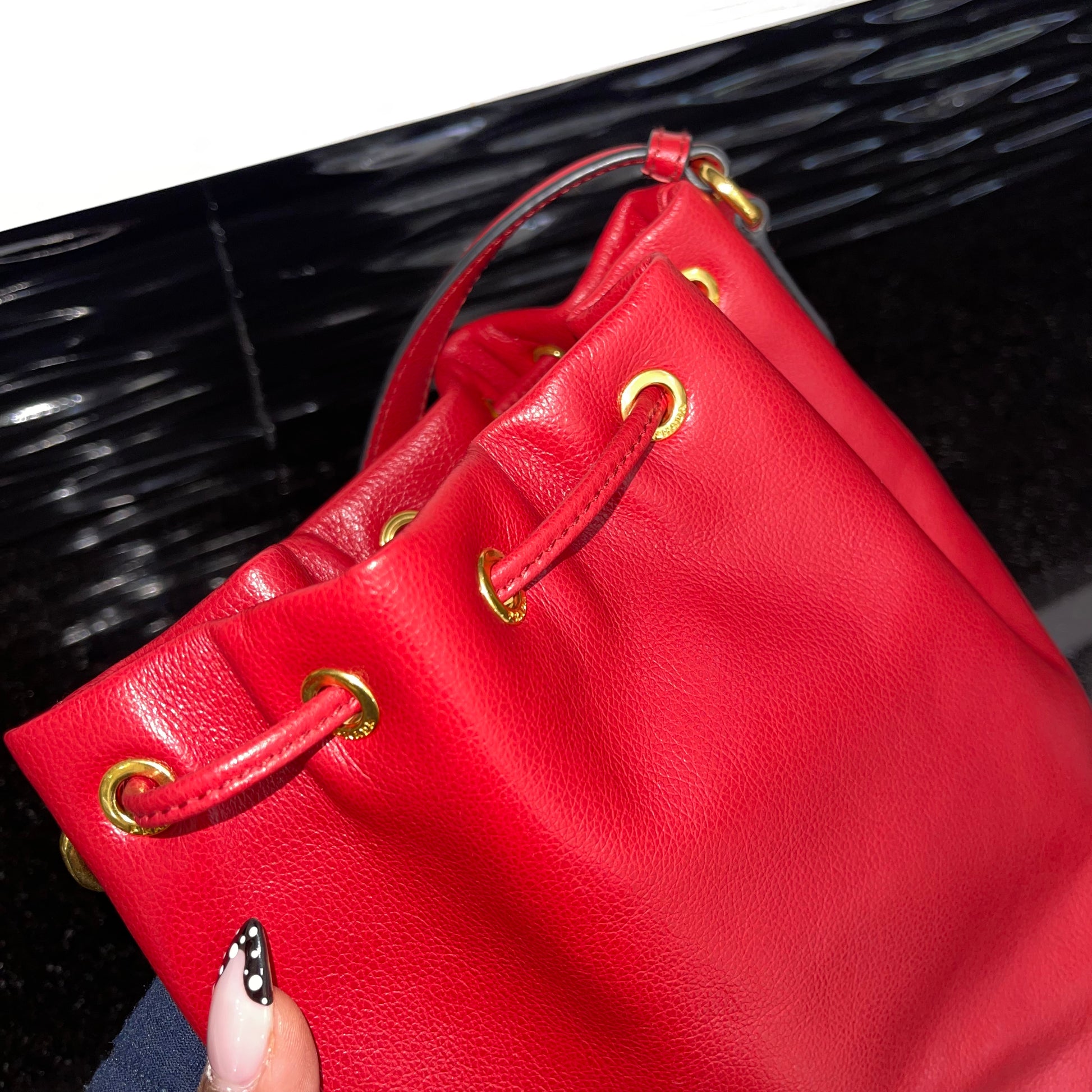 Pre-owned Prada Glace Calf Logo Embossed Bucket Bag Red