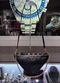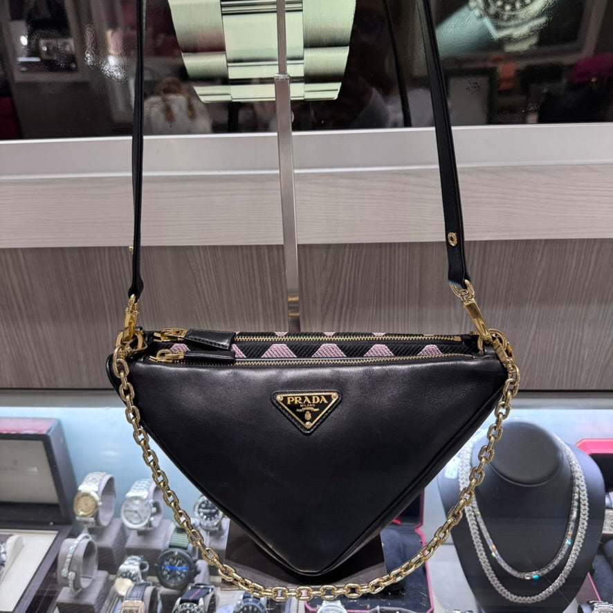 Pre-Owned Prada Double Symbole Triangle Mini Bag – Black Leather & Jacquard with Gold Hardware